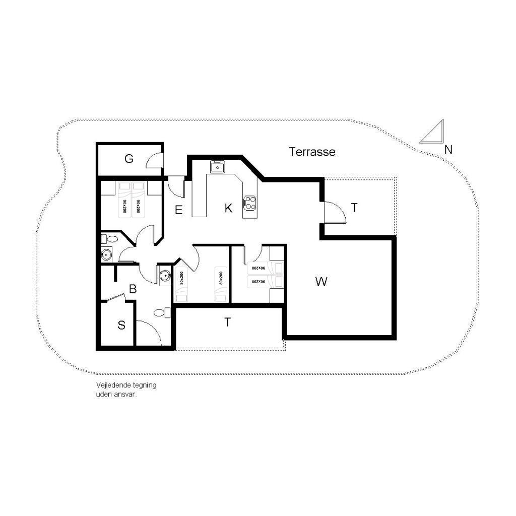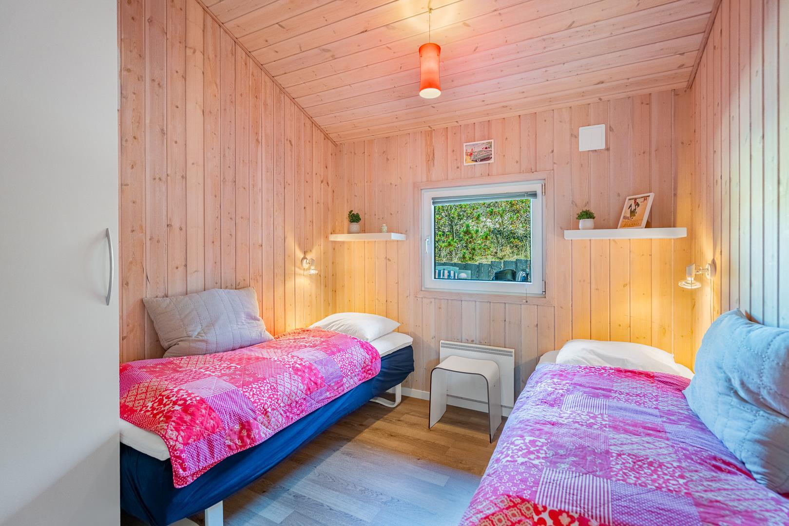 Sengestørrelse: 2 dobbeltsenge med 2 madrasser 90 x 200 cm + 2 enkeltsenge 80 x 200 cm.
