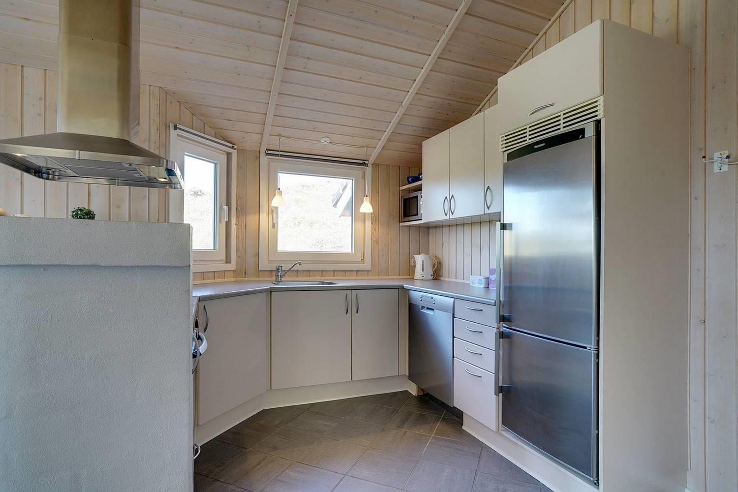 Virkelig flot kvalitetsferiehus beliggende på en pragtfuld klitgrund for enden af blind vej. Der er stort terrasseareal, hvor solen og det flotte område kan nydes. Huset hat stort glasparti som giver et godt lysindfald i huset. Flot køkken og spiseafdeling hvor fra der er adgang til hyggelig stue med brændeovn som er pænt møbleret. 2 flotte badeværelse med bruser, i det ene er der spa og sauna. I dette skønne feriehus er de perfekte rammer tilstede for en god ferie.