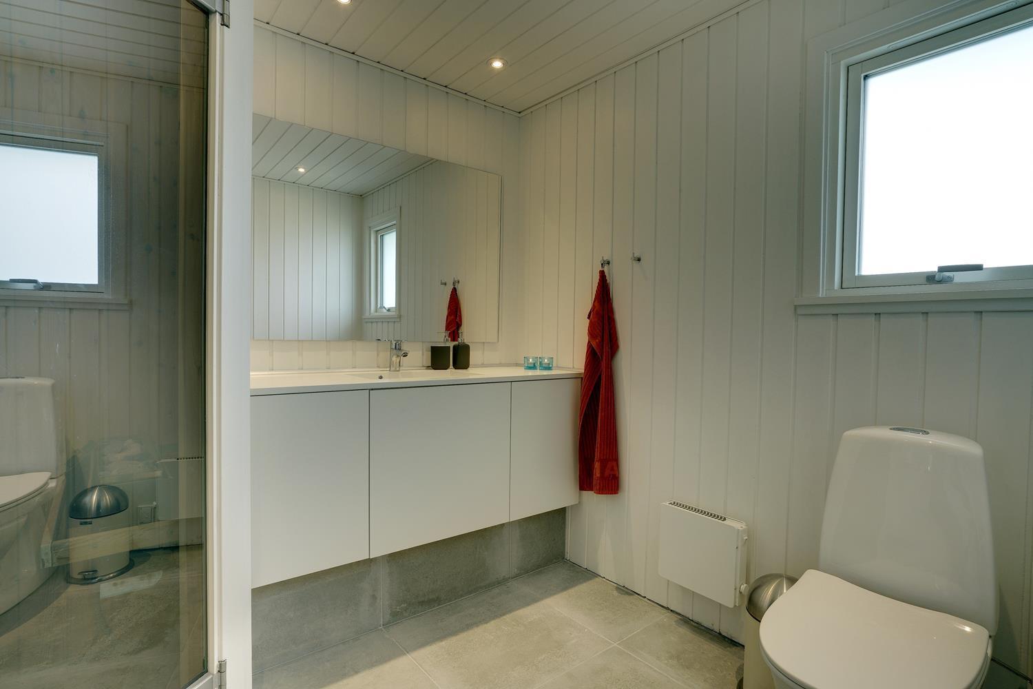 Badeværelset er nyrenoveret og stilfuldt, og herfra er der direkte adgang til husets sauna, hvor du kan slappe af efter en dag fyldt med oplevelser.