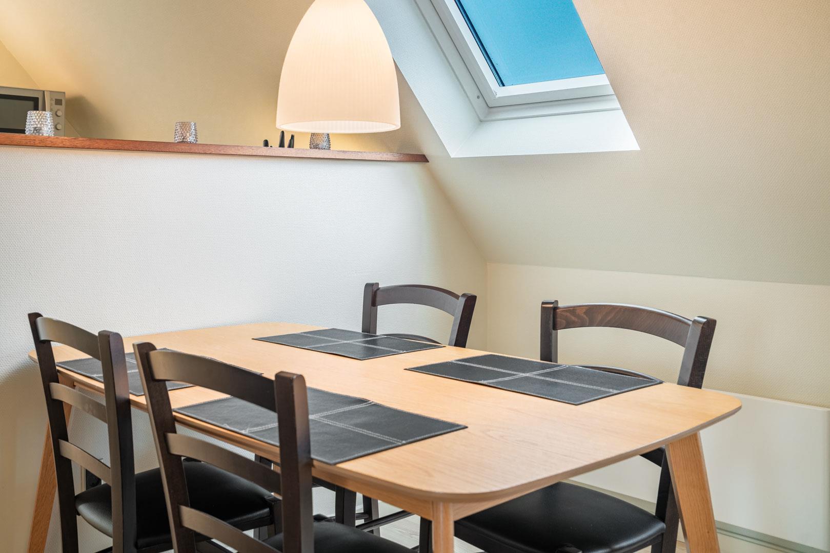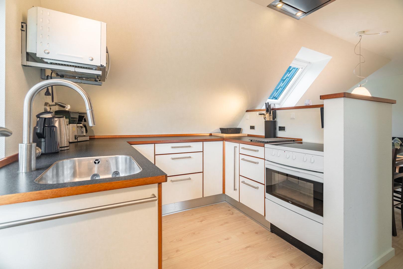 Veludstyret sydvendt kvalitetslejlighed på 1. sal beliggende på en stor lukket naturgrund ikke langt fra Henne Strands centrum og vandet. Stor solrig terrasse. Lejligheden er løbende blevet renoveret, så alt fremstår lyst og venligt. Der er trådløs internet. TV i begge soverum. El klima-/varmepumpe anlæg (energibesparende). BEMÆRK: Følgende ting findes ikke direkte lejligheden, men i et fællesrum med vaskemaskine og tørretumbler, som betales ekstra med mønt-indkast.