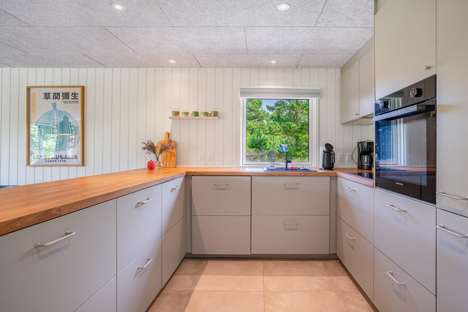 Her er der tænkt på alle detaljer! I 2025 har feriehuset gennemgået en gennemgribende modernisering med ny udvendig beklædning, nyt lækkert køkken og et lyst og indbydende køkken-alrum. De store vinduespartier i stuen trækker naturen helt ind i rummet, og midt i det hele står en hyggelig brændeovn, som spreder varme ud i rummet.