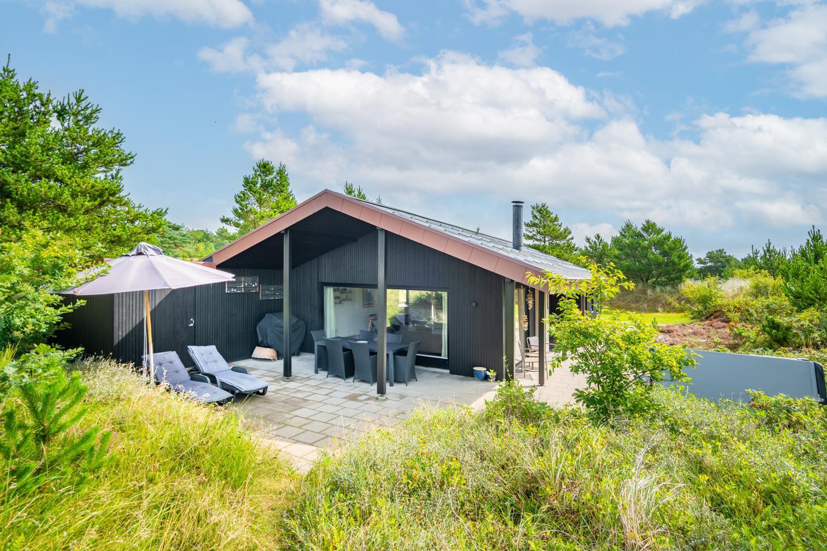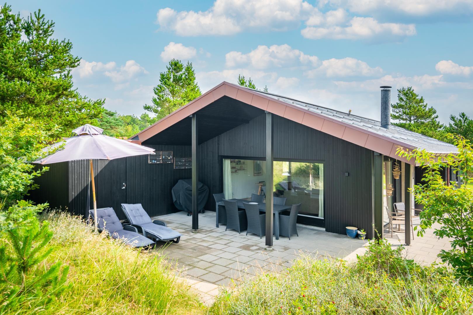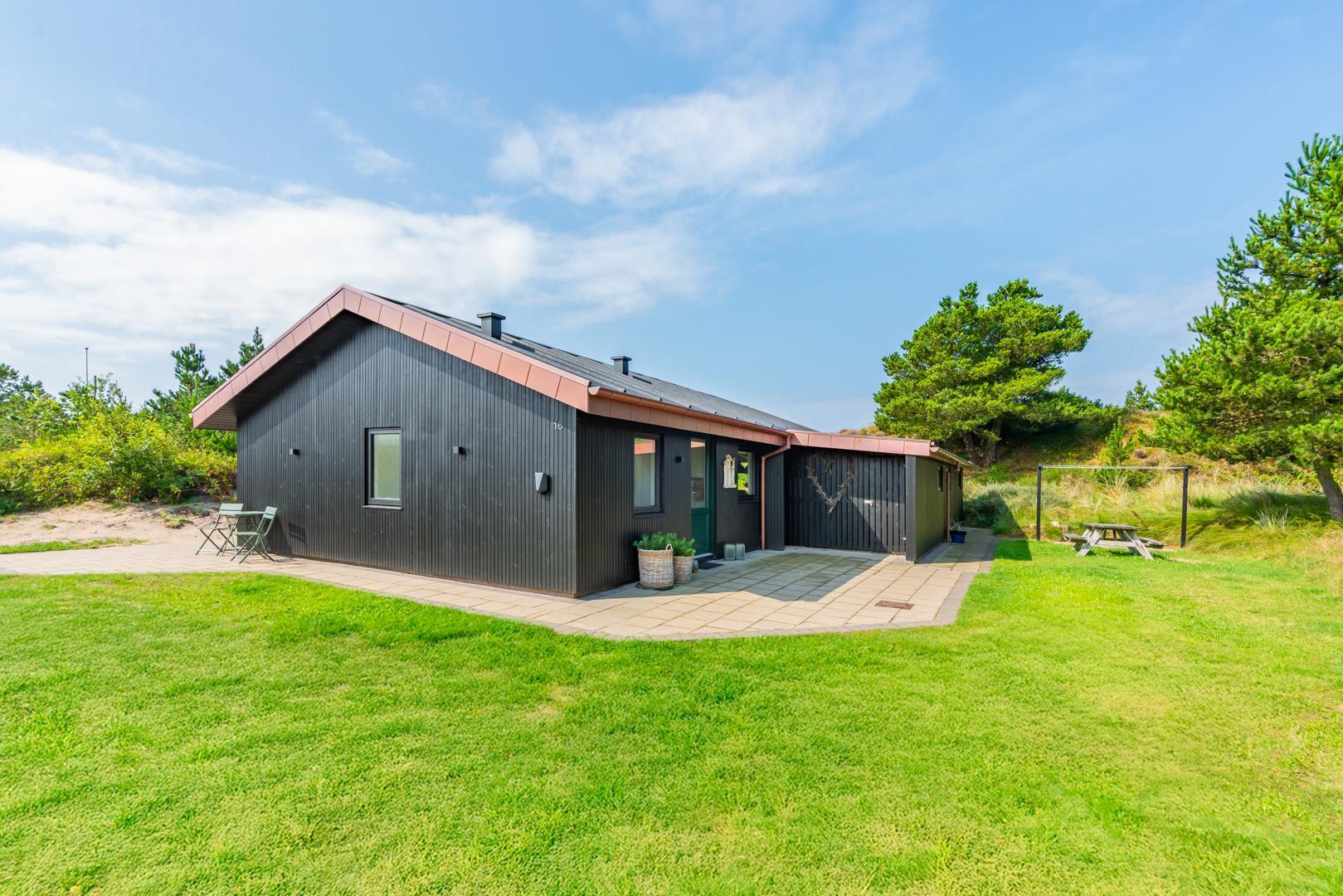 Drømmer I om et moderne, stilfuldt og ikke mindst hyggeligt sommerhus i naturskønne omgivelser? Så er dette renoverede feriehus fra 2025 i Henne Strand det oplagte valg. Huset ligger for enden af en blind vej – fredeligt og ugeneret – midt på en smuk, lyngklædt naturgrund med god plads til boldspil og leg.