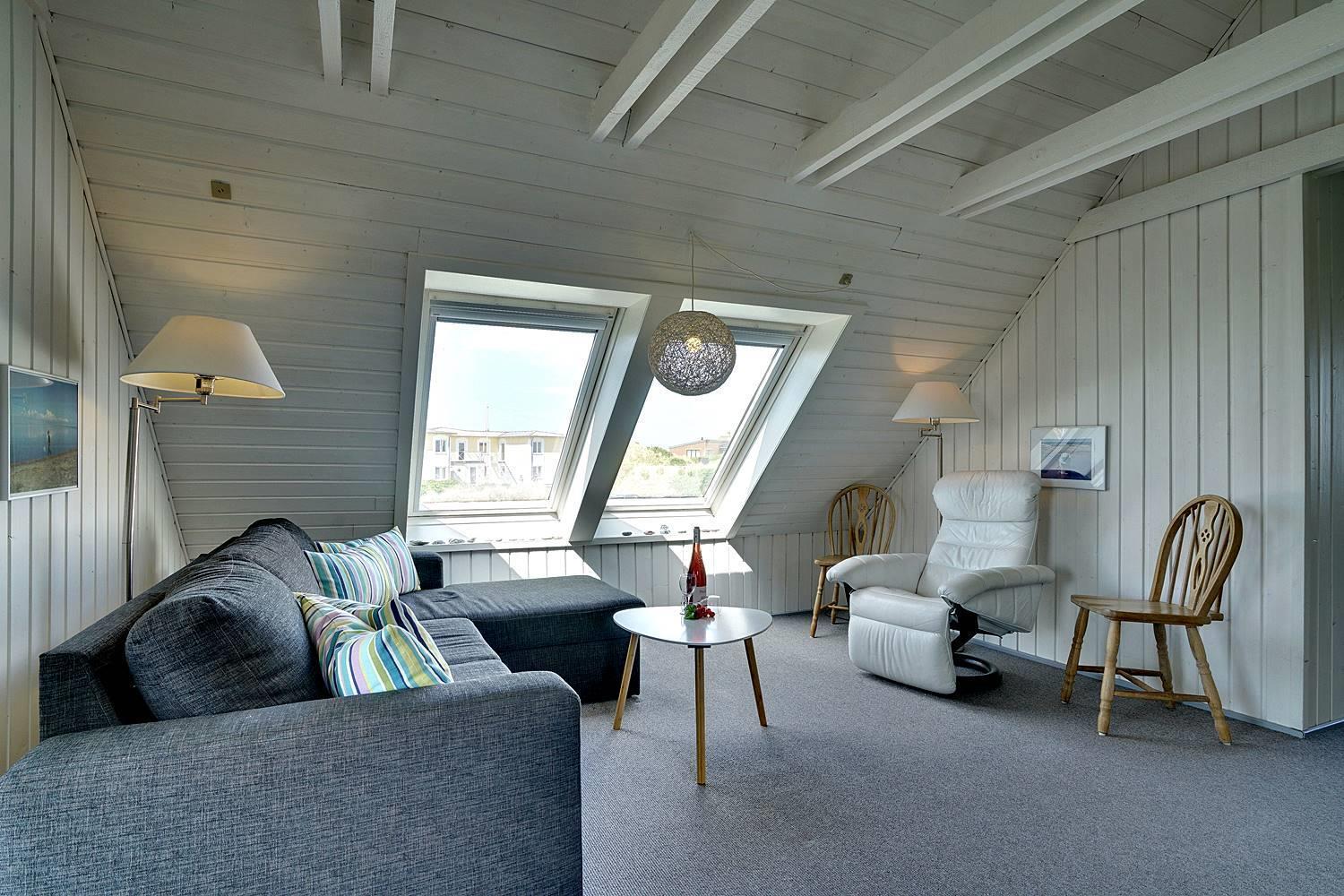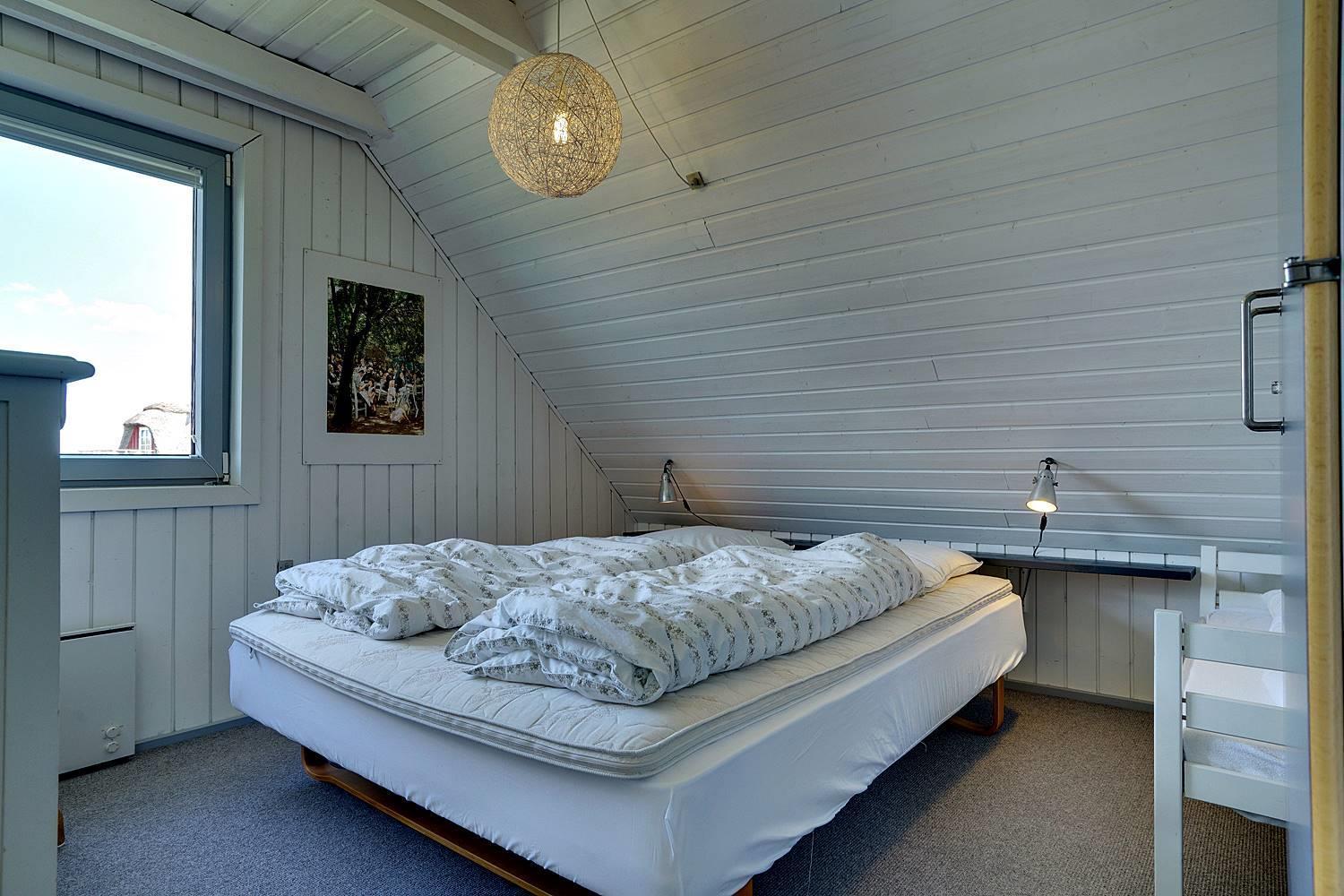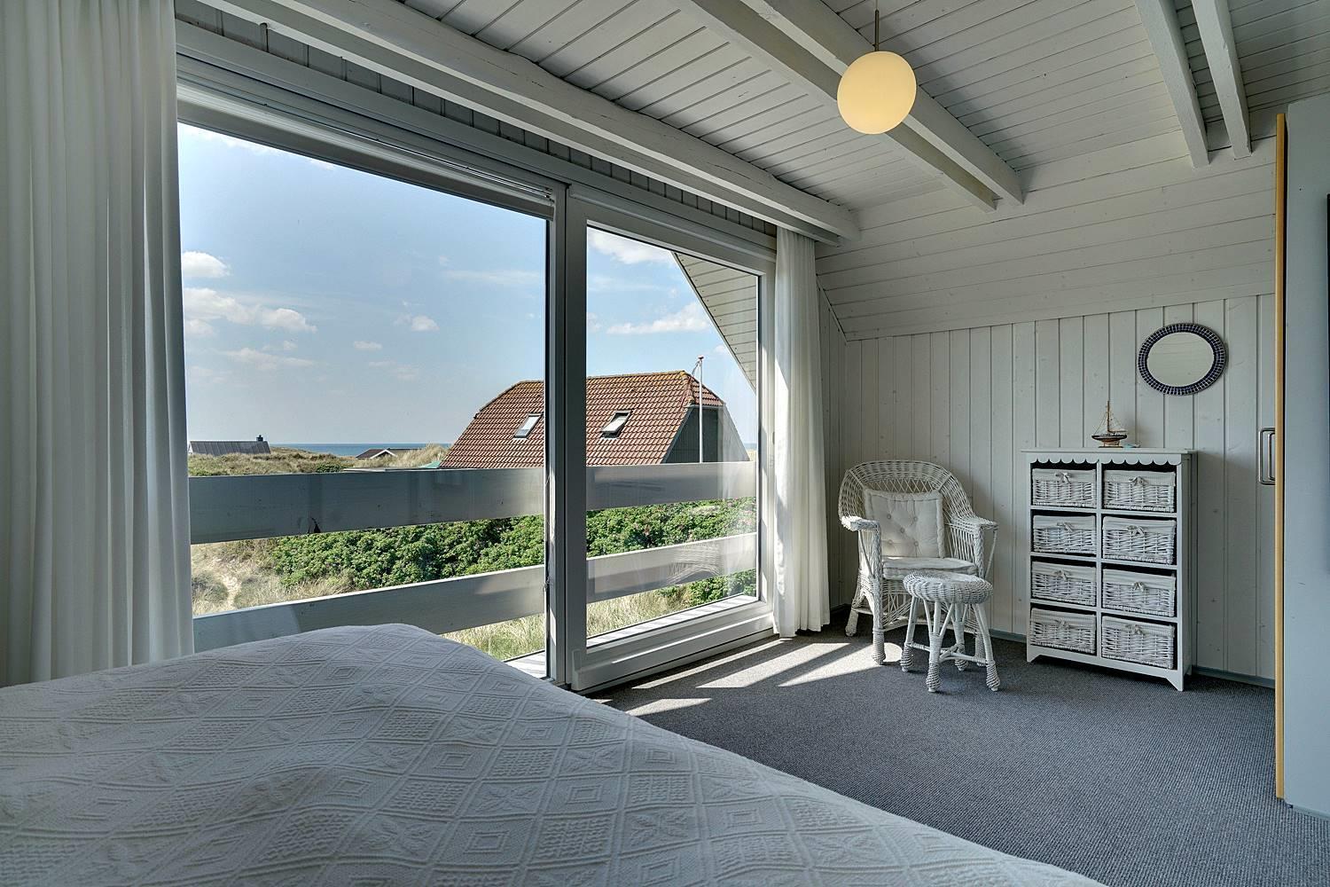 Huset byder på tre rummelige soveværelser med komfortable dobbeltsenge (160 x 200 cm) samt et skønt opholdsrum på første sal, hvorfra du kan nyde et smukt kig til havet. Den hyggelige stue er indrettet med kvalitetsmøbler, der skaber den perfekte ramme for afslapning og samvær.