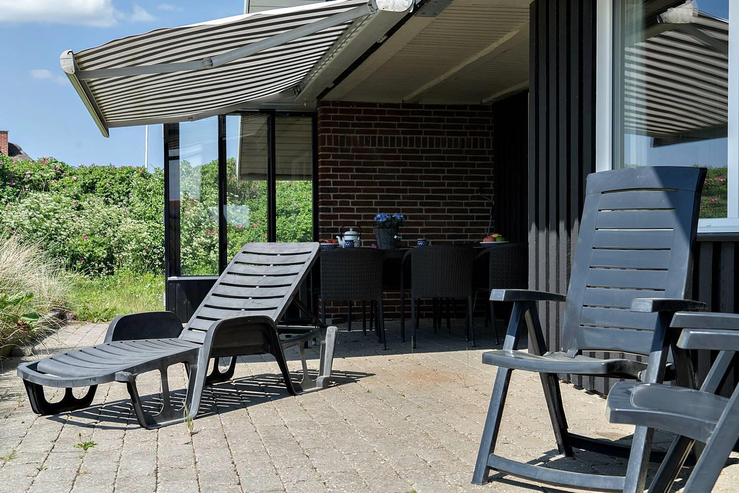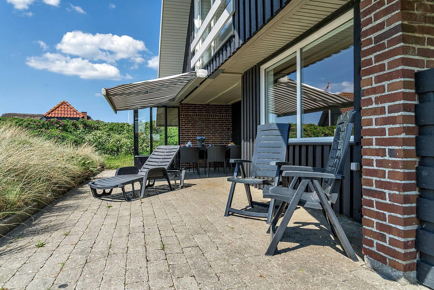 Udendørs finder du flere solrige og ugenerede terrasser, hvor du kan nyde roen, udsigten og den friske havluft – hvad enten du starter dagen med en kop kaffe eller slutter aftenen med et glas vin i solnedgangen.