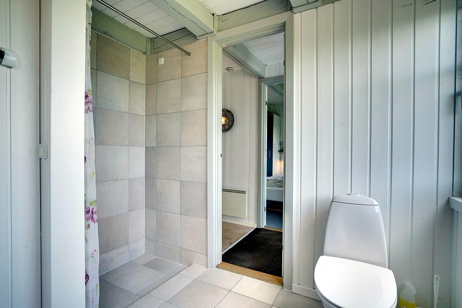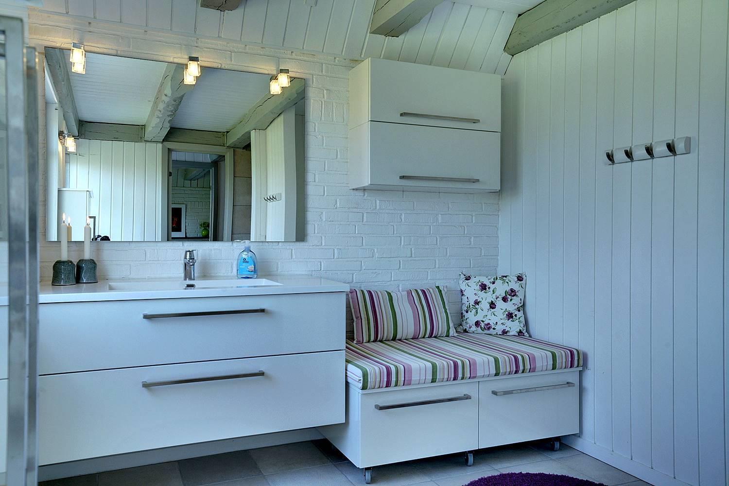 Badeværelset er flot og byder på stilfulde detaljer og god plads.