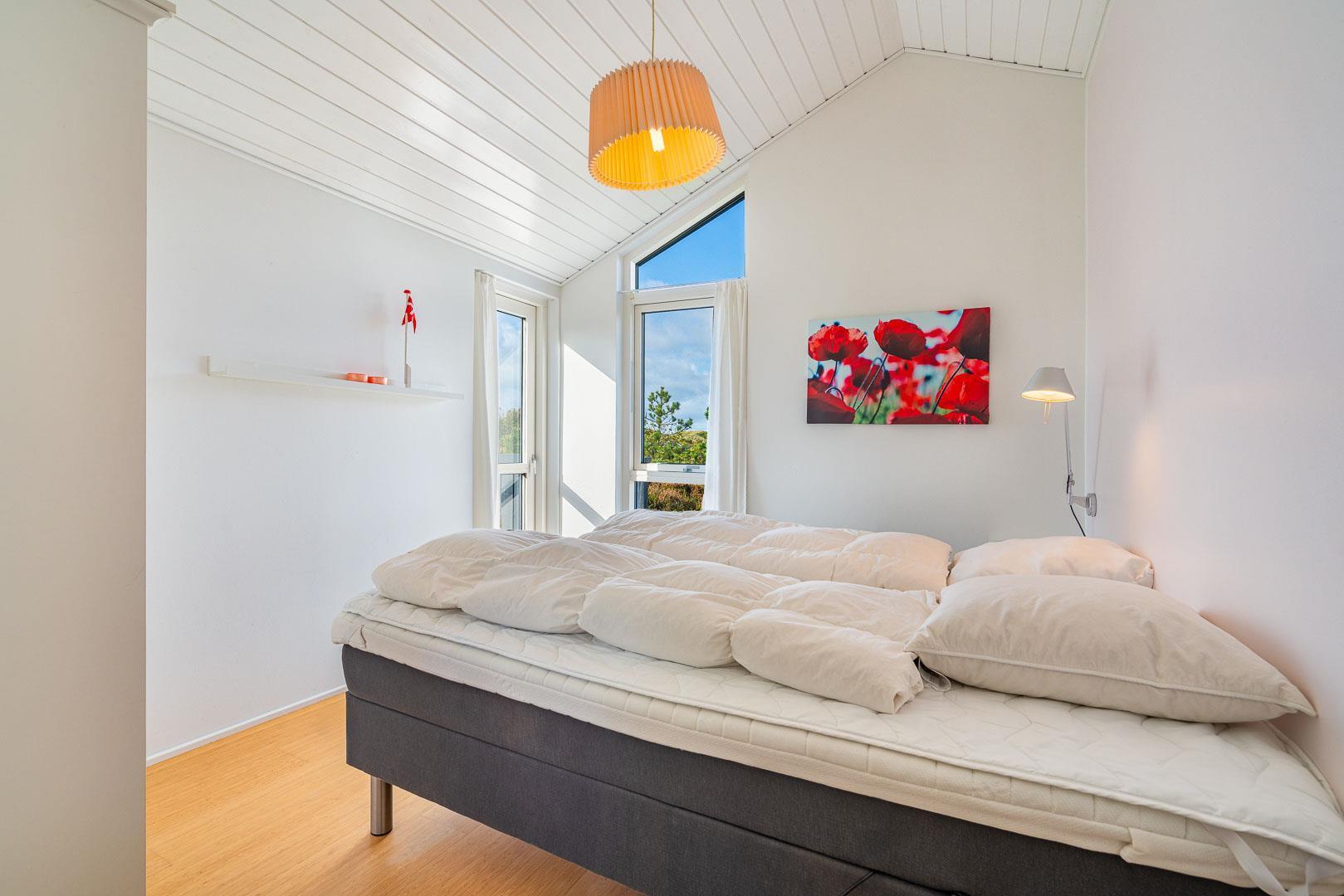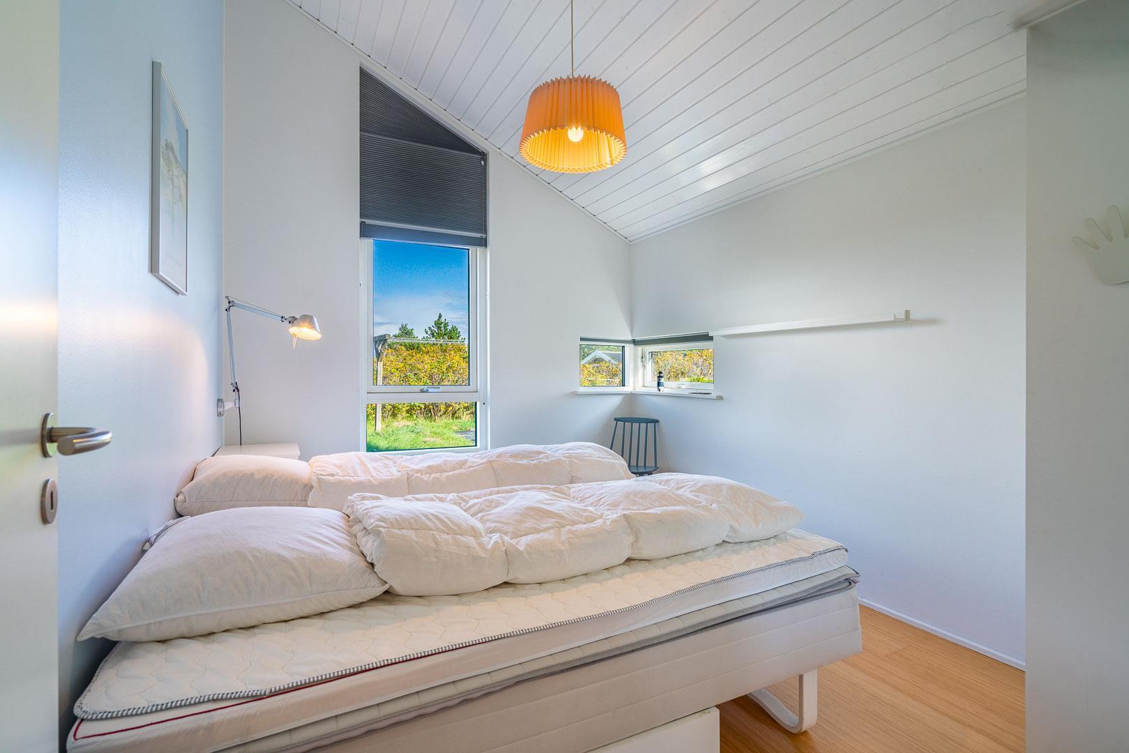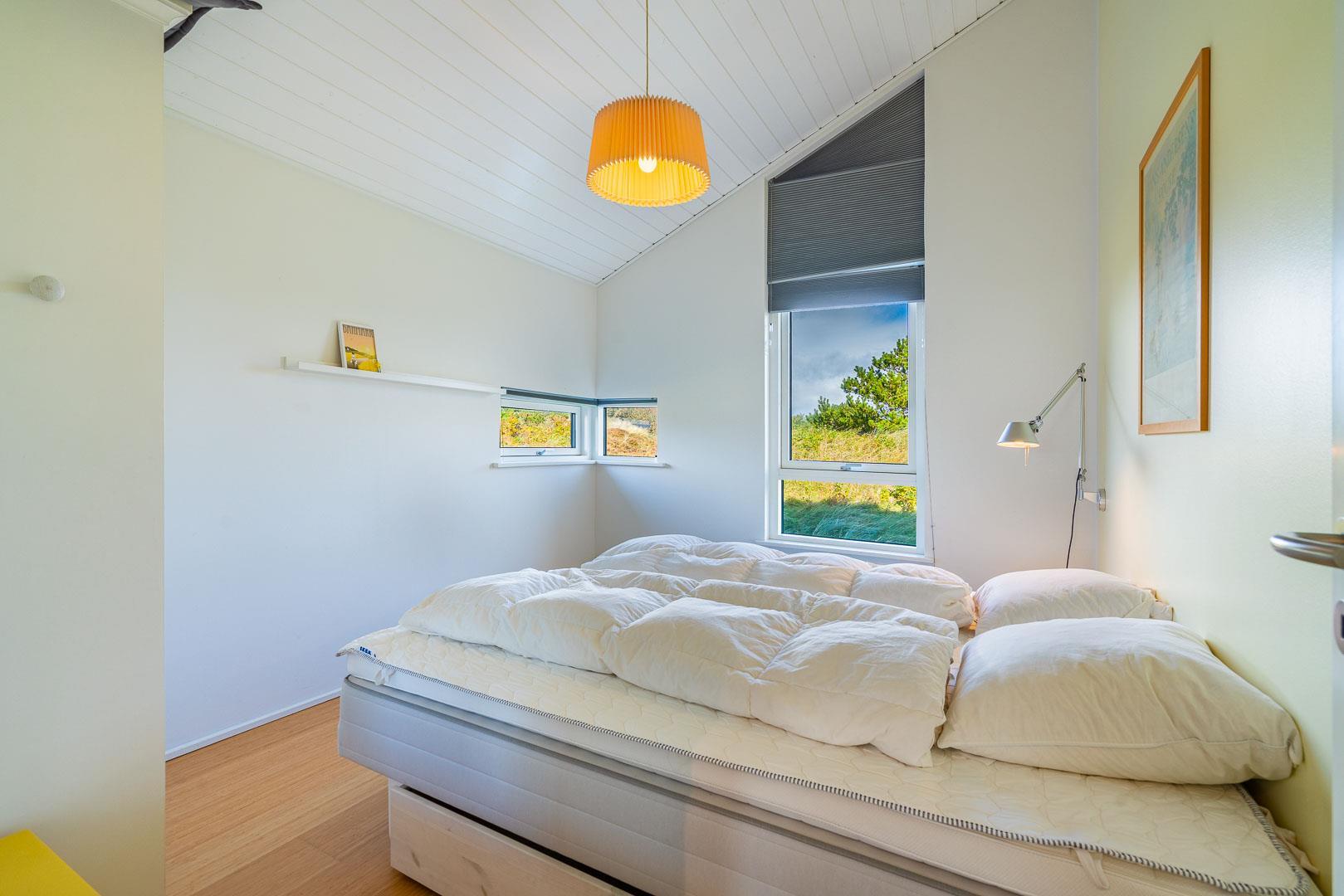De to soveværelser er udstyret med mørklægningsgardiner, der sikrer en god nattesøvn – uanset årstid.