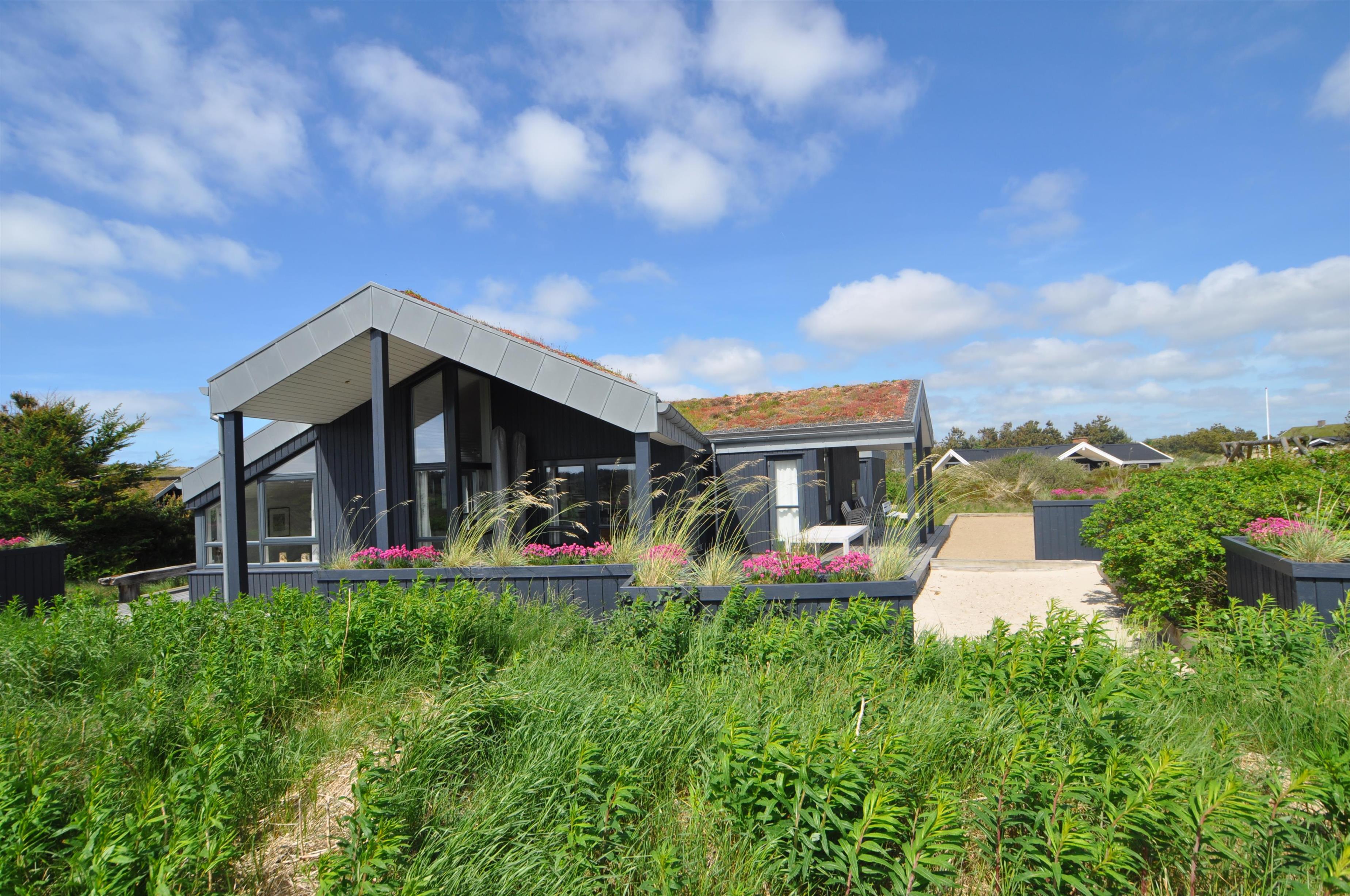 Arkitekttegnet sommerhus nær Vesterhavet og natur