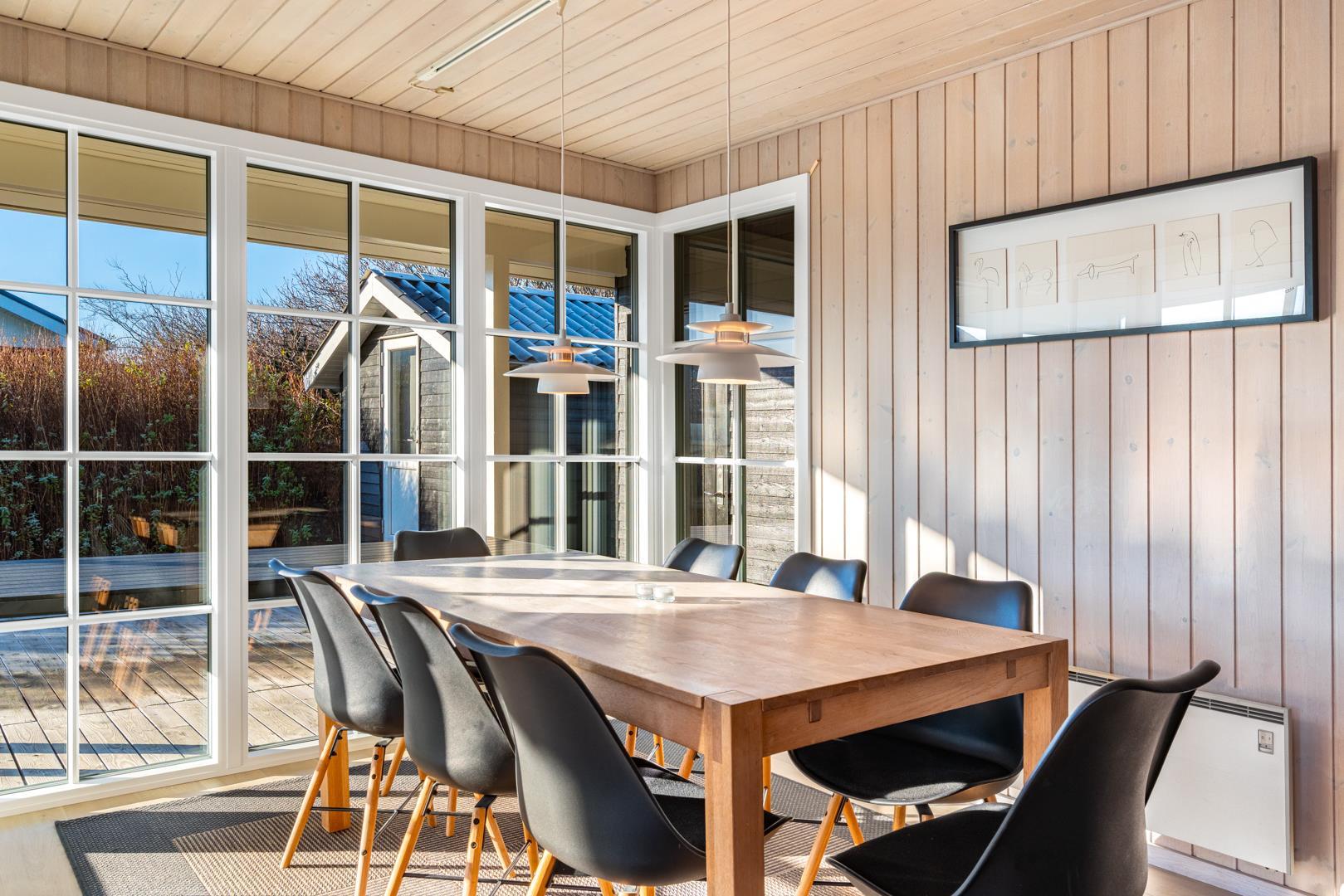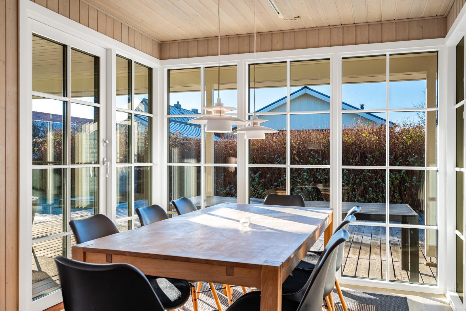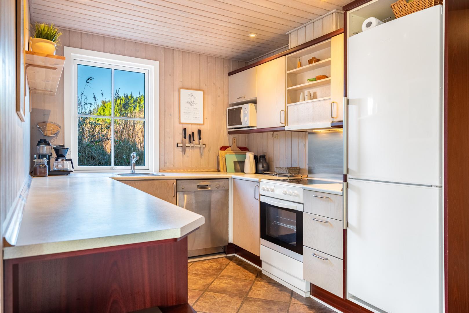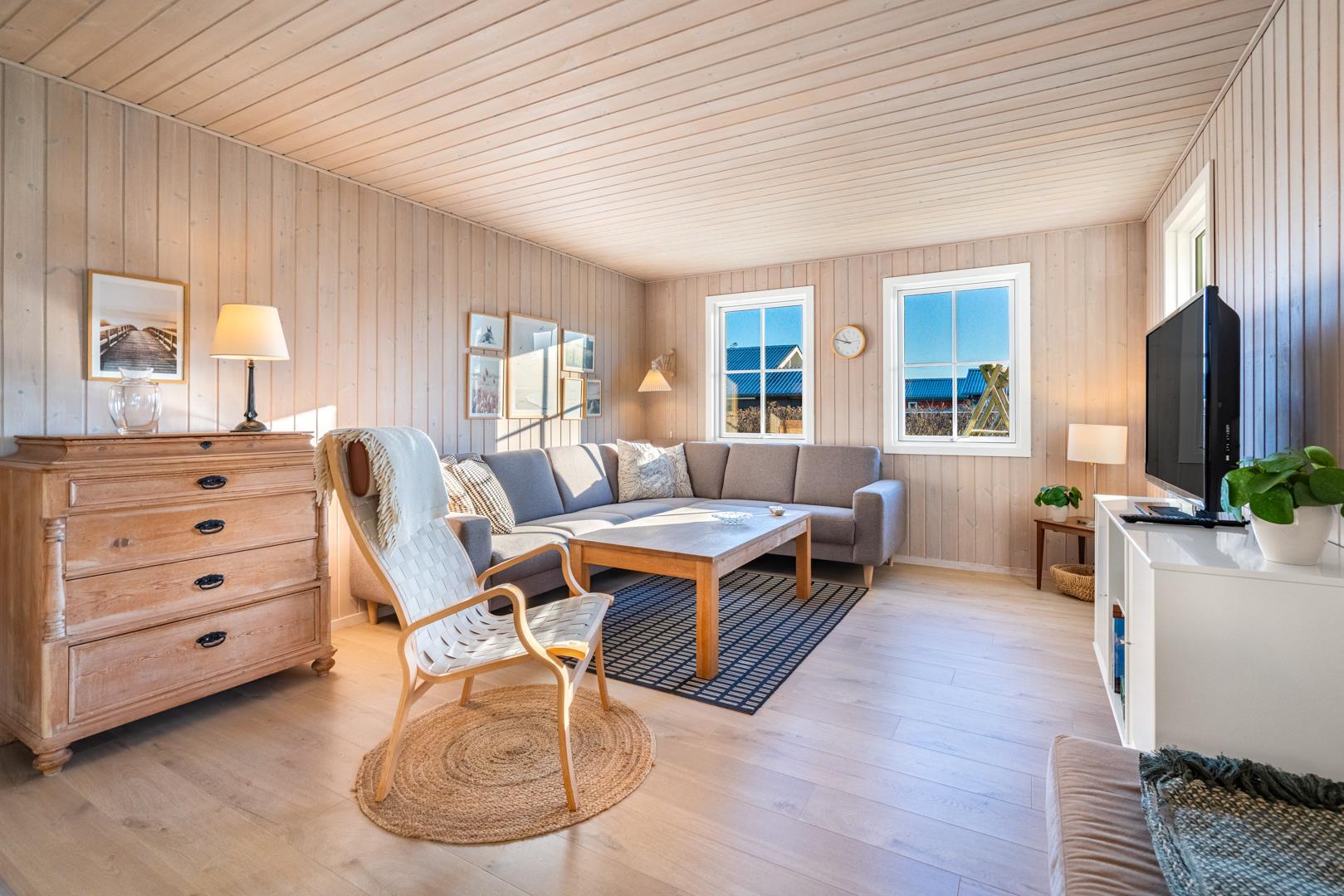 Dejligt feriehus beliggende på en skøn og børnevenlig naturgrund, meget tæt på byen og stranden og den gode handelsliv, men alligevel rolig og ugenert. Flot badeværelse. Huset har en rigtig god indretning og komfortable møbler. Fra stuen er der udgang til dejlig delvis overdækket terrasse med mange aktivitetsmuligheder for de mindste..