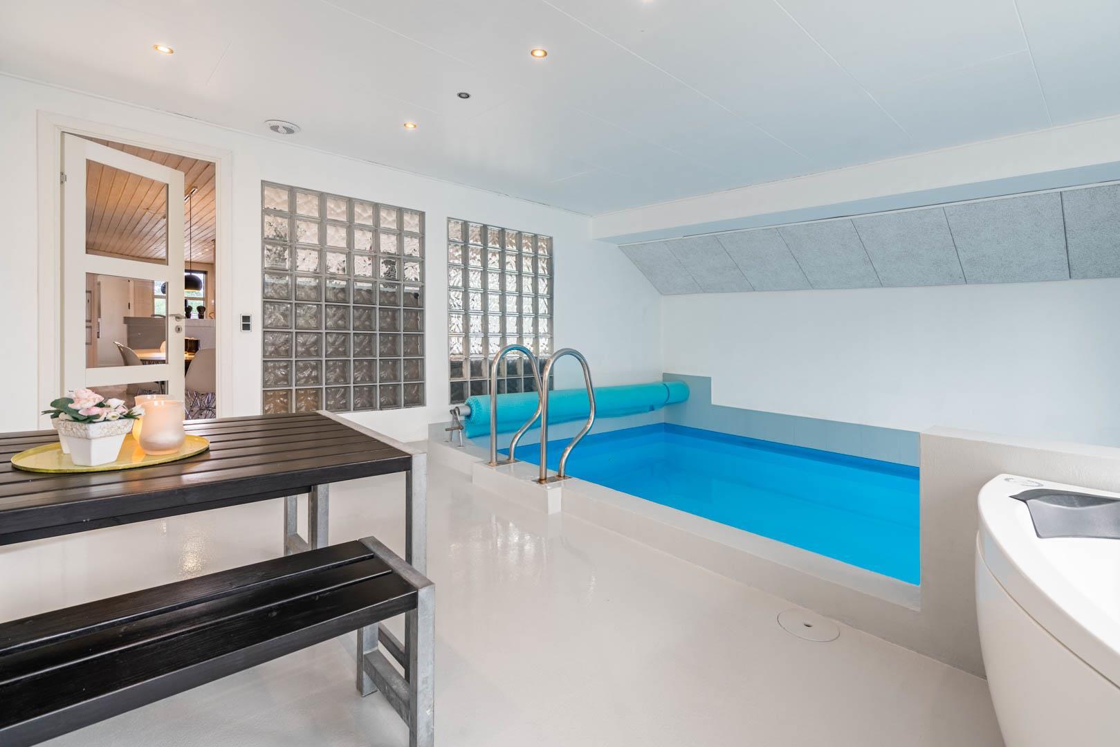 Flot og gennem renoveret sommerhus med selvstændig wellness afd. med swimmingpool med luft til vand varmepumpe til strømbesparelse, spabad og med adgang til sauna. Huset er flot renoveret og fremstår derfor lyst og indbydende overalt. Stor terrasse med udendørs køkken og ude bruser. Den herlige wellnes afdeling er husets absolutte favorit for børn og barnlige sjæle. Her er mulighed for mange timers leg og samvær for både store og små.