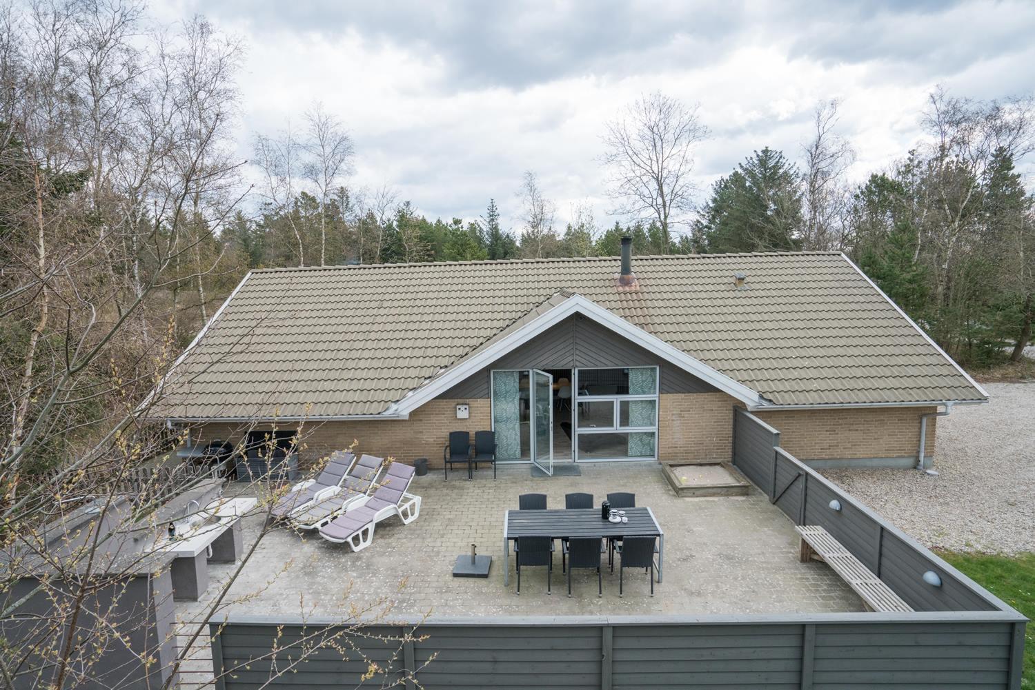 Sommerhuset har en rigtig god beliggenhed på en natur afskærmet grund, hvor der er opsat trampolin og gynger til ungerne og plads til leg og boldspil på plænen for alle. Den lukkede terrasse er udstyret med gode havemøbler og liggestole. Sommerhuset ligger i gåafstand fra Henne Golfklub samt Blåbjerg Plantage, hvor der er gode natur- samt vandre stier.