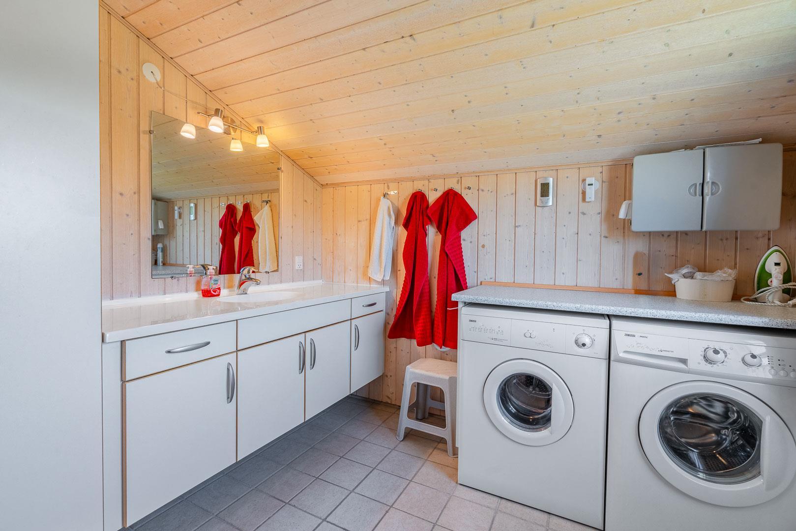 Her er plads til 5 personer med 3 gode soveværelser, hvoraf det ene forkæler dig med en dobbeltseng og de to andre tilbyder komfortable elevationsenge. Det store badeværelse og det ekstra toilet har begge med gulvvarme.