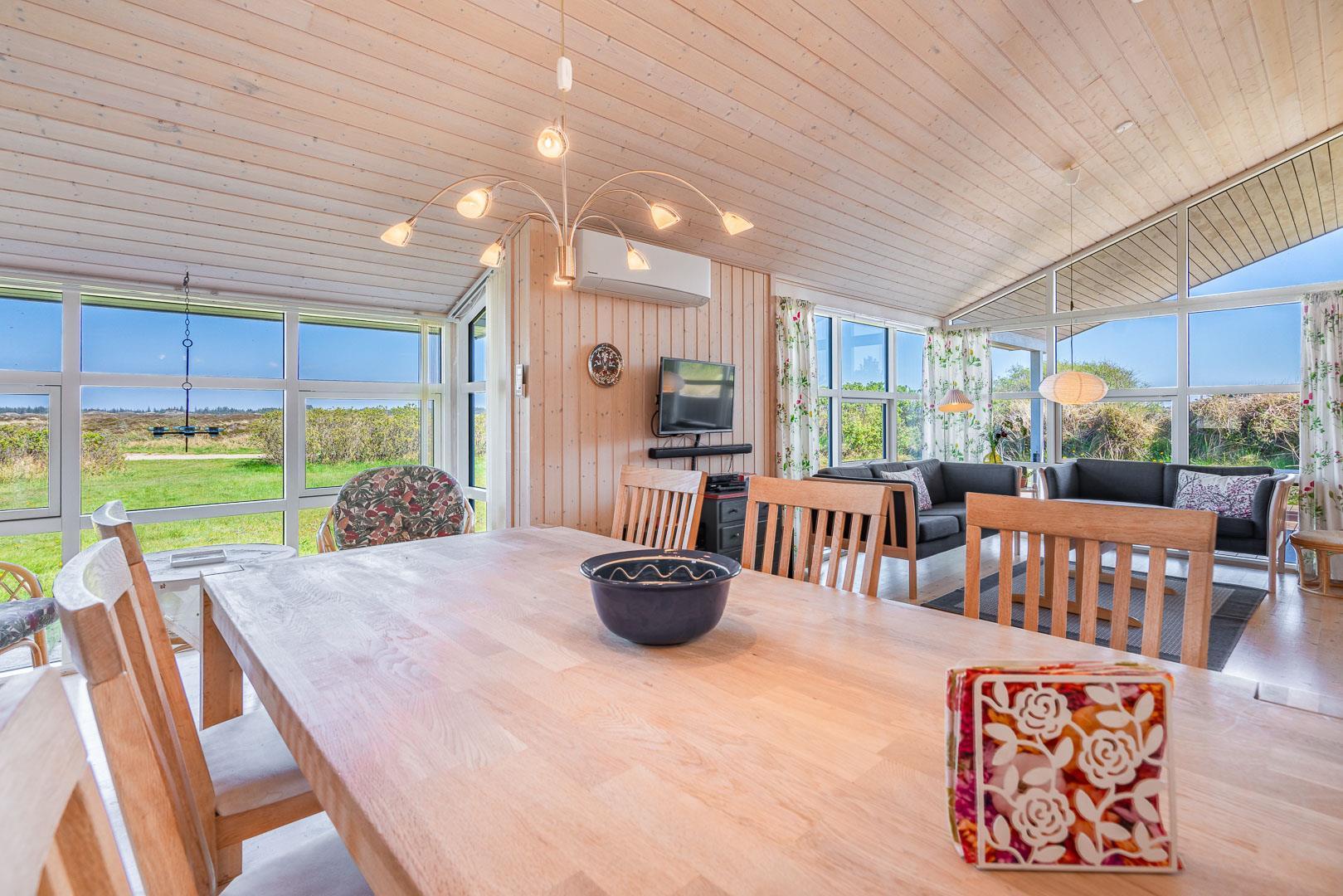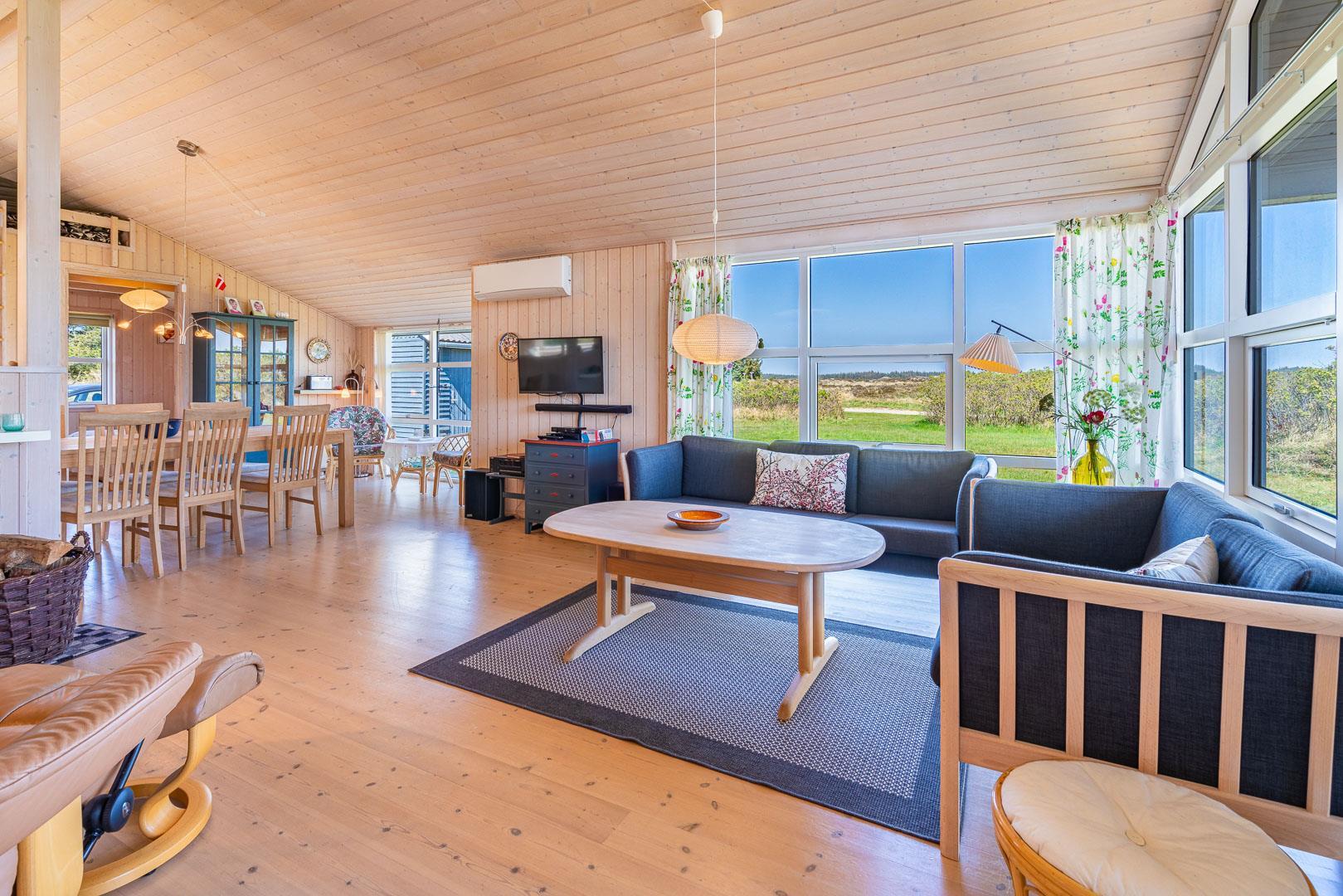 Udendørsarealerne omfavner den skønne natur omkring sommerhuset i Henne Strand. Flere terrasser giver mulighed for udendørs aktiviteter og afslapning, og den lille naturgrund foran huset tilføjer en ekstra dimension af charme og ro.