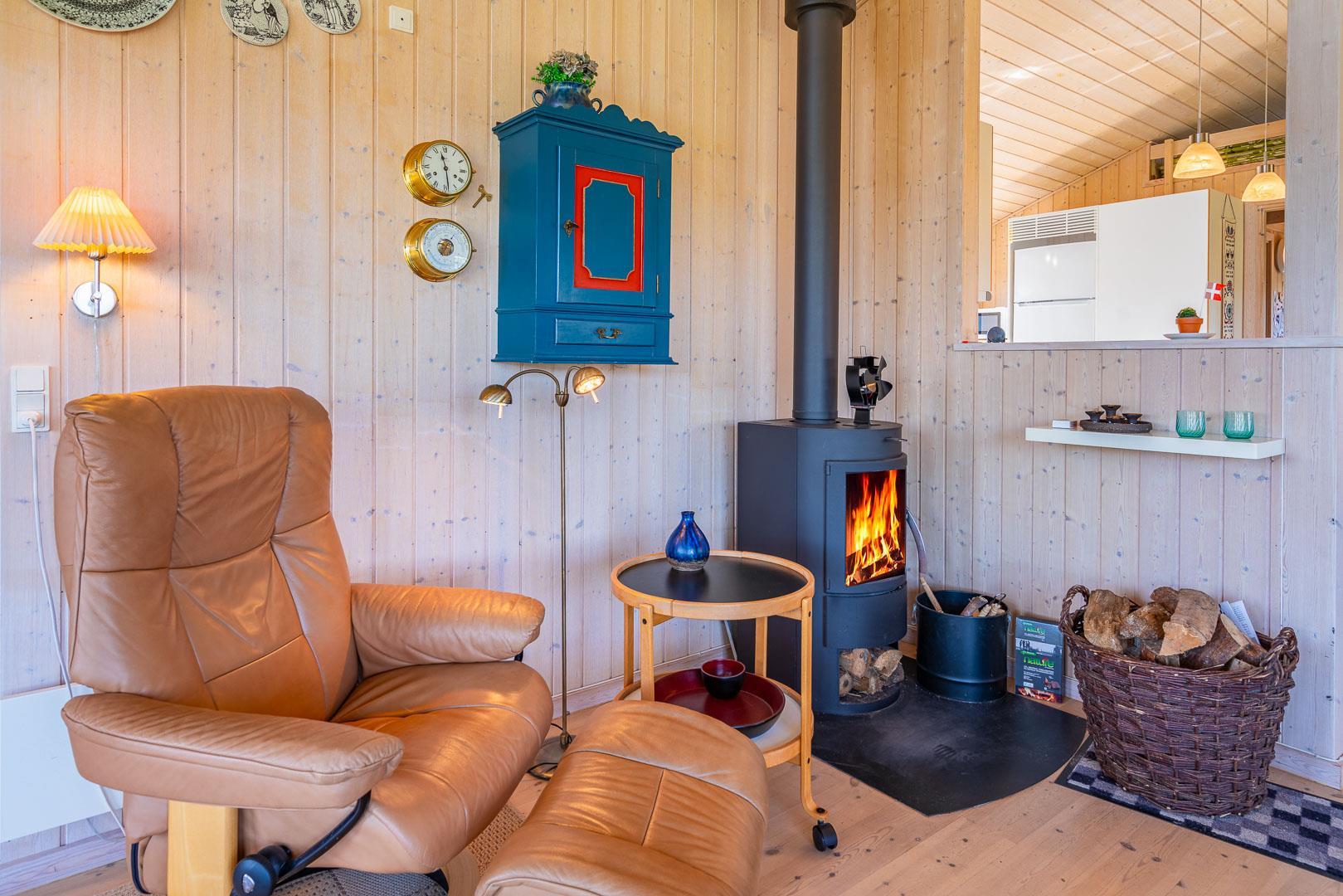 Beliggende i rolige omgivelser med en fortryllende udsigt over det fredede hedeareal, indbyder dette feriehus til afslapning og fordybelse i naturens skønhed. Træd ind i den hyggelige stue, hvor en varm brændeovn spreder en behagelig atmosfære, og køkkenet åbner sig op i en invitation til fælles madlavning og hyggelige måltider.