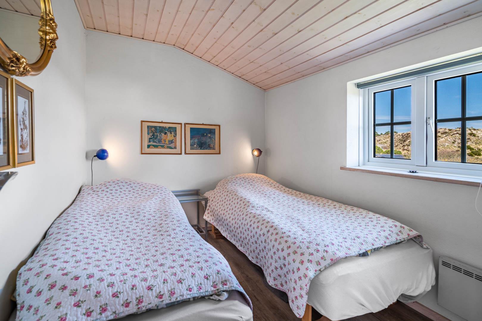 I stuen er der også brændeovn. Fra sofaen kan du på skyfrie aftener, nyde stjernehimlen igennem tagvinduet. I det rummelige badeværelse får du glæde af gulvarmen på den kolde tid af året.