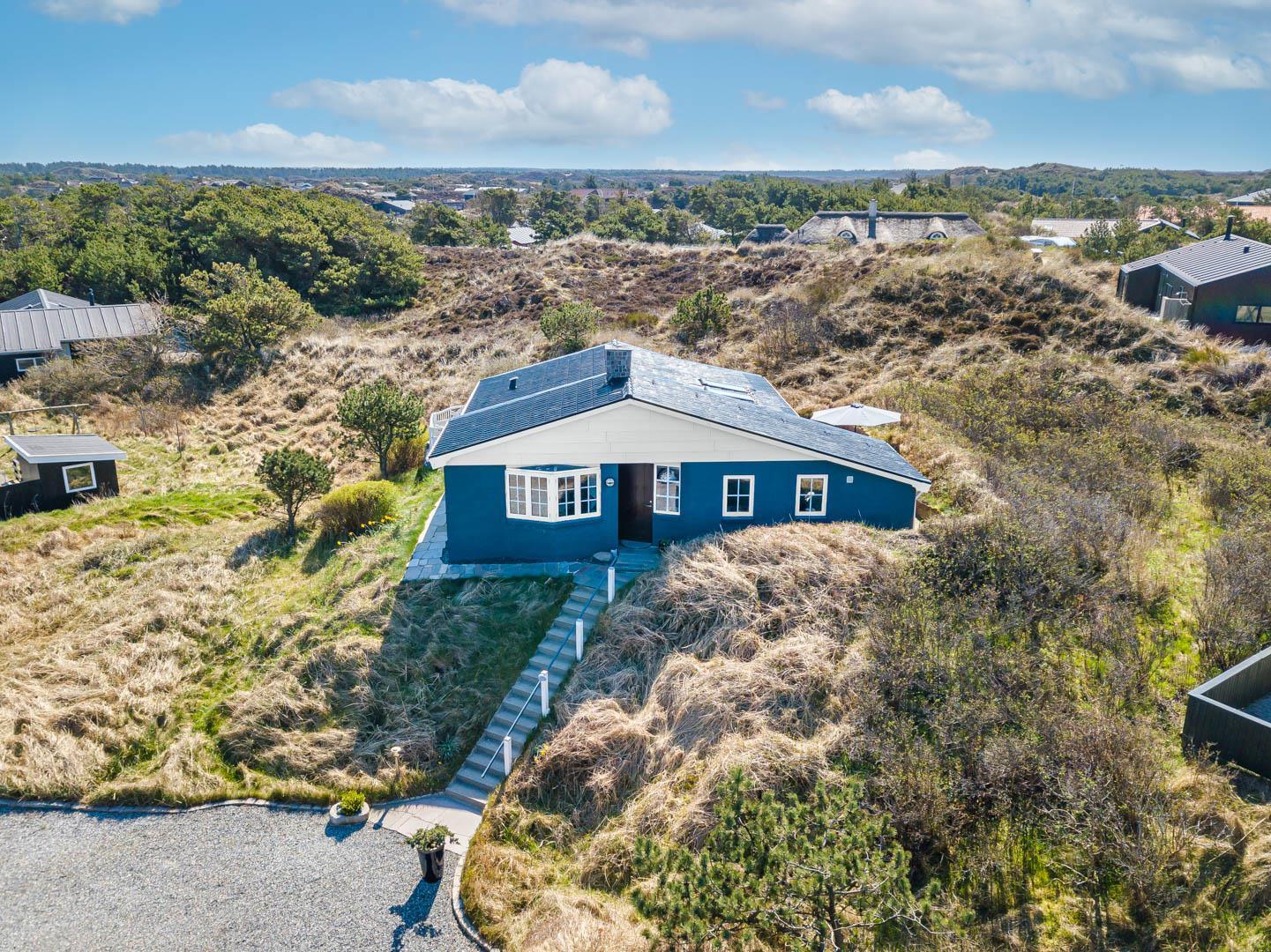 Dette hus ligger på en klitforhøjning i Henne Strand, kun 600 meter fra alle restauranter og indkøbs muligheder. Den brede hvide sandstrand ligger 500 meter væk.