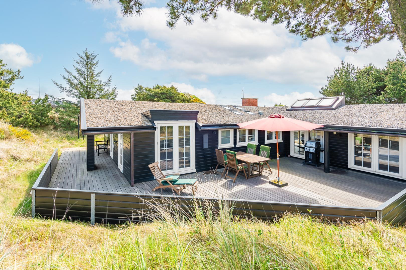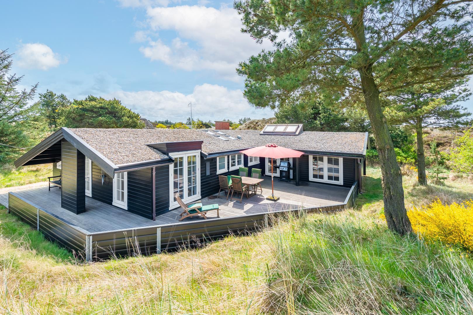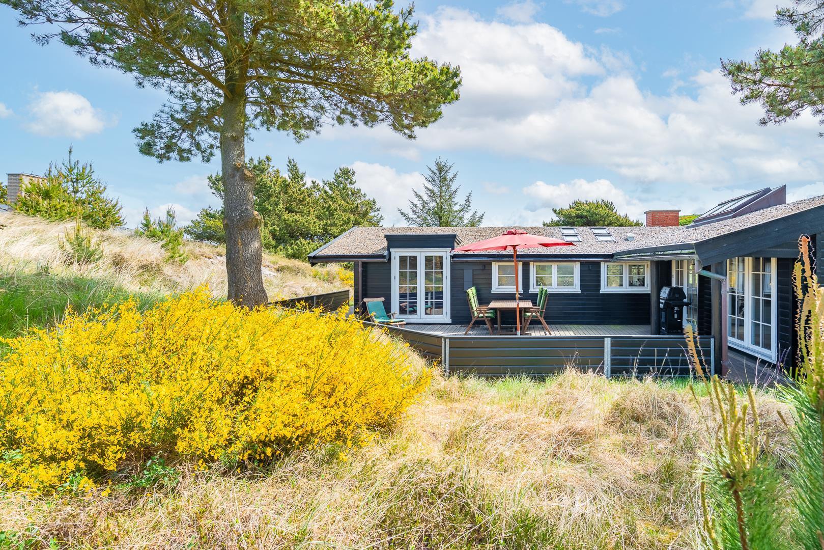 På en af Henne Strands mest naturskønne og kuperede grunde, direkte op til fredet hedeareal og med flot udsigt til klitterne, ligger dette skønne og hyggelige bjælkehus – et perfekt sted til ro, nærvær og ægte feriestemning.