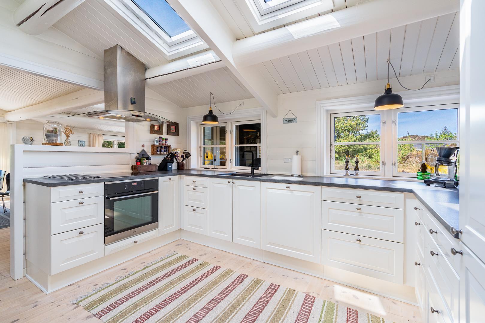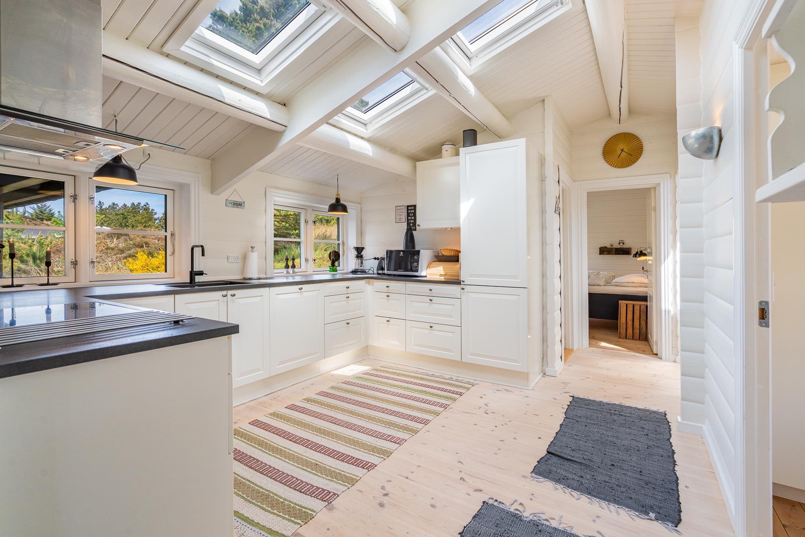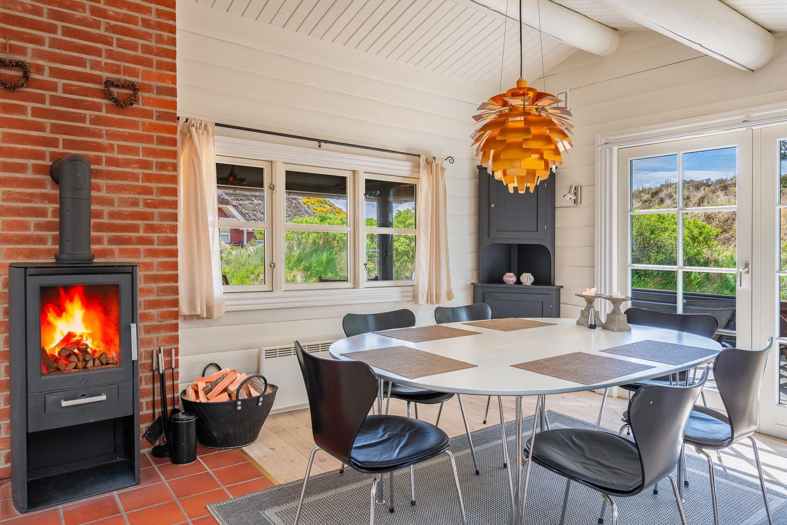 På en af Henne Strands mest naturskønne og kuperede grunde, direkte op til fredet hedeareal og med flot udsigt til klitterne, ligger dette skønne og hyggelige bjælkehus – et perfekt sted til ro, nærvær og ægte feriestemning.