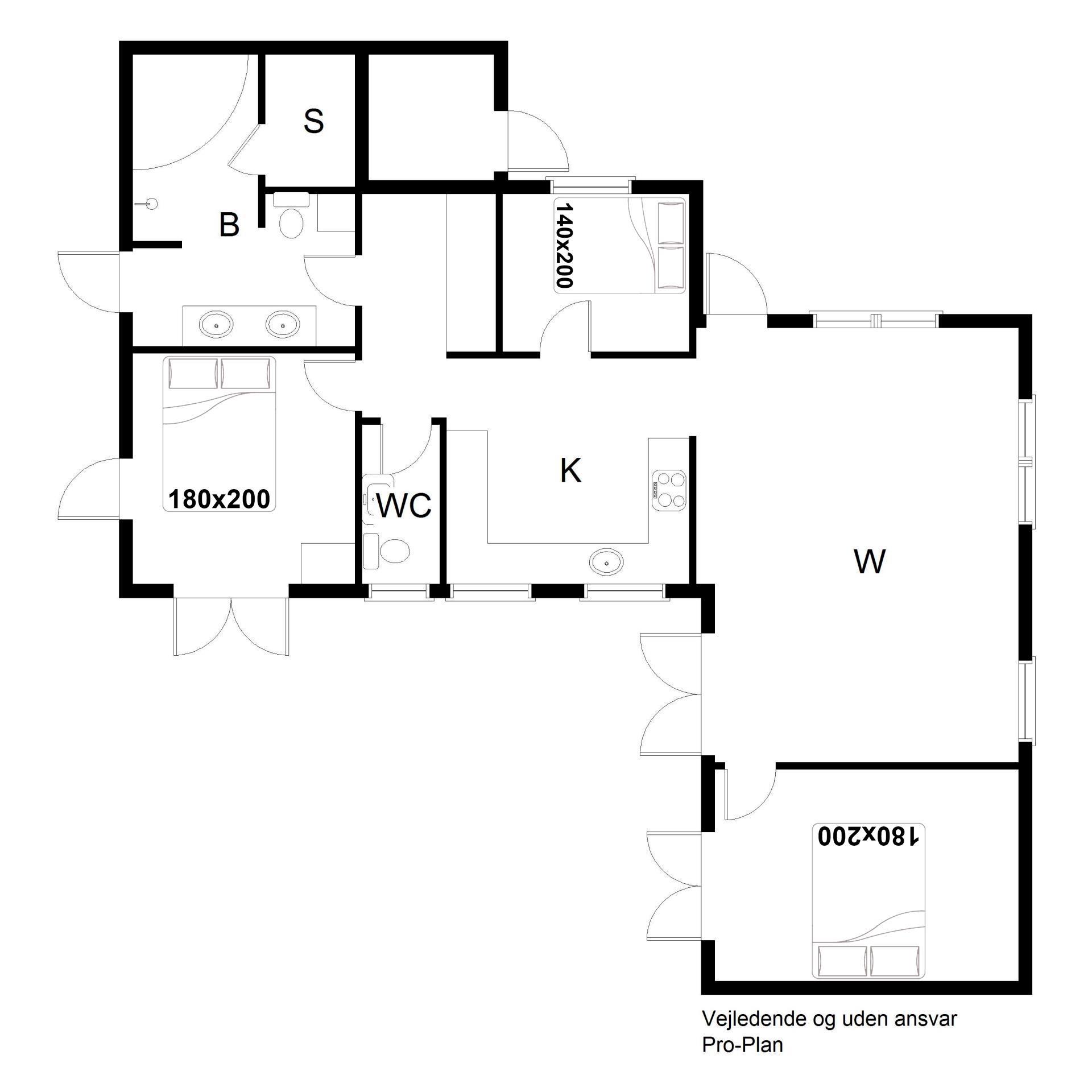 Sengestørrelser: 2 dobbeltsenge 180 x 200 cm + 1 dobbeltseng 140 x 200 cm.