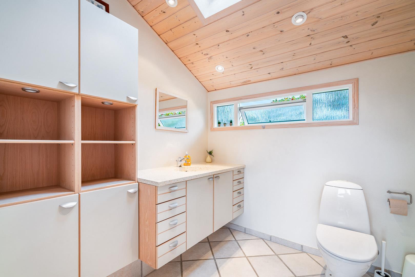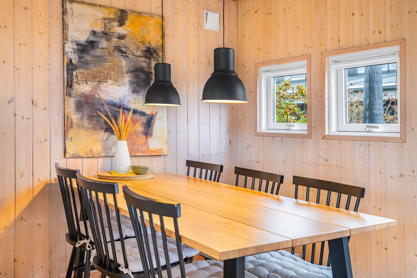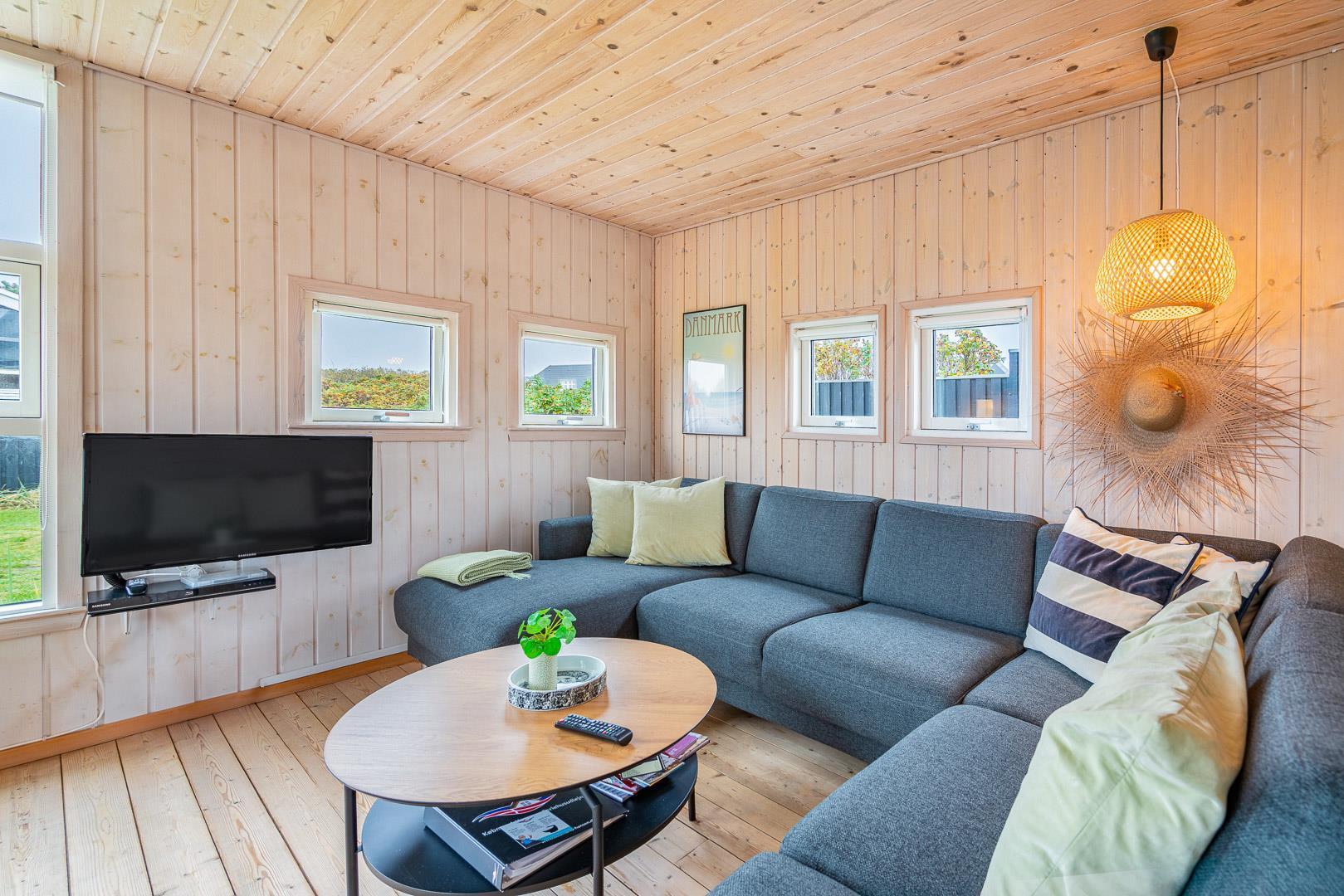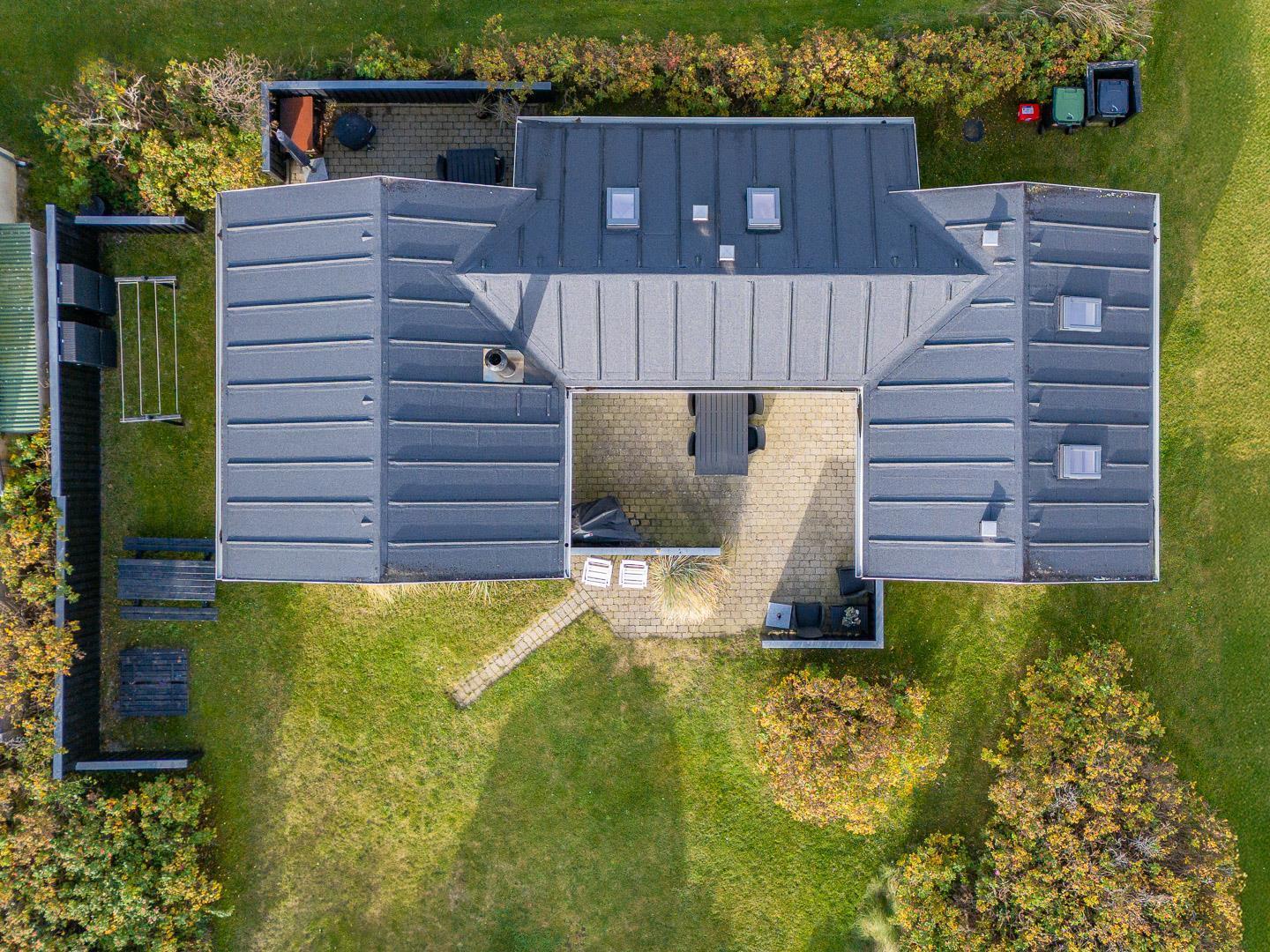 Beliggende på en dejlig naturgrund i gåafstand fra Henne Strands centrum, men alligevel på en ugenert naturgrund, ligger dette dejlige feriehus. Huset er smagfuld indrettet med gode møbler og store soverum med gode senge. Flot køkken og badeværelse. Fra stuen er der udgang til den ene af husets terrasser.