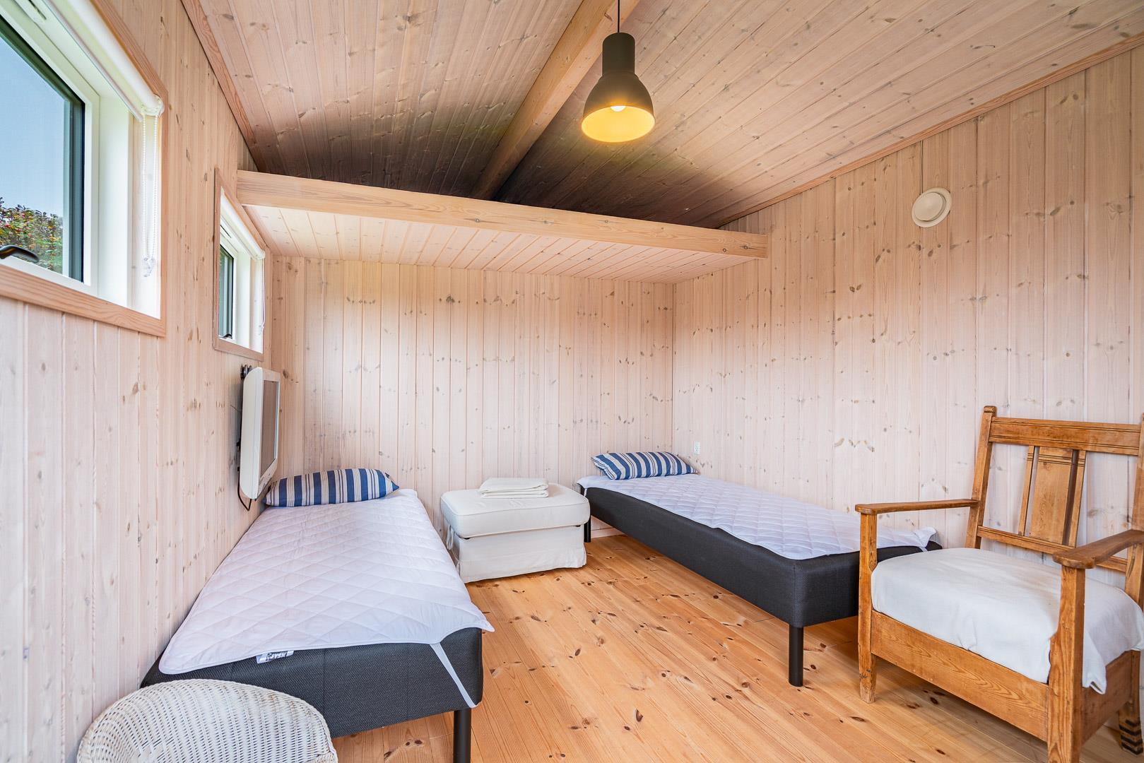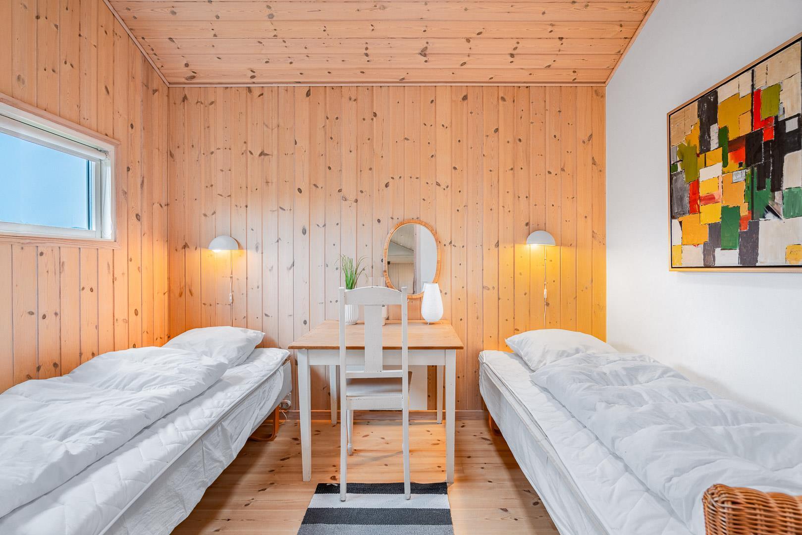 Sengestørrelse: 1 dobbeltseng med 2 madrasser 90 x 200 cm + 4 enkeltsenge 90 x 200 cm.
