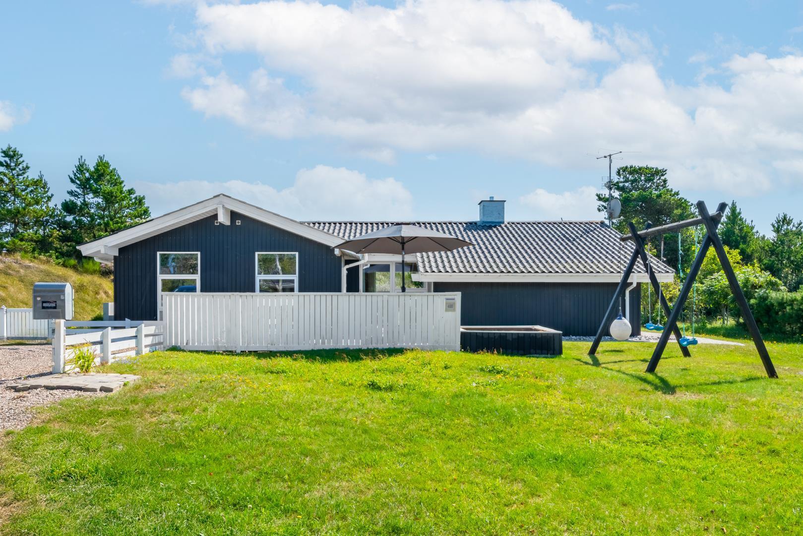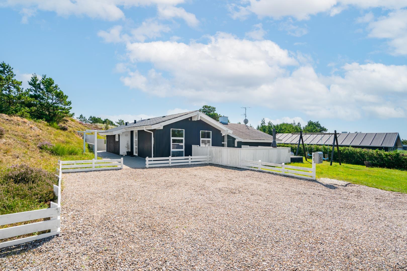 Dette meget velholdte og stemningsfulde sommerhus byder på en attraktiv beliggenhed, hvor man bor privat og ugeneret på en stor naturgrund – samtidig med at der er gåafstand til både Henne Strand by og den brede, hvide sandstrand.
