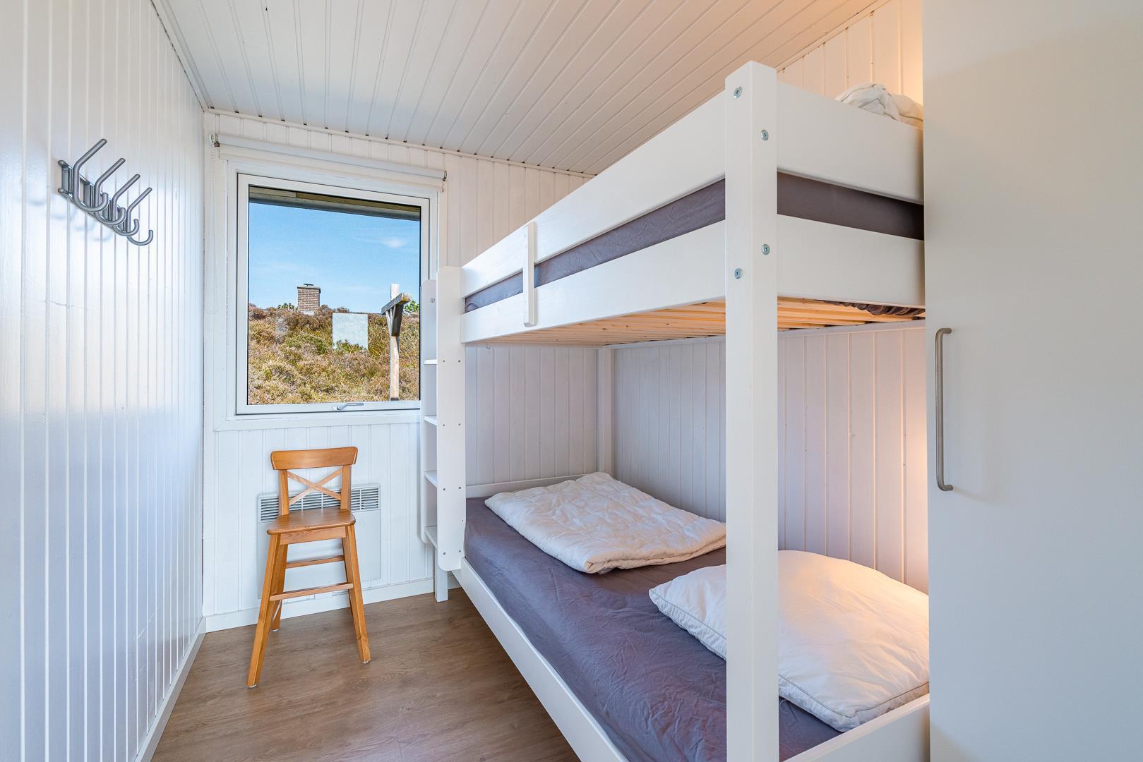 Sengestørrelse: 1 dobbeltseng med 2 madrasser 90 x 200 cm + 1 dobbeltseng med 2 madrasser 80 x 200 cm + 1 køjeseng 80 x 200 cm.