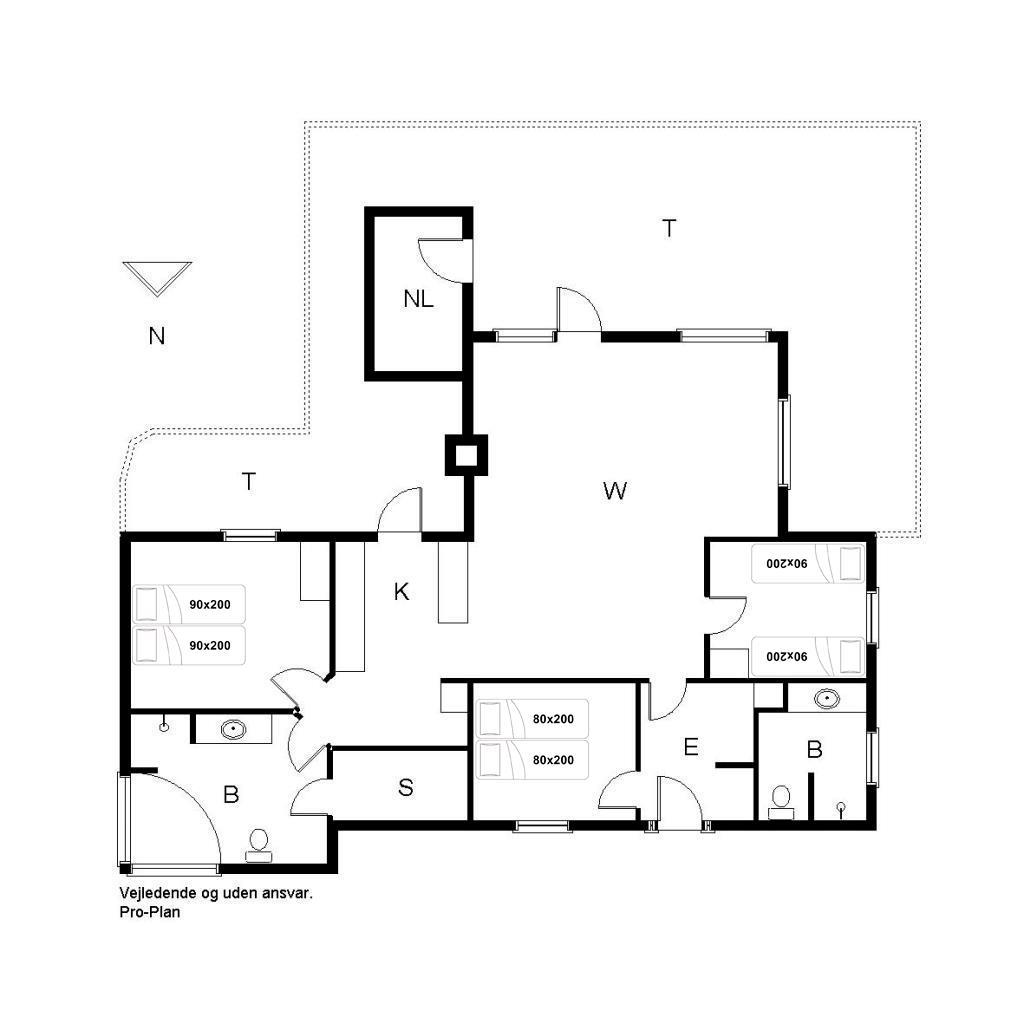 Sengestørrelse: 1 dobbeltseng med 2 madrasser 90 x 200 cm + 1 dobbeltseng med 2 madrasser 80 x 200 cm + 2 enkeltsenge 90 x 200 cm.