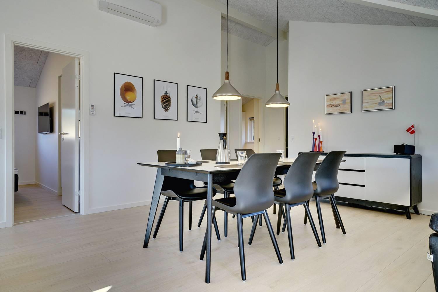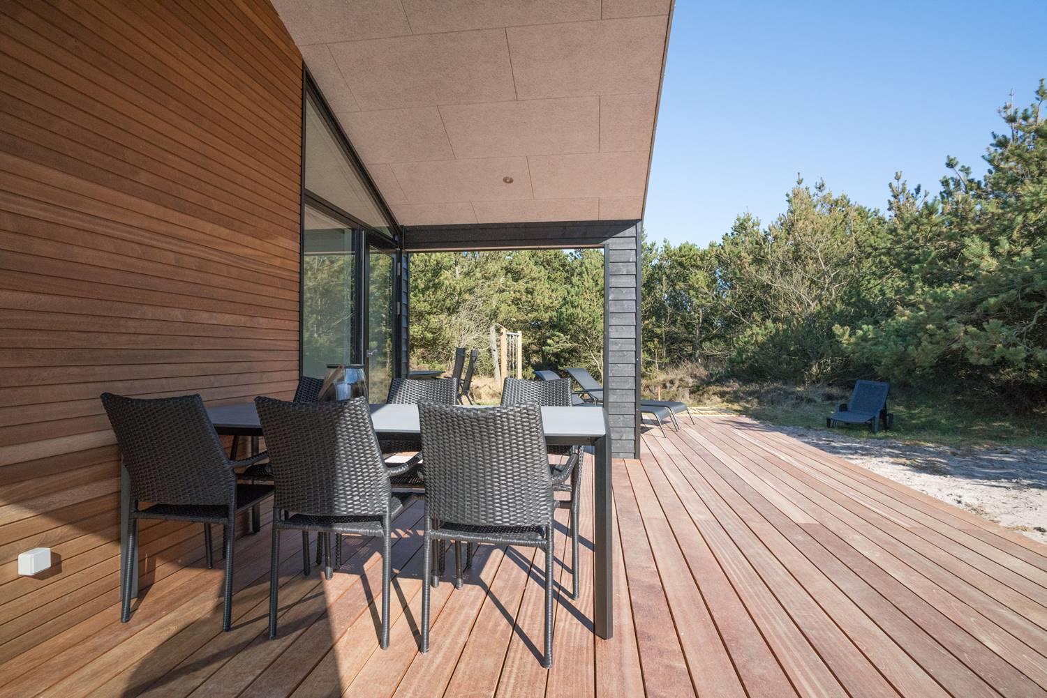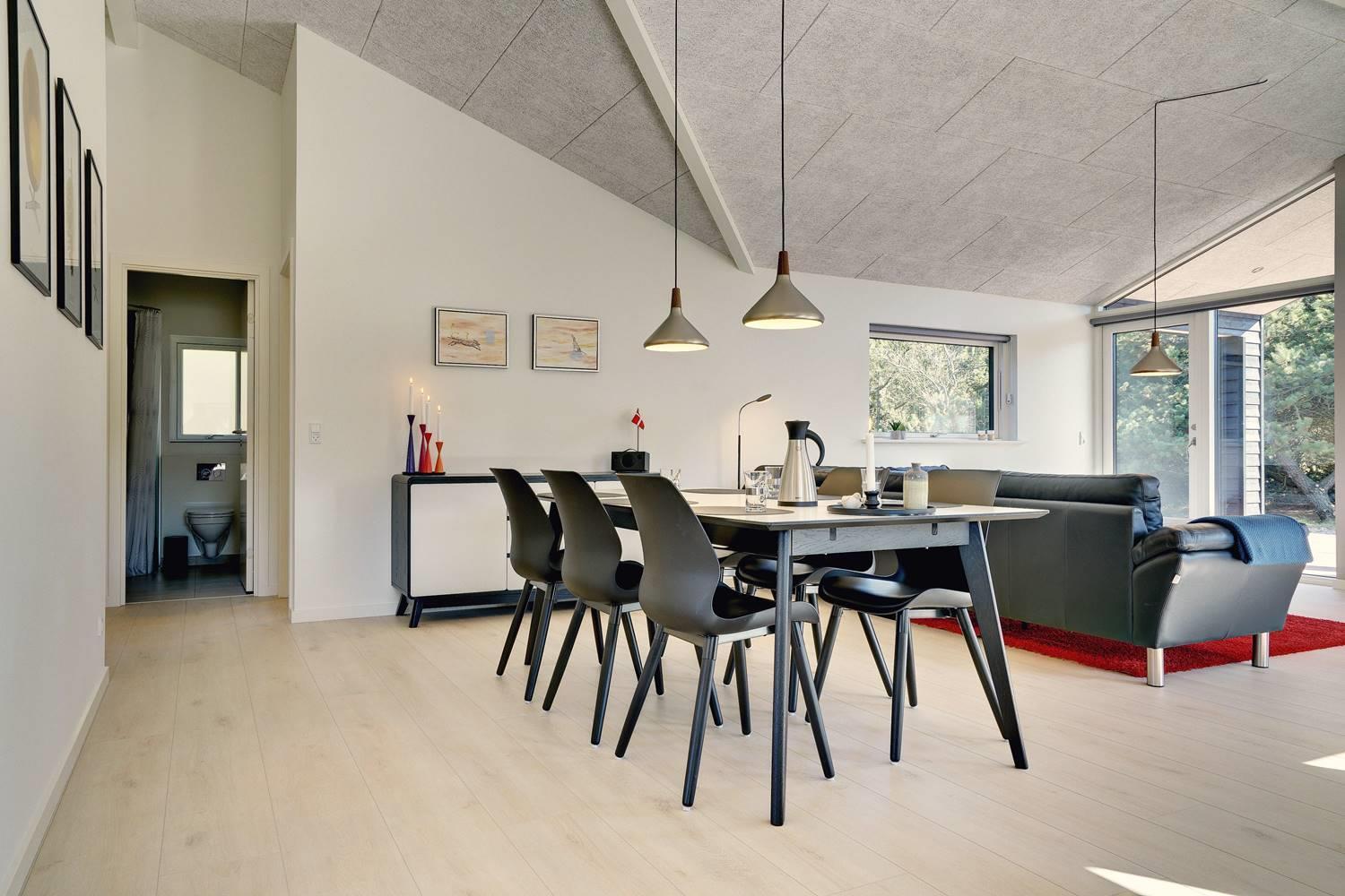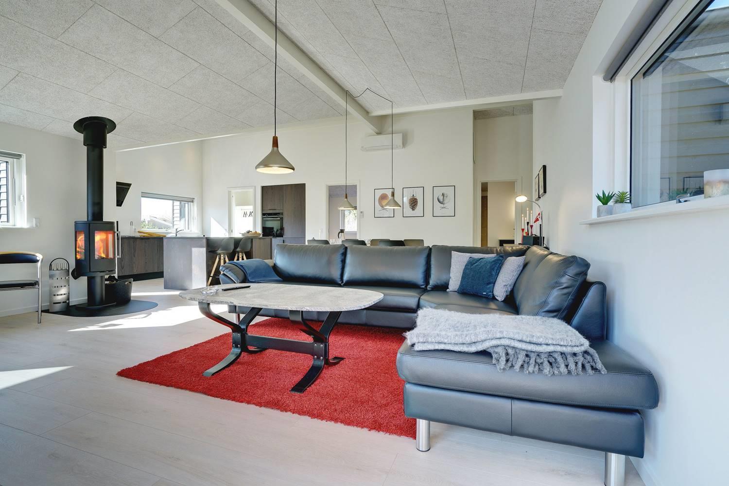 Husets store attraktion er det store opholdsrum, som giver jer de optimale rammer for feriehyggen uanset årstid. Her er både sørget for god akustik med Troldtektlofter og et helt fantastisk lysindfald gennem glaspartier mod alle fire verdenshjørner.