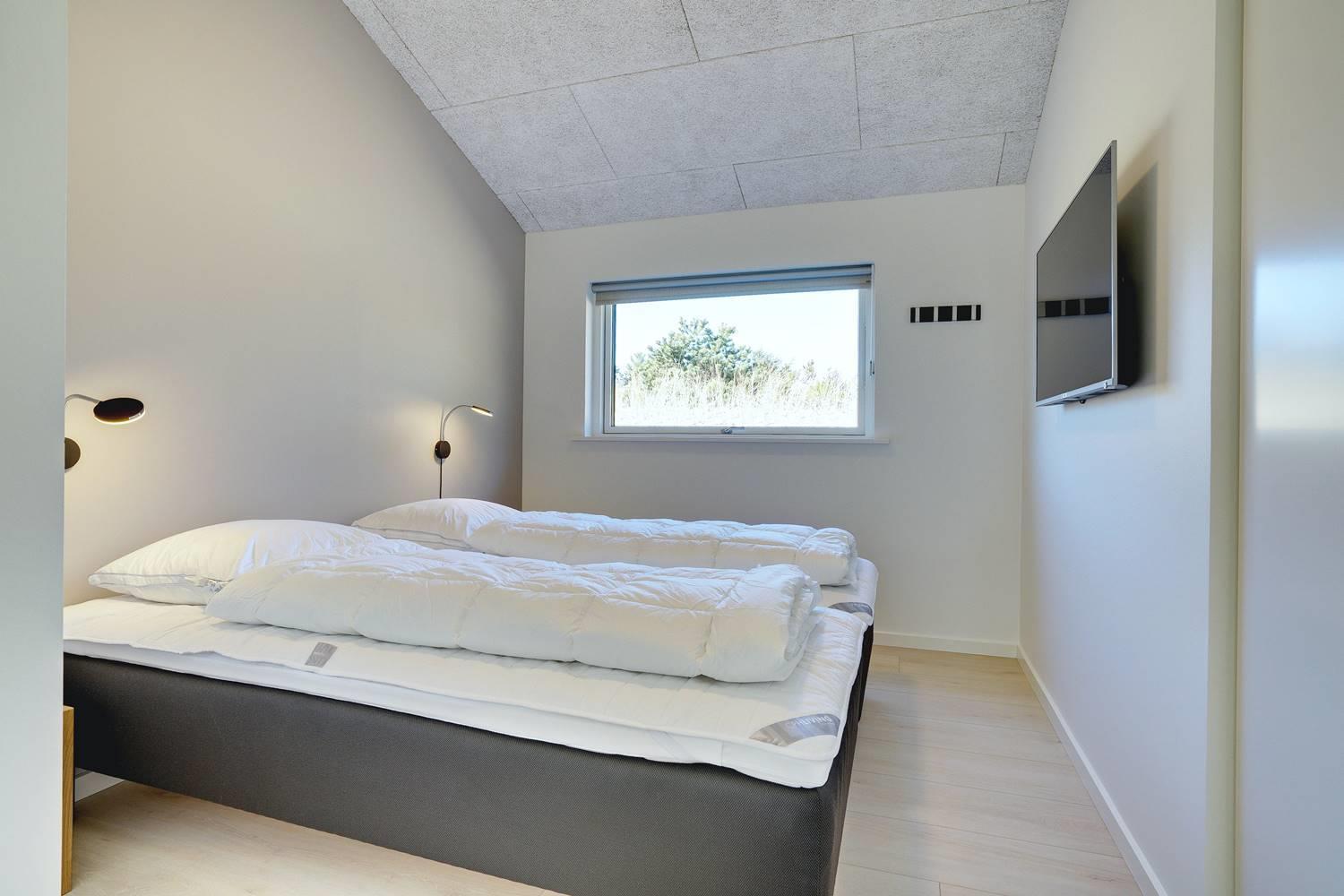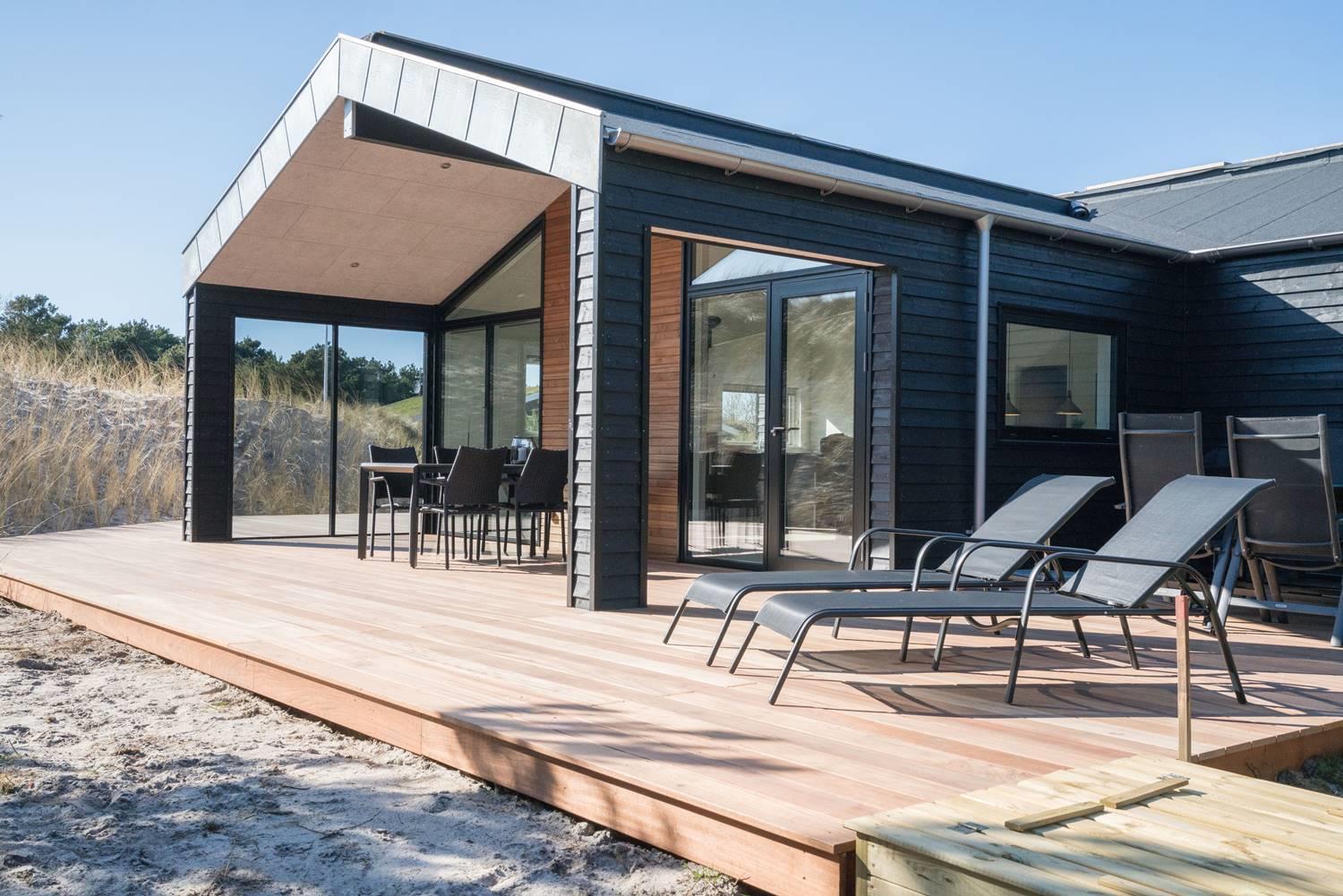 Få skridt fra den fantastiske badestrand i Henne ligger dette topmoderne, lyse og indbydende sommerhus fra 2019 og byder sig til. Huset har en god indretning med et fantastisk lækkert opholdsrum, tre soverum og to badeværelser, hvoraf det ene har badekar og sauna. Udenfor kan ferien nydes i den helt ugenerede have, som med sit skønne terrassedæk byder på adskillige timers sol, afslapning og familiehygge.