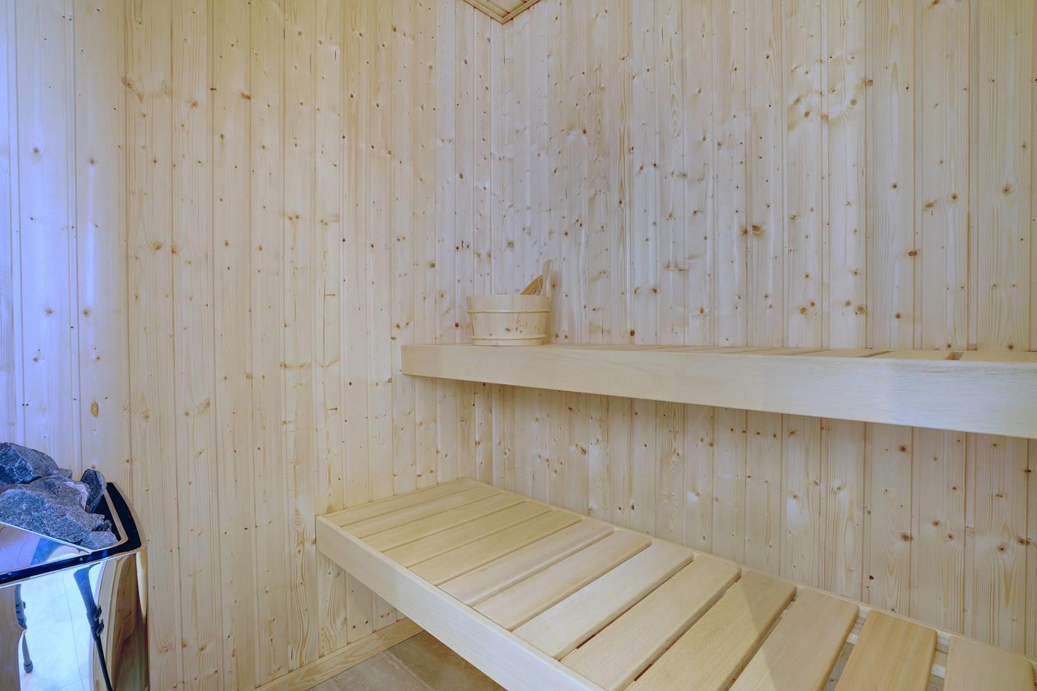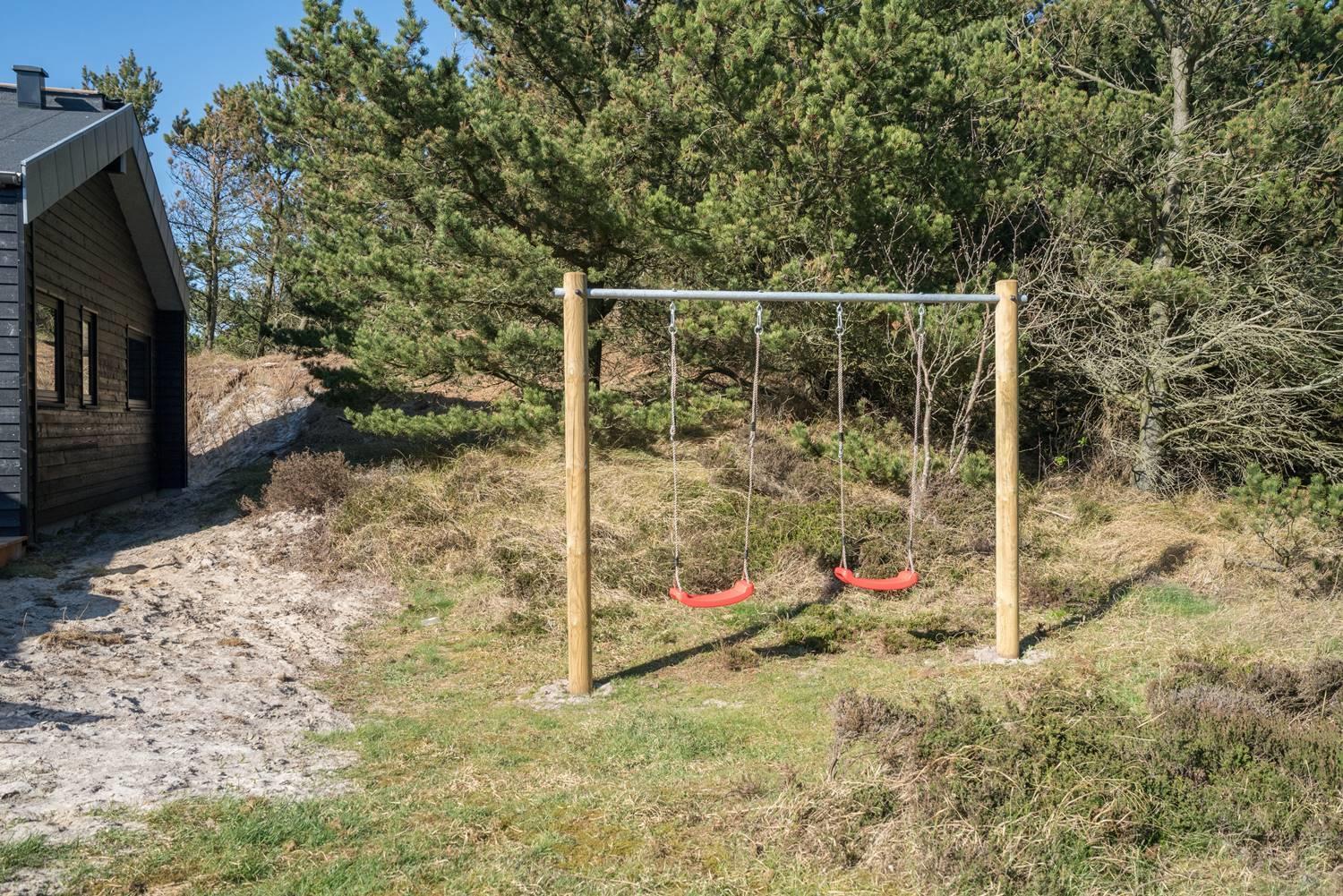 En hyggelig brændeovn, et stort fladskærms-TV og regnvandsbrusere er eksempler på nogle af de skønne indendørsfaciliteter, mens gyngestativ, sandkasse og liggestole er at finde udenfor. Sovepladser er der seks af i alt, og ingen skal sove i køjeseng, for der er dobbeltsenge i alle tre soverum.
