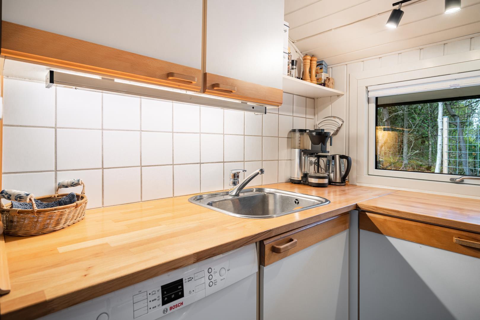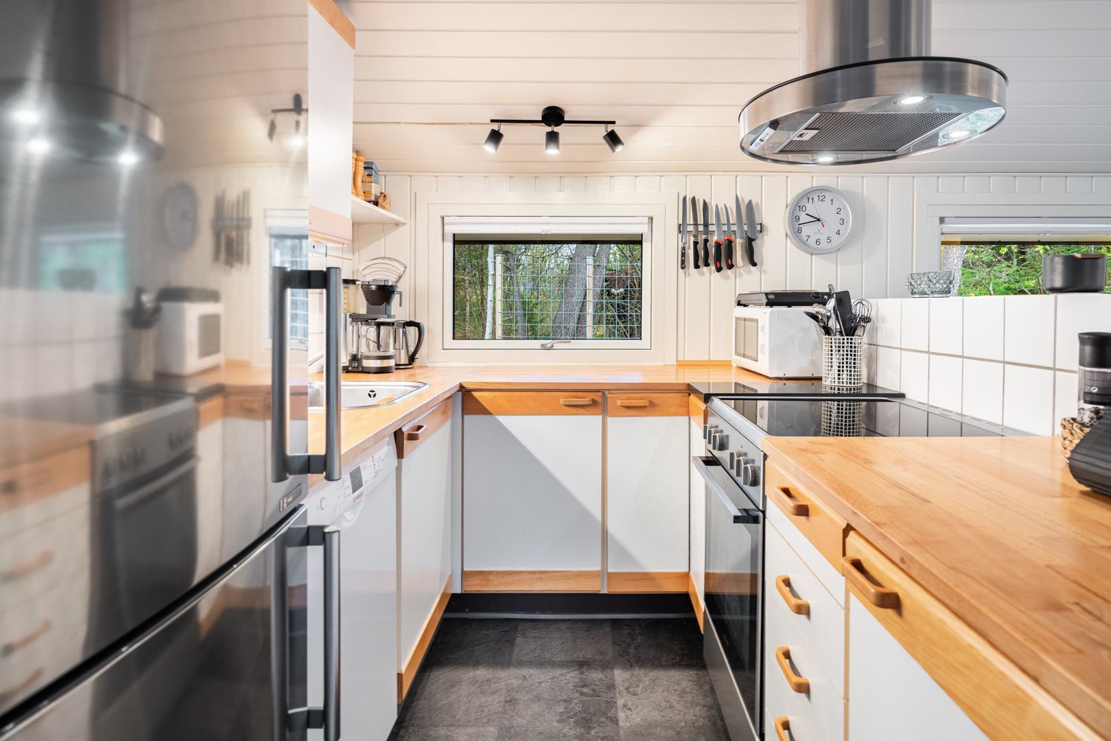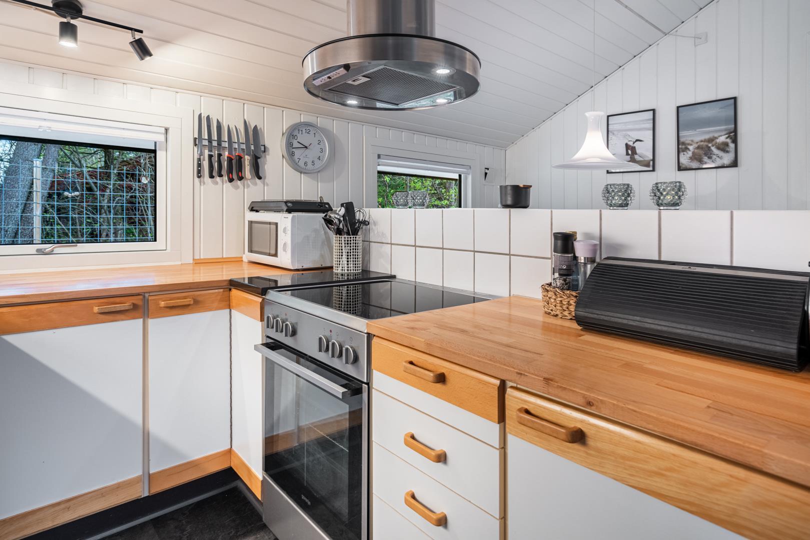 Veludstyret køkken i åben forbindelse med stuen. Lader til elbil: Type 2 - 11kW inkl. Kabel