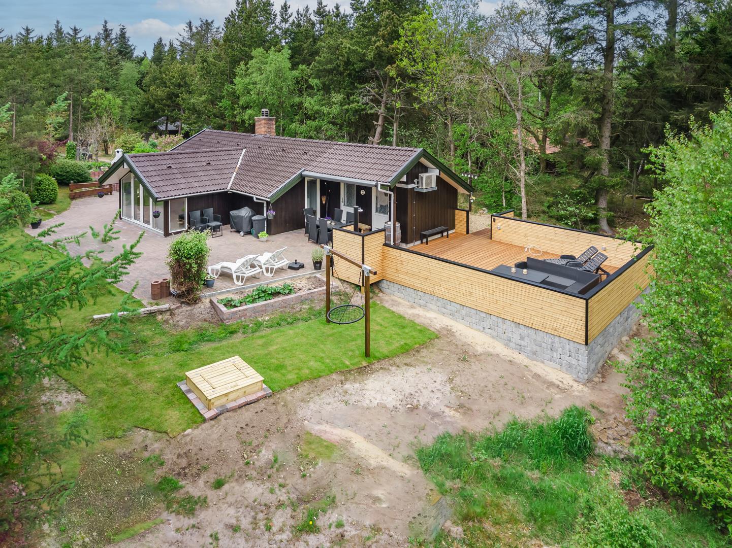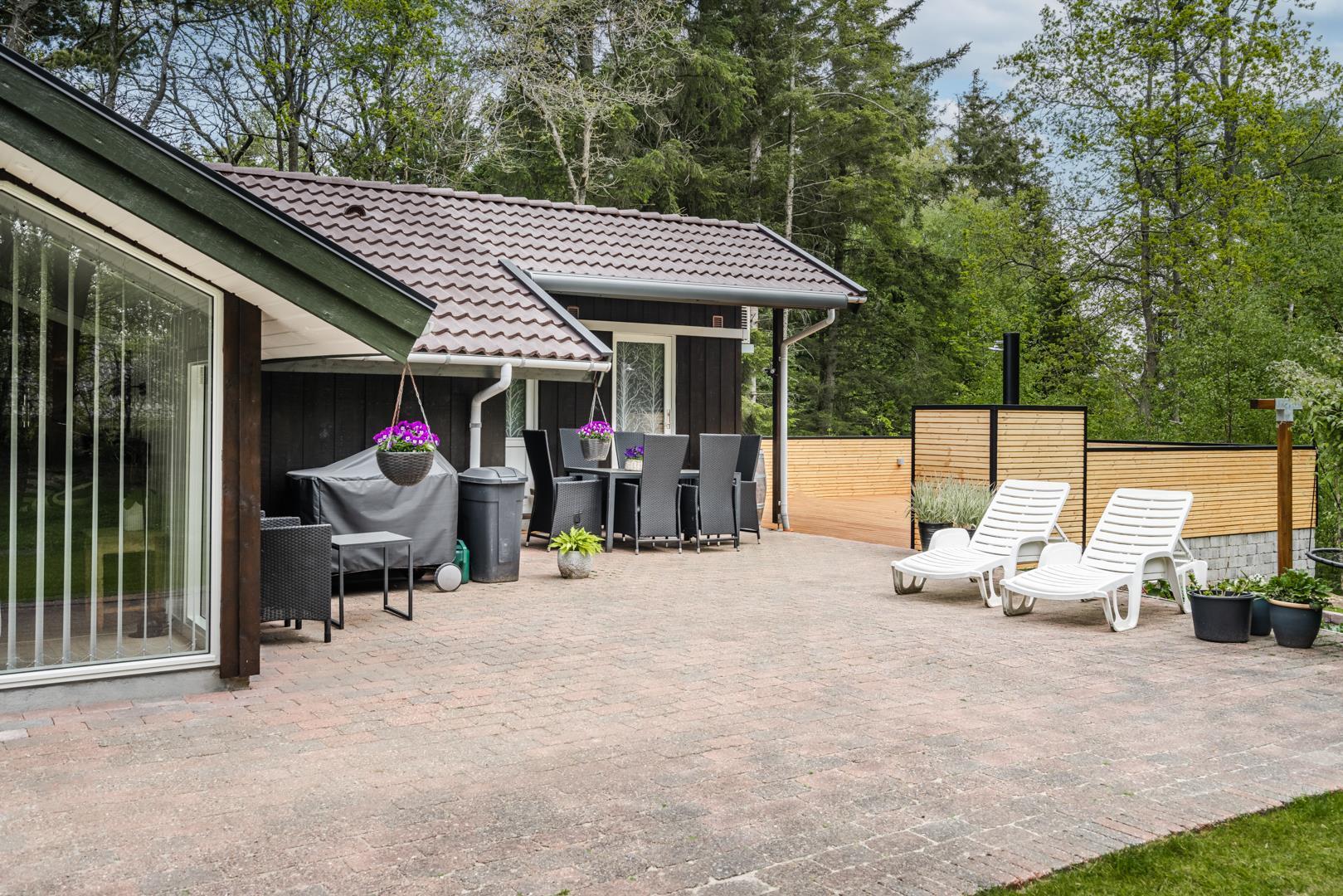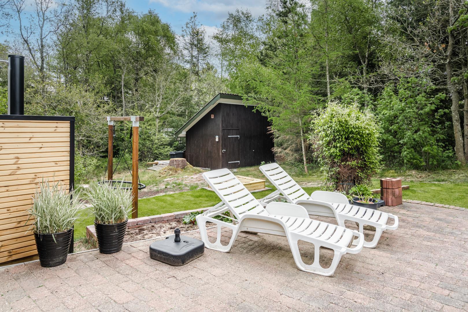 Udendørs byder huset på et fantastisk udeområde hvor freden og solen kan nydes hele dagen - især her skal den store nye træterrasse fremhæves - her finder I også husets udebruser. Der er på grunden også en hyggelig 'gryde' med grillplads.