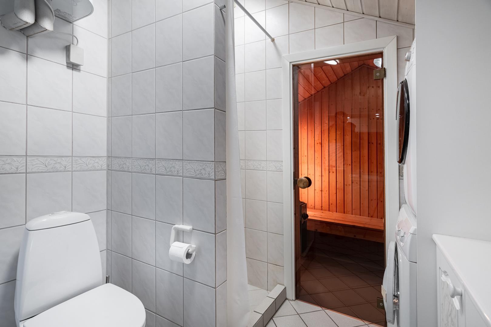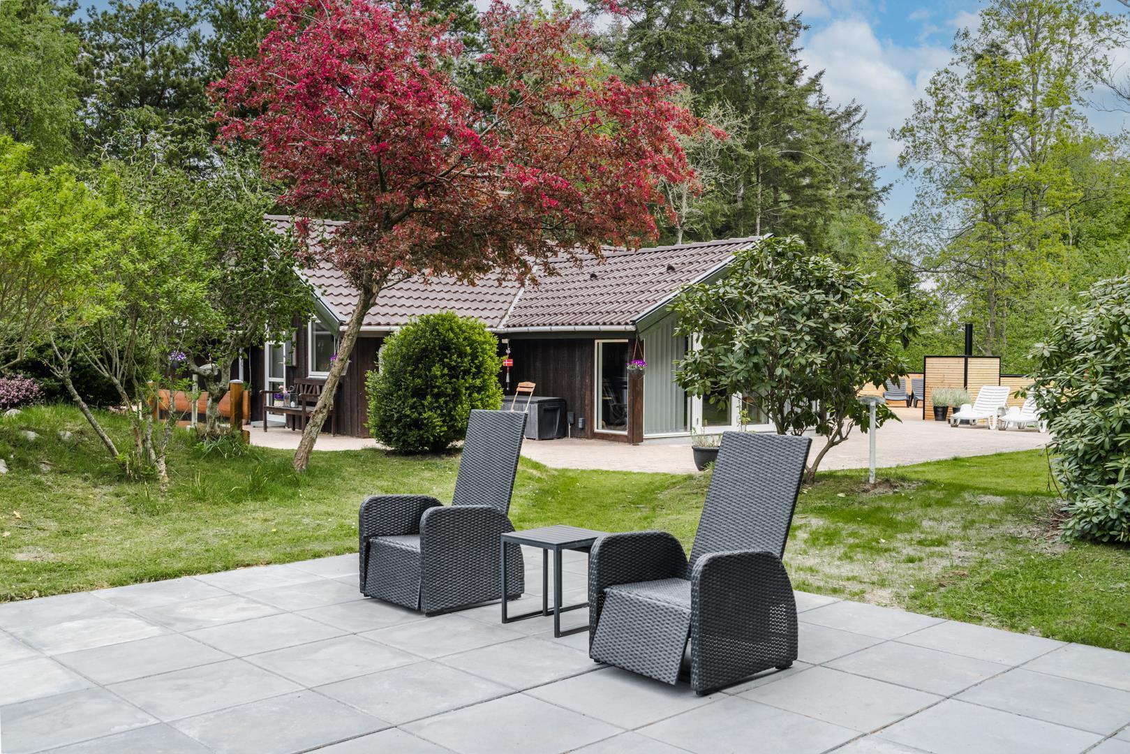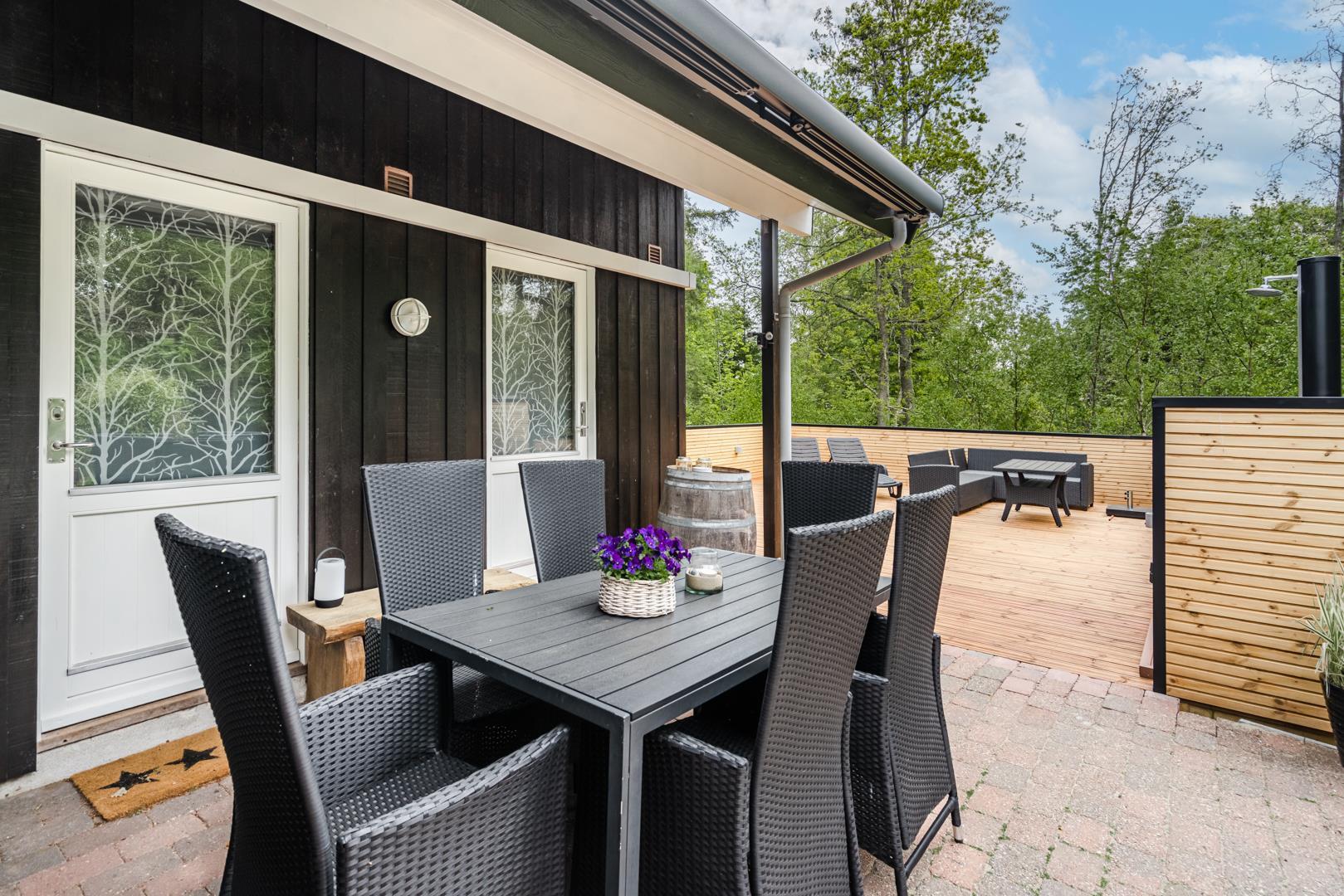 Udendørs byder huset på et fantastisk udeområde hvor freden og solen kan nydes hele dagen - især her skal den store nye træterrasse fremhæves - her finder I også husets udebruser. Der er på grunden også en hyggelig 'gryde' med grillplads.
