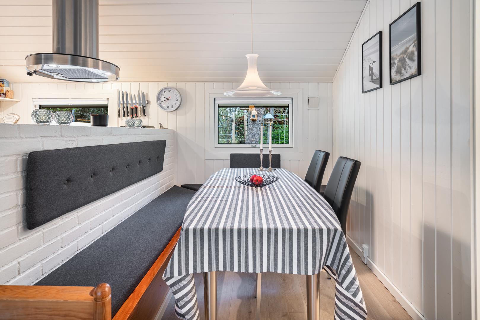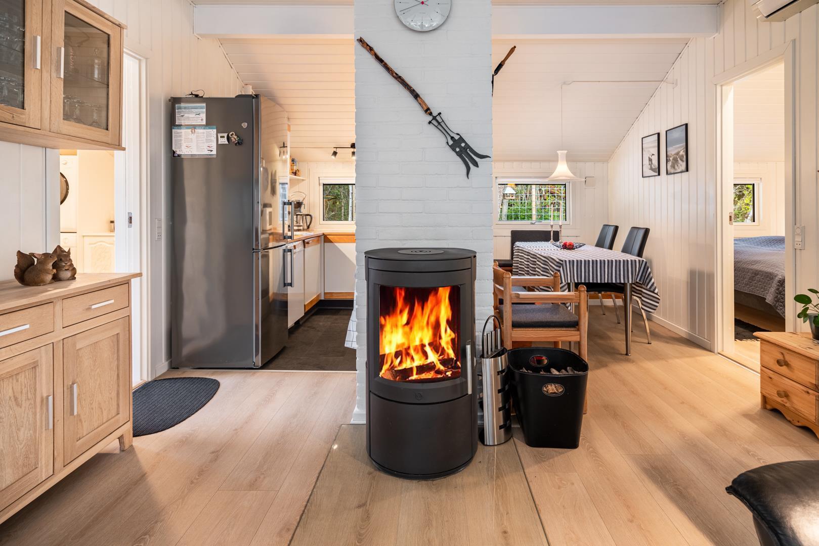 Stendyssevej 28 Henne Strand øst byder på hyggelig og stemningsfyldt indretning. Sommerhuset råder over vaskemaskine og tørretumbler. Huset fremstår efter en modernisering i 2022 lyst og venligt og er indrettet med personlig stil. Der er mulighed for at varme sig foran husets brændeovn. Der er også energibesparende varmepumpe i huset.