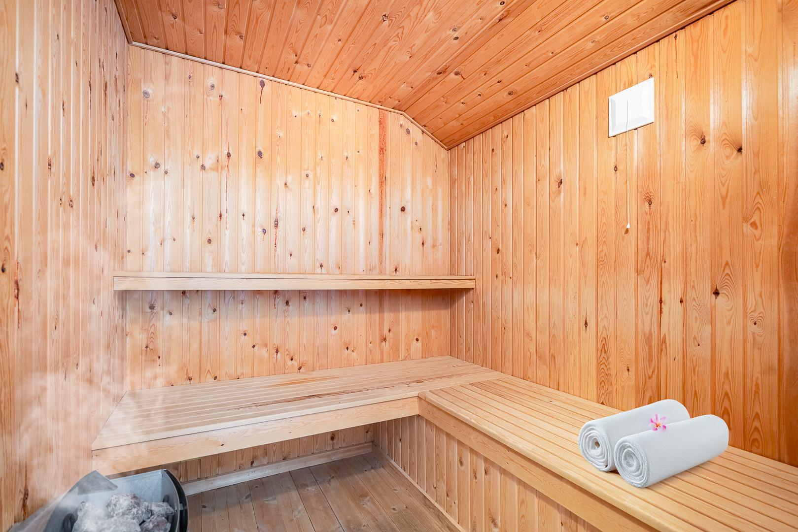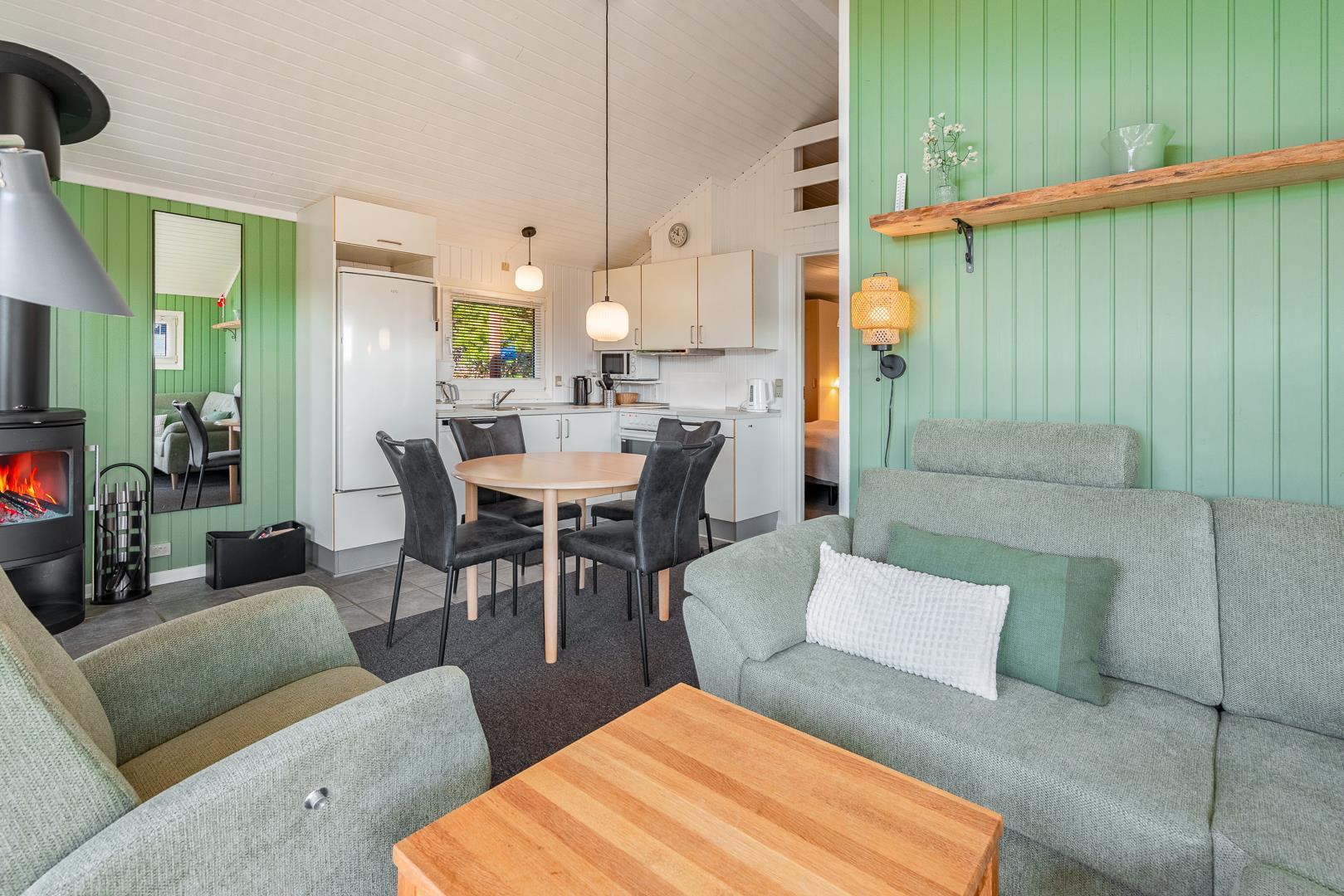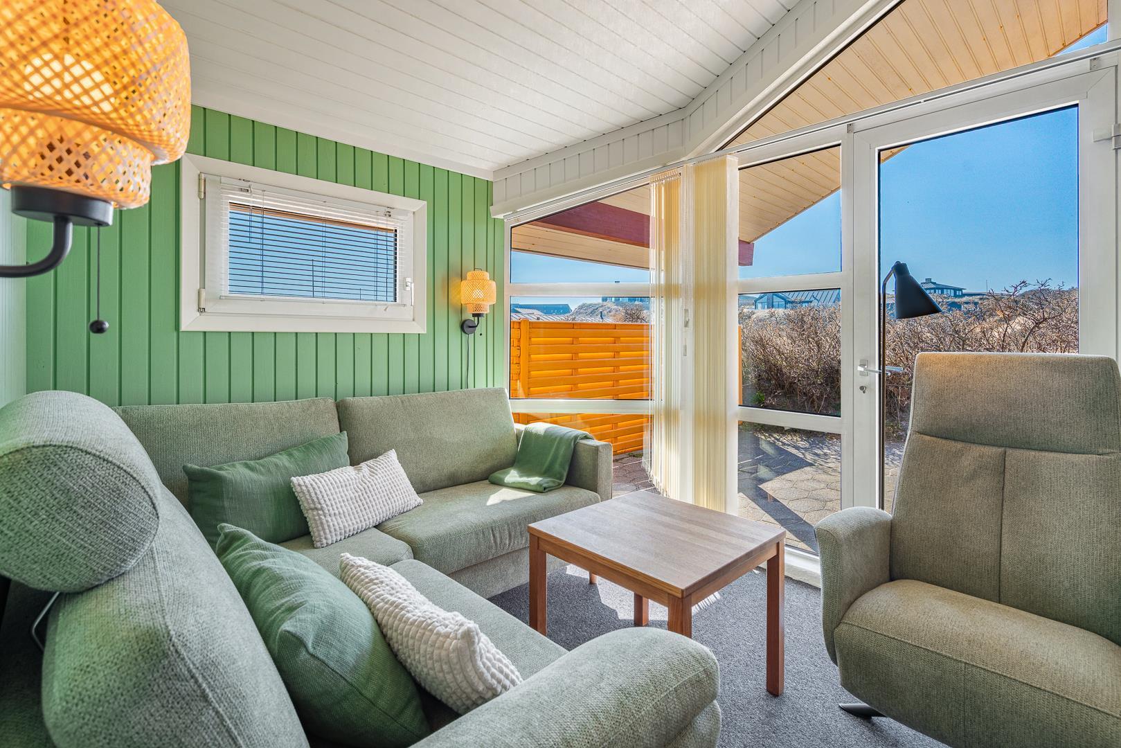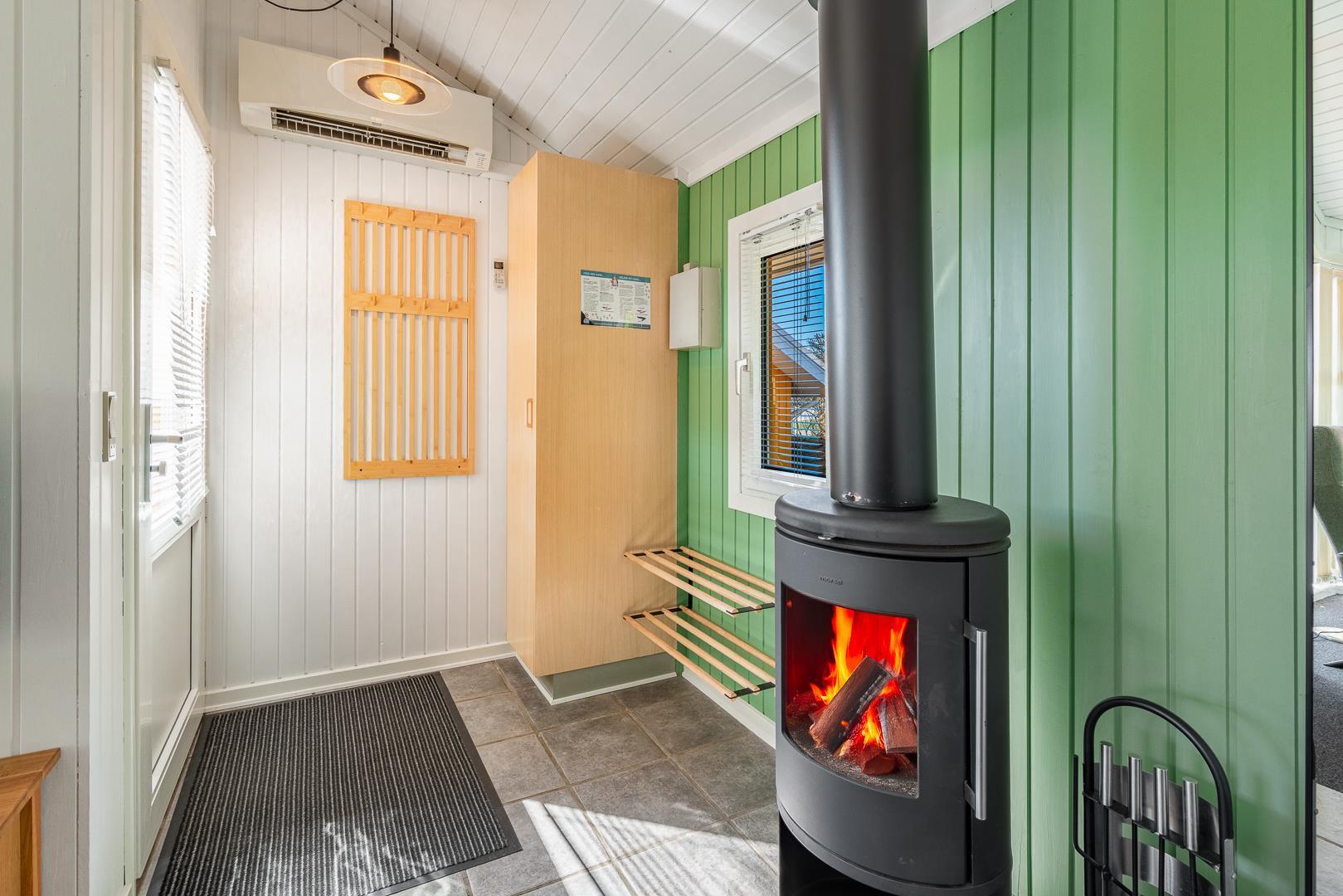 Hyggeligt feriehus tæt på strand og centrum, med sauna, brændeovn og ugenert terrasse mod syd/vest.