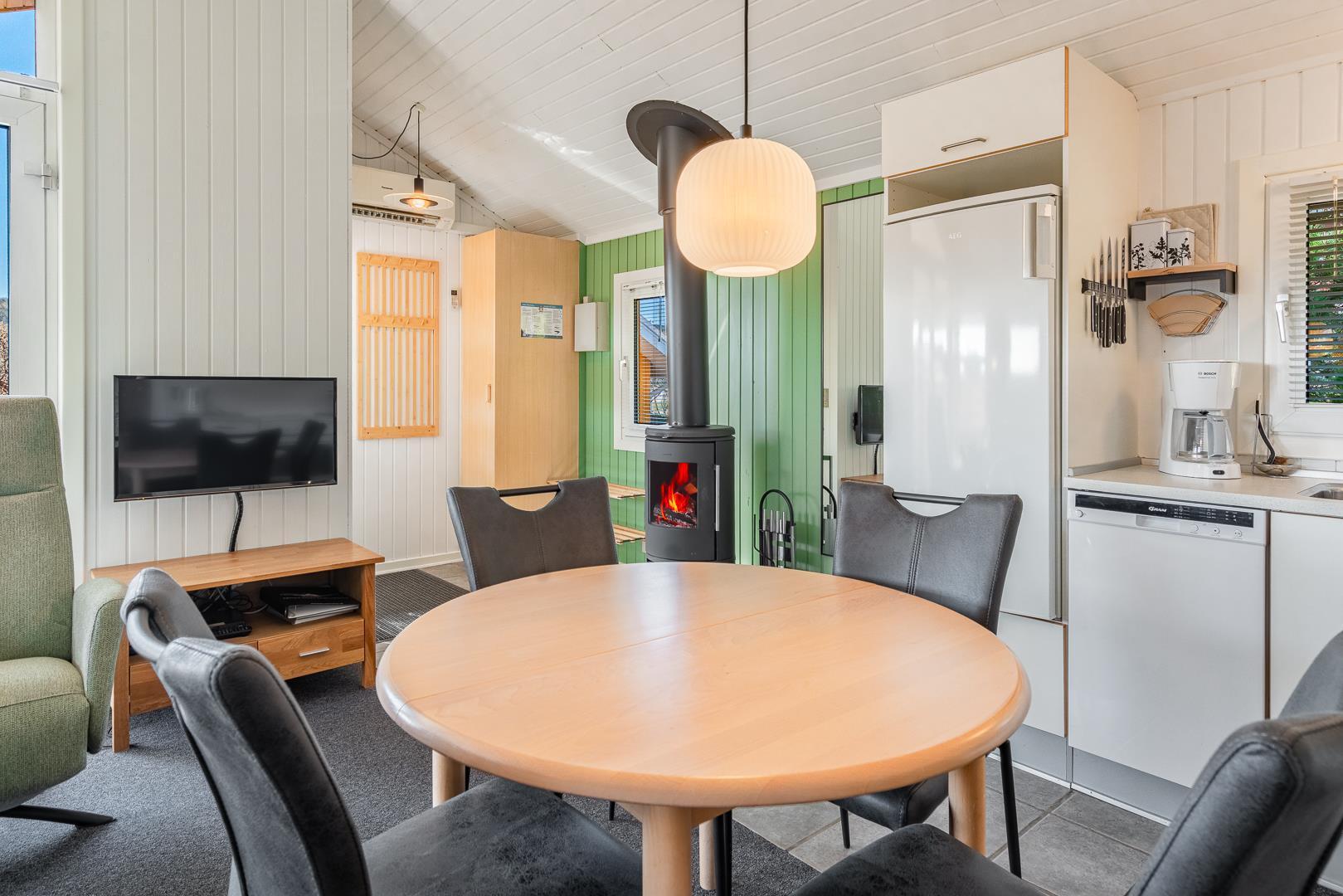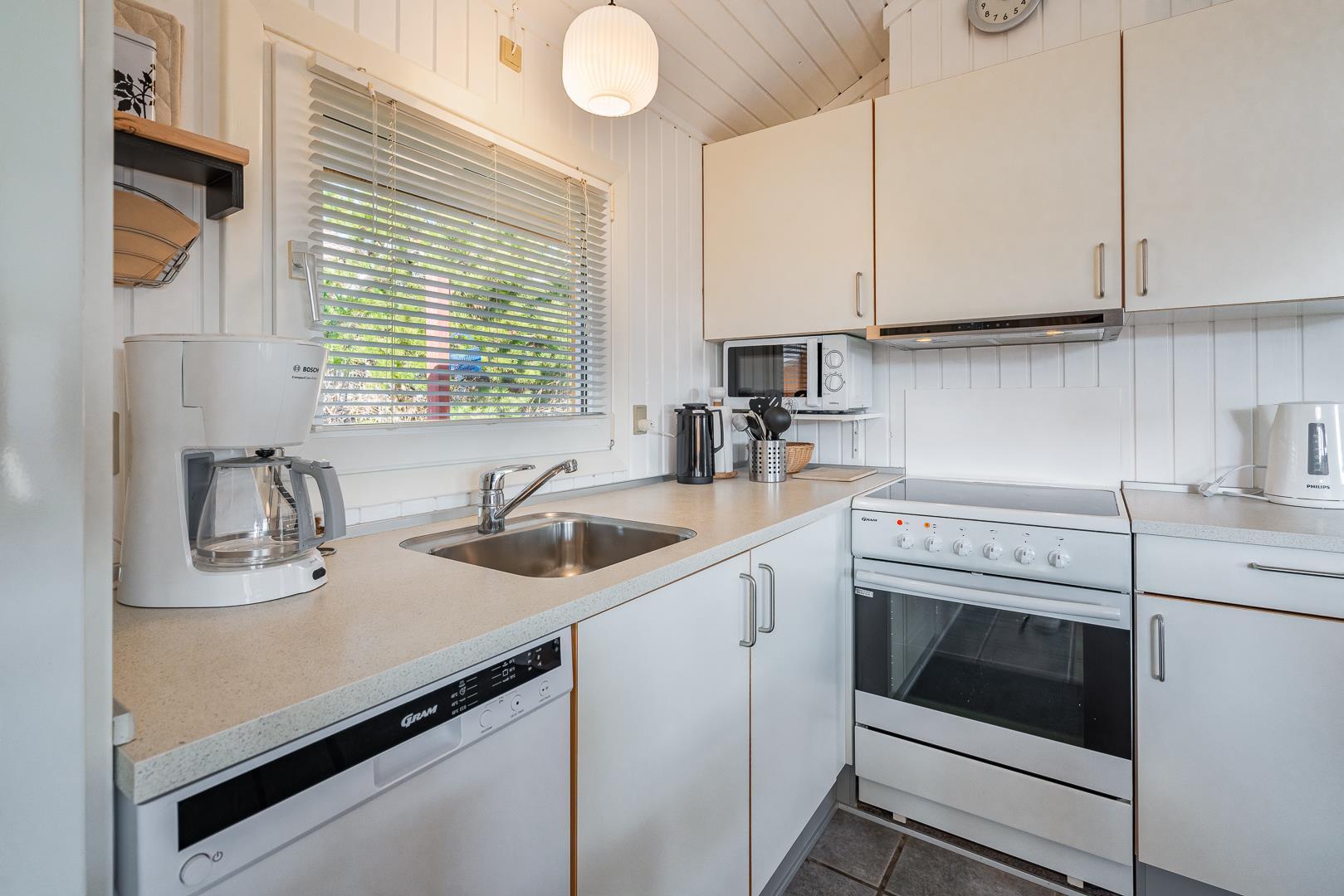 Dette hyggelige og meget velholdte feriehus er beliggende på en grund meget nær strand og centrum. Dejlig køkken/alrum med brændeovn. Feriehusets 2 ekstra senge er på hemsen. Dejlig, ugenert syd/vest vendt terrasse.