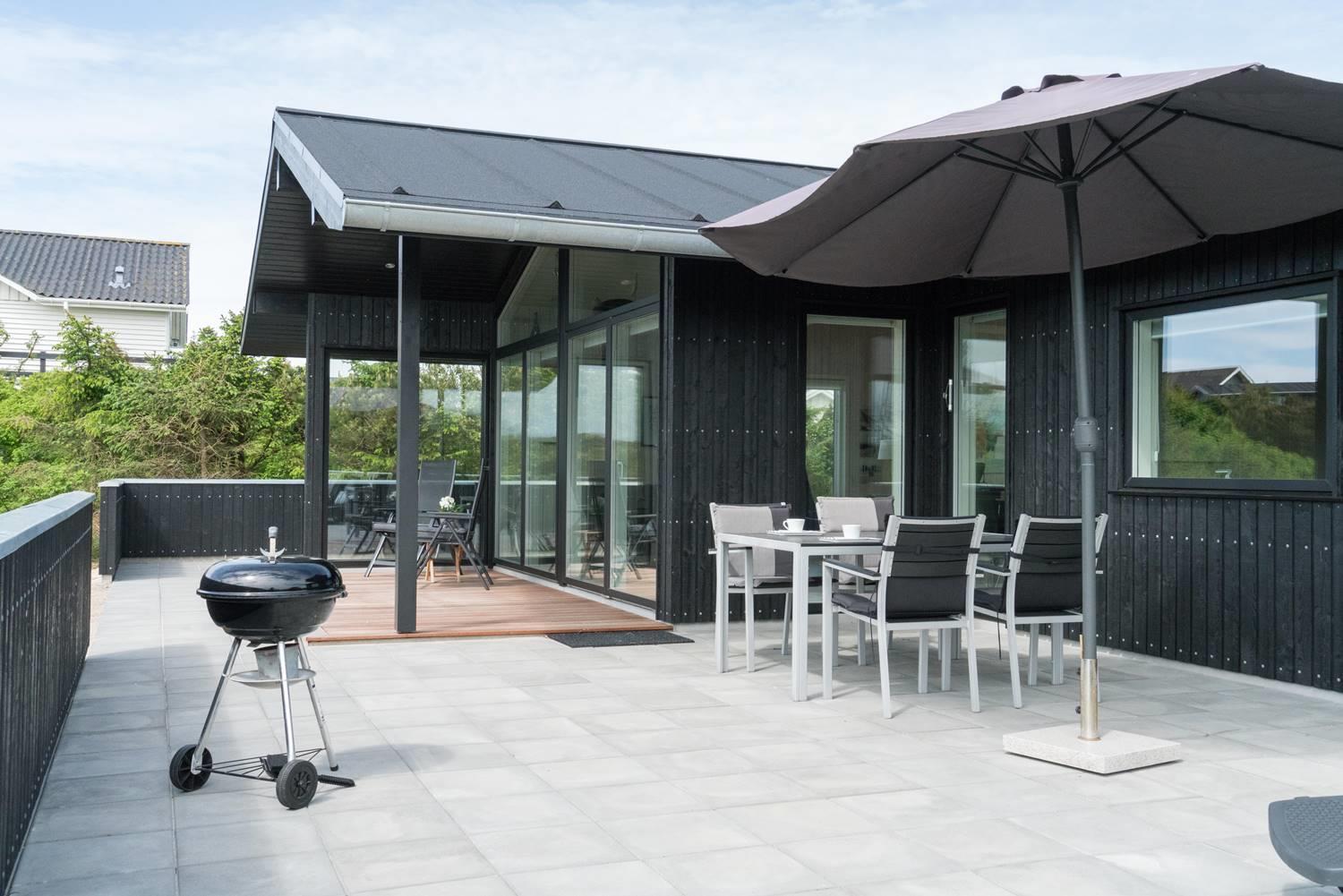 Sommerhuset er omgivet af flere skønne terrasser, der indbyder til afslapning hele dagen. Uanset vindretning kan du altid finde læ og nyde solen i det naturskønne klitlandskab.