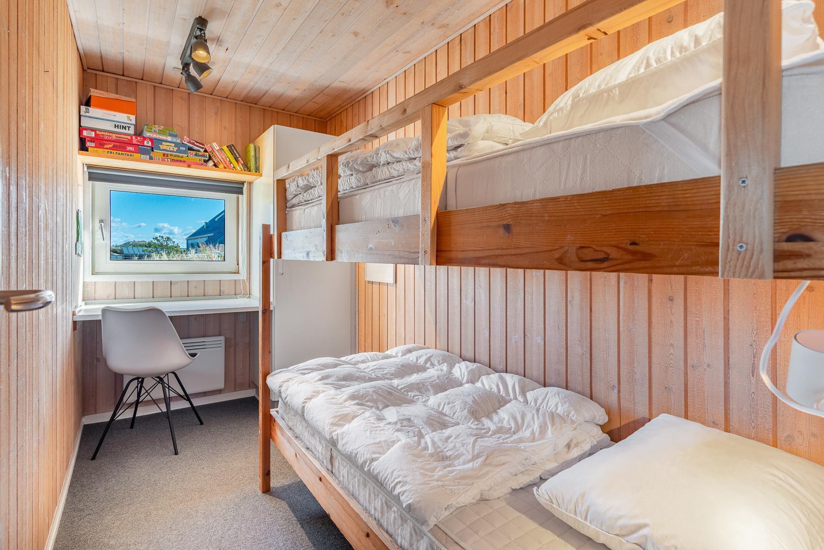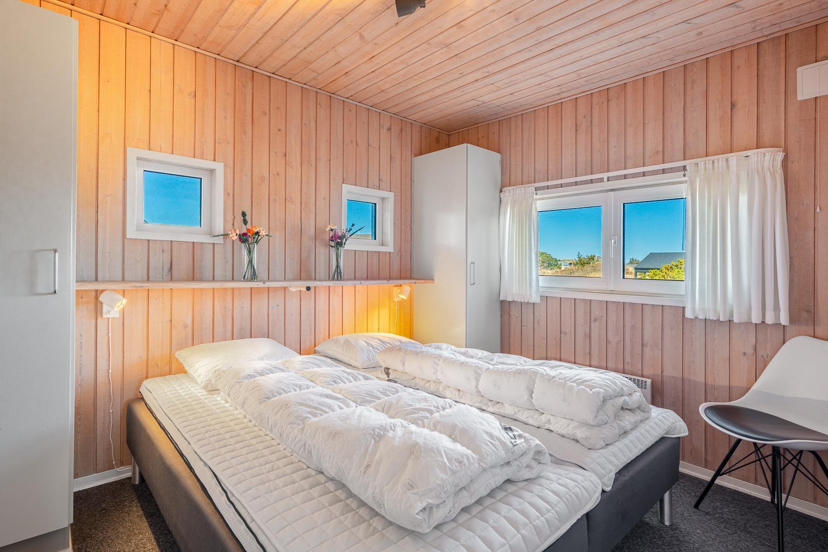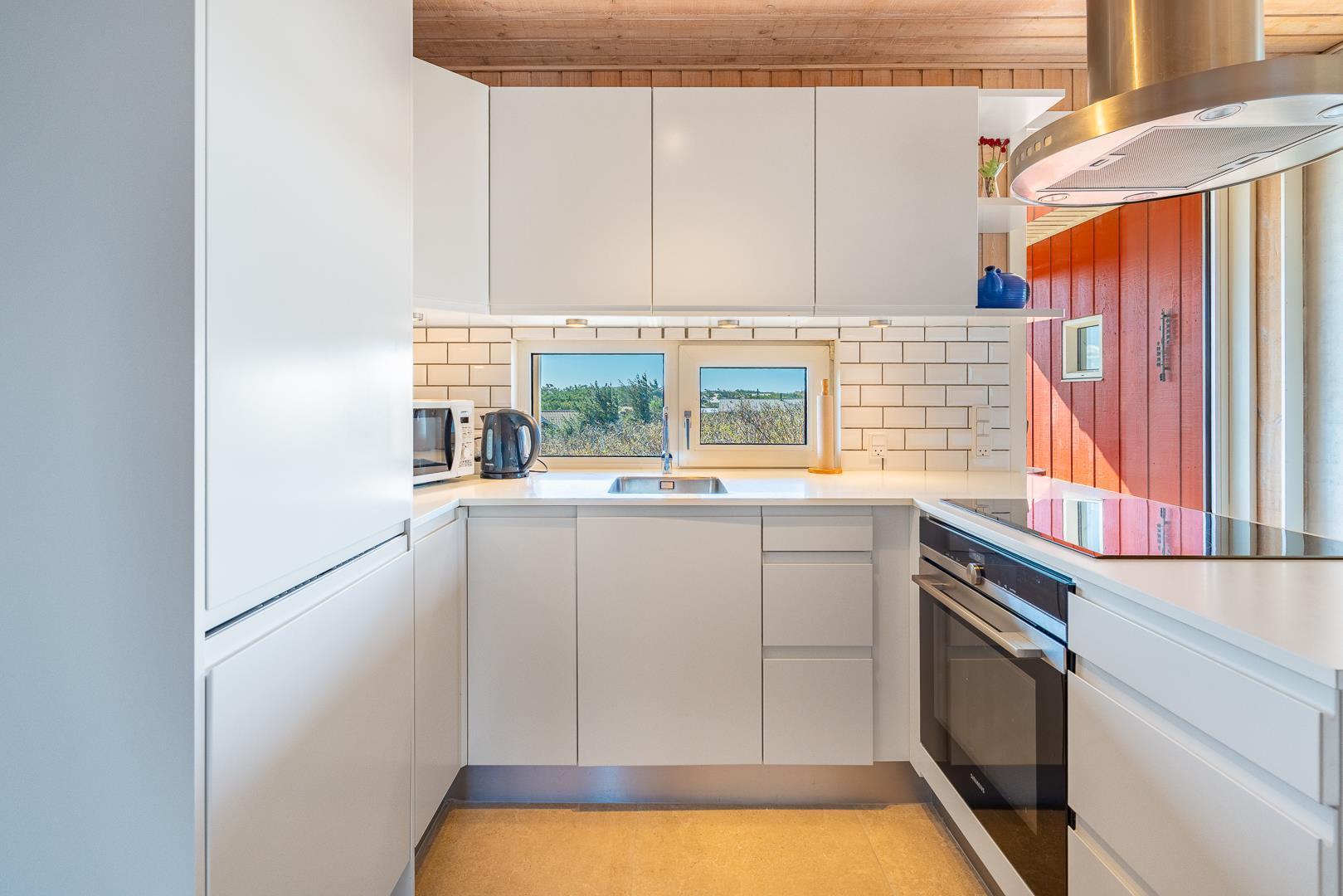 Det moderne køkken har alt, hvad du behøver til feriens måltider. Huset har tre gode soveværelser med god skabsplads, hvilket gør det ideelt til både familier og par.