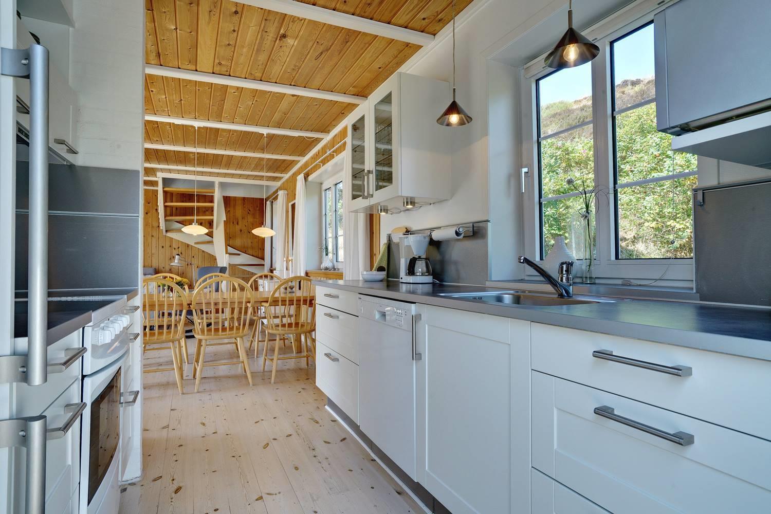 Indvendigt byder huset på et indbydende køkken i åben forbindelse med stuen, hvilket skaber et lyst og rummeligt opholdsrum med god plads til samvær.