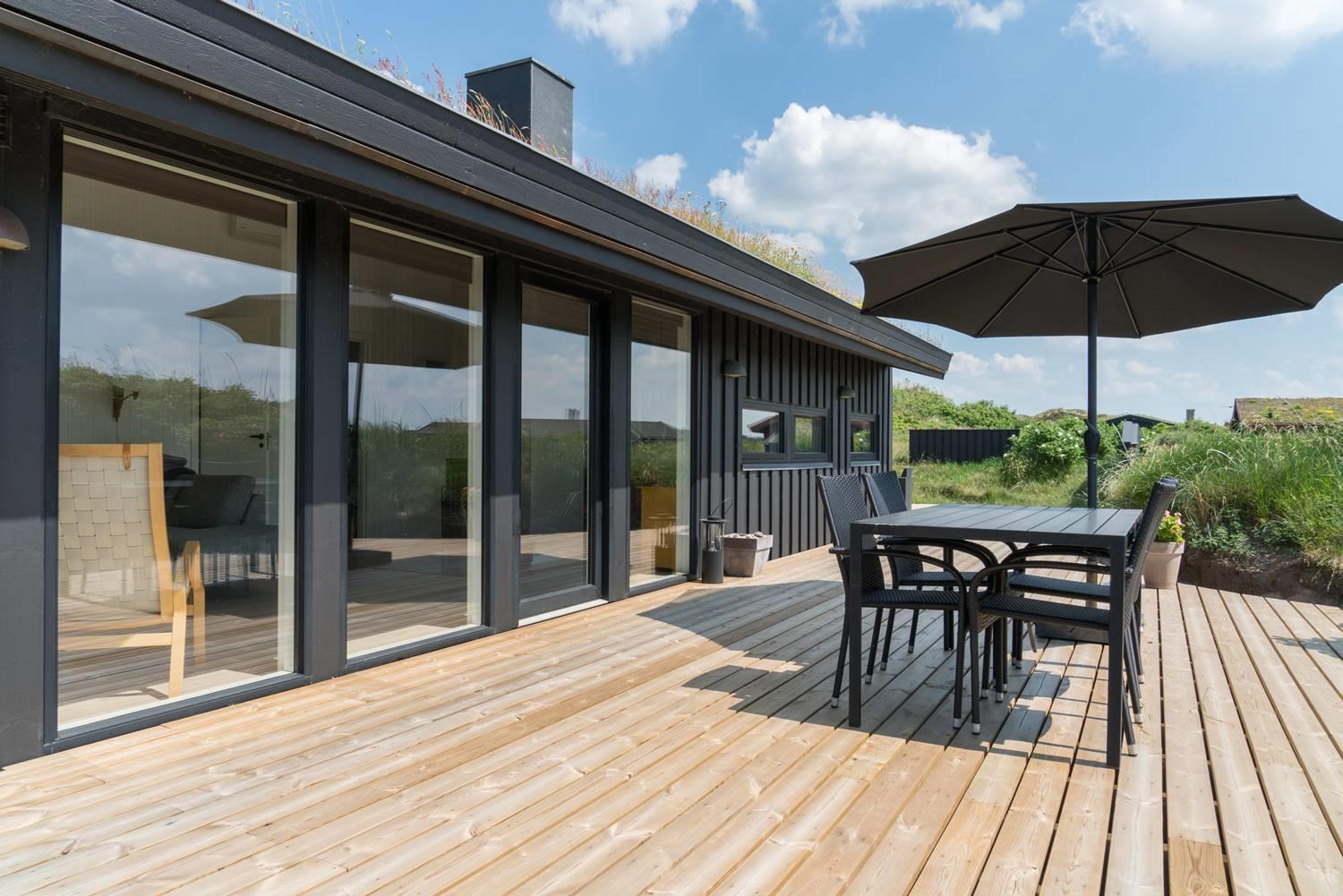 På en pragtfuld naturgrund tæt på Henne Mølle Å og i nærheden af stort fredet hede område ligger dette totalt renoverede feriehus. Huset er moderne indrettet med en smag af retro. Smart køkken med opvaskemaskine og separat fryser i åben forbindelse til spiseafdeling og stue. Hyggelig stue med central placeret brændeovn og udgang til ugeneret sydvendt, stor træ terrasse, hvorfra solen og den flotte natur kan nydes i fulde drag. Der findes 3 soverum, 2 soverum med dobbelt seng, hvoraf det ene har TV, derudover findes mindre værelse med køjer og TV. Energi besparende og miljøvenlig varmepumpe. Et rigtig dejligt feriehus med stil og charme til familien, der ønsker at bo midt i den skønneste natur med udsigt til klitter og ikke langt fra Vesterhavet.