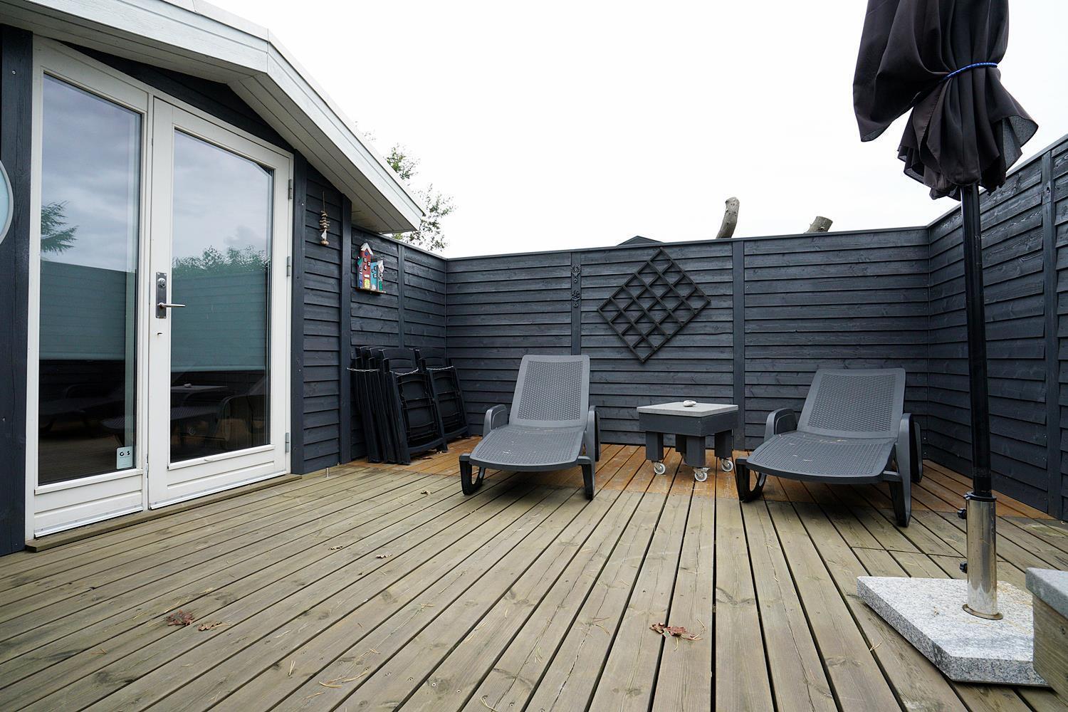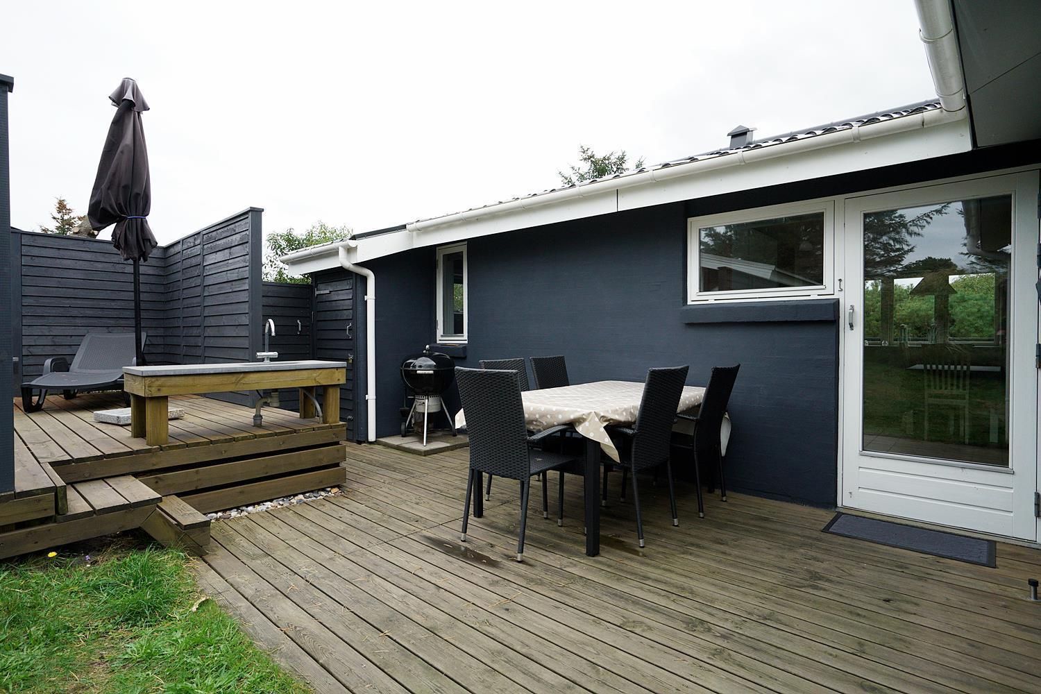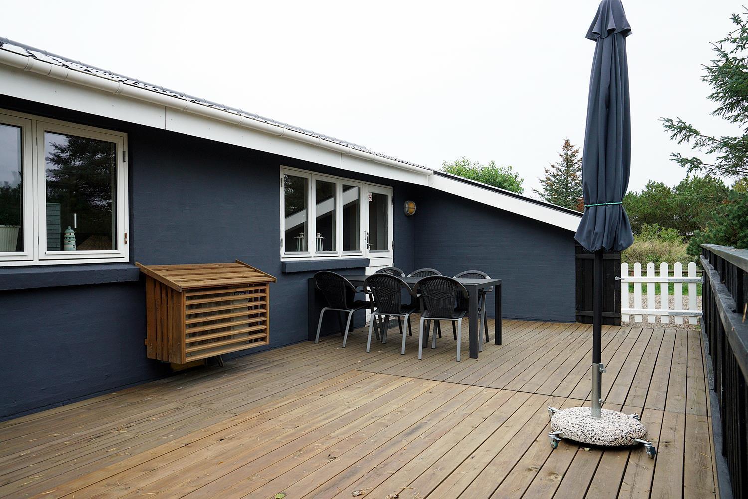 Lyst og velholdt feriehus nær Henne Strand med lukket grund, træterrasser og anneks til ekstra overnatning.