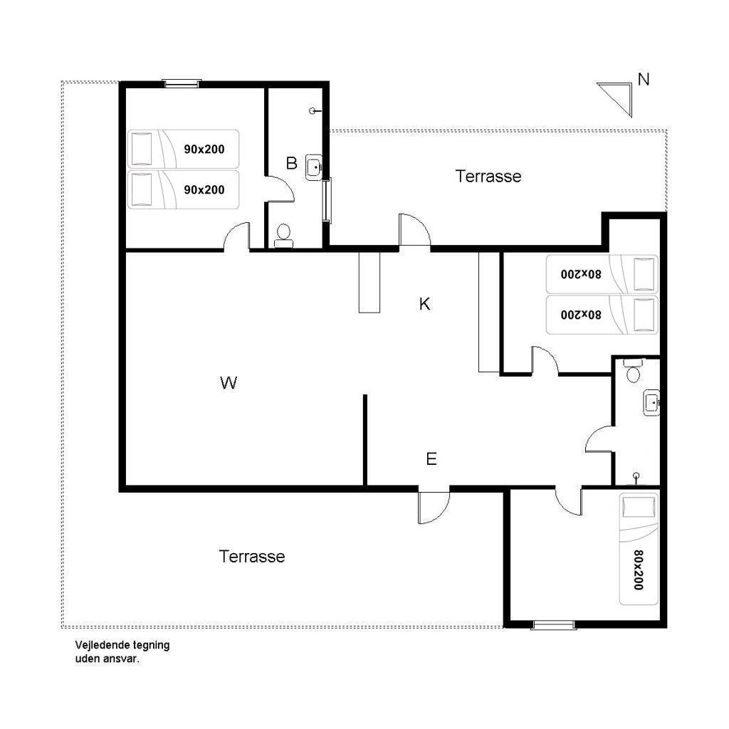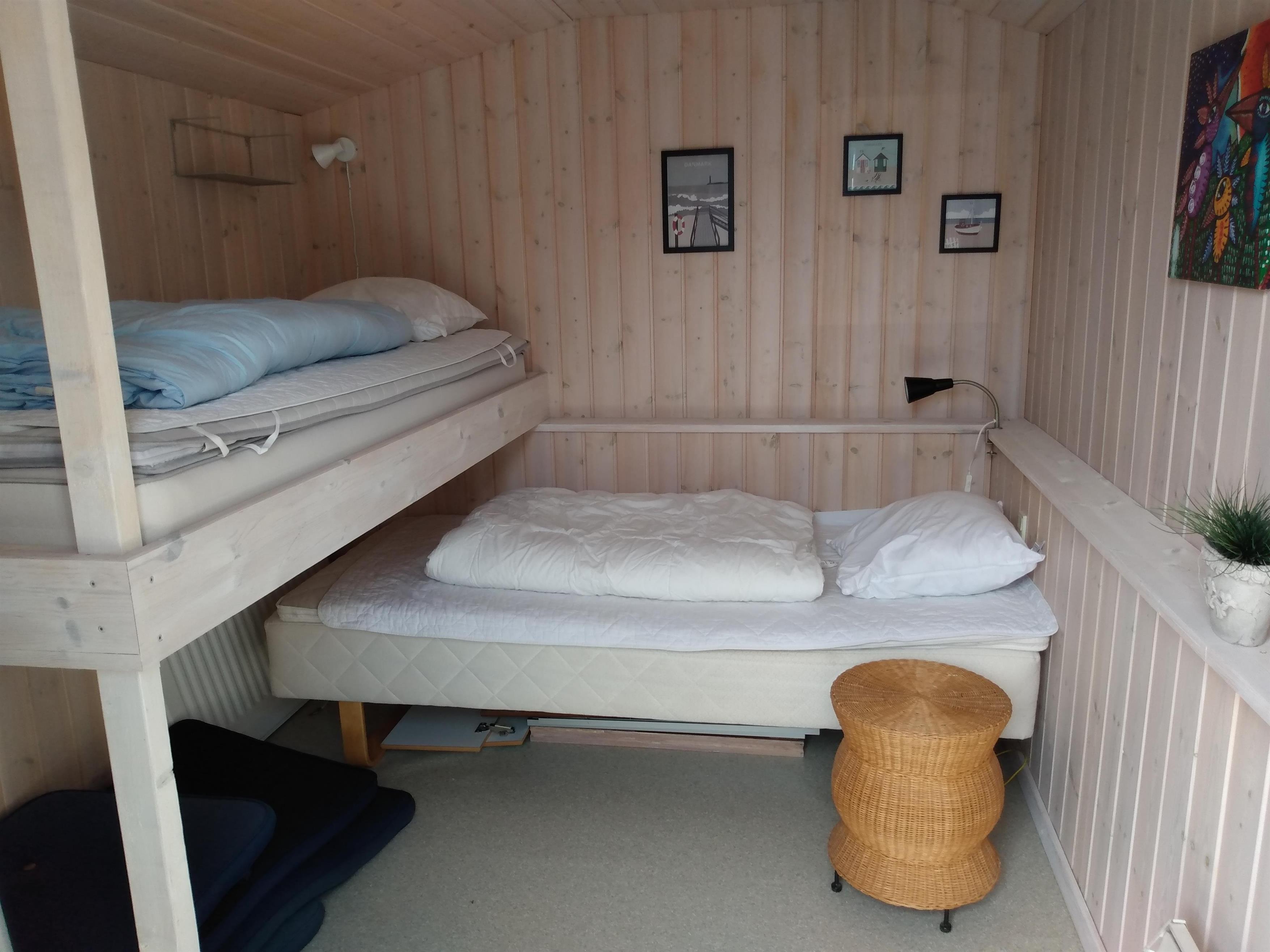 Sengestørrelse: 1 dobbeltseng med 2 madrasser 90 x 200 cm + 1 dobbeltseng med 2 madrasser 80 x 200 cm + 1 enkeltseng 80 x 200 cm.