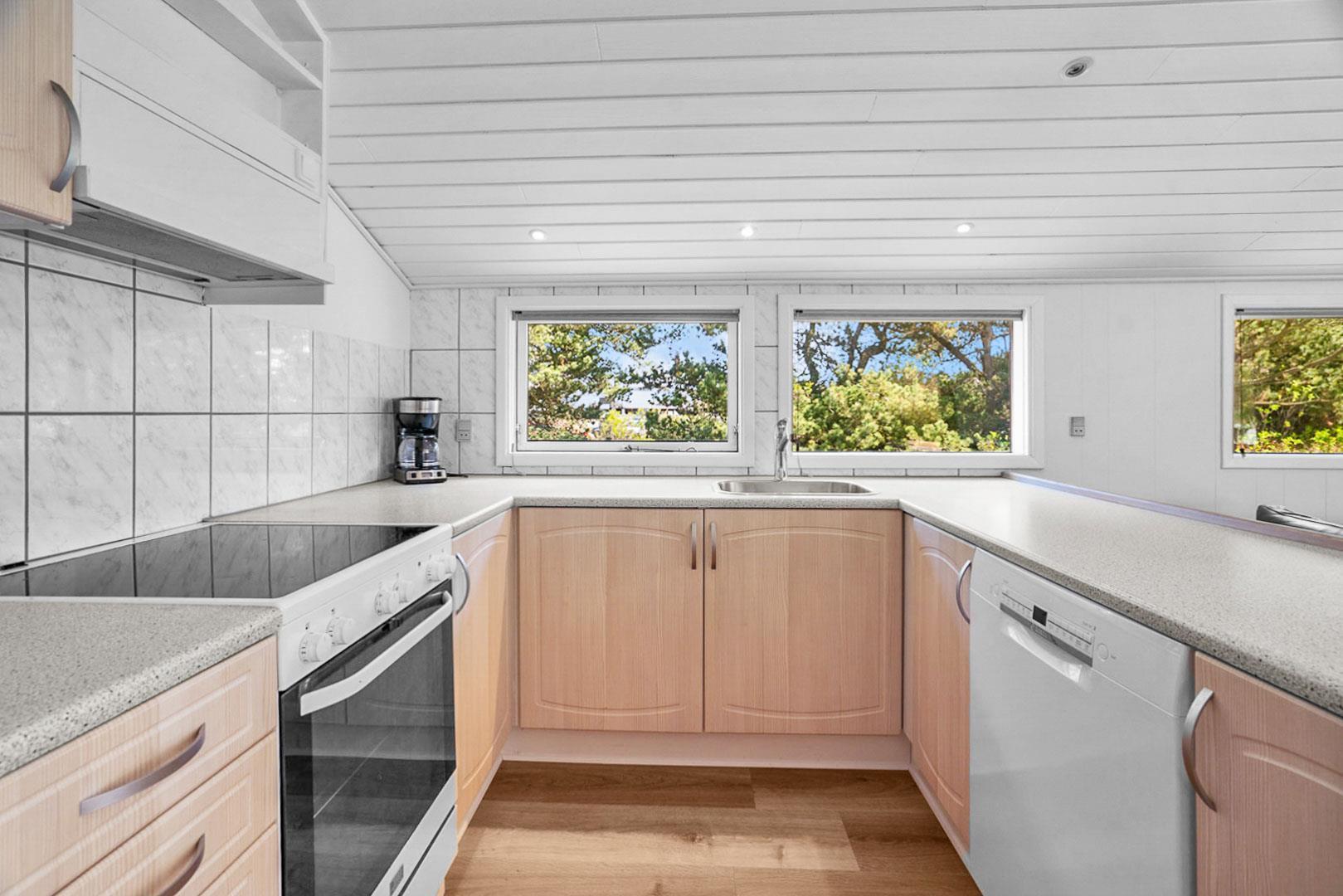 Den hyggelige stue er i åben forbindelse med køkkenet, så du kan nemt tilberede måltider, mens du stadig er en del af familiehyggen. Fra stuen leder en dør ud til en dejlig overdækket terrasse, hvor du kan tilbringe mange hyggelige timer og nyde den skønne natur omkring Henne Strand.