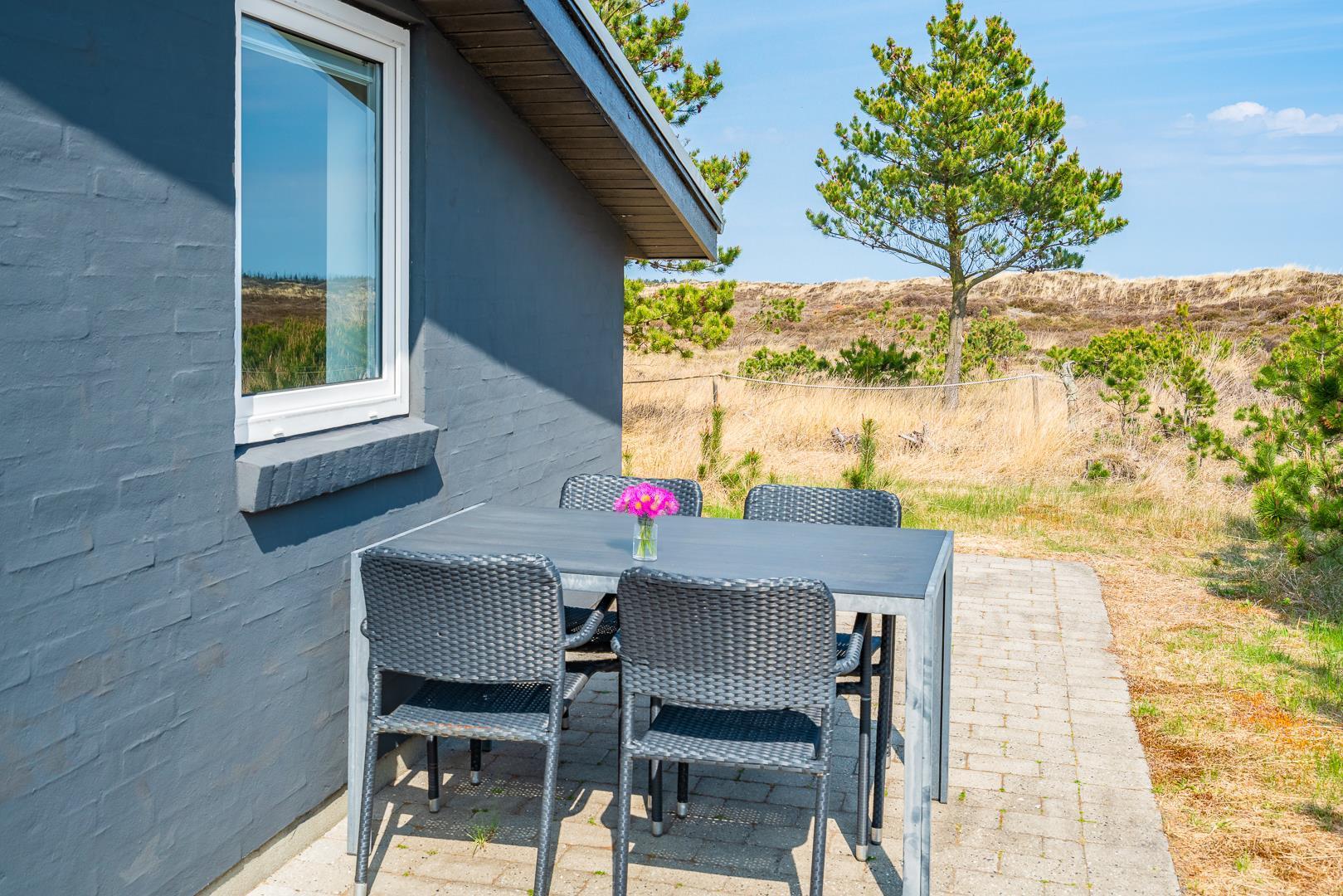 Velkommen til dette skønne sommerhus på Urfuglevej 27 i Henne Strand! Huset ligger for enden af en blind vej og grænser op til den fredede Lyngbo Hede, hvilket giver en naturskøn udsigt.