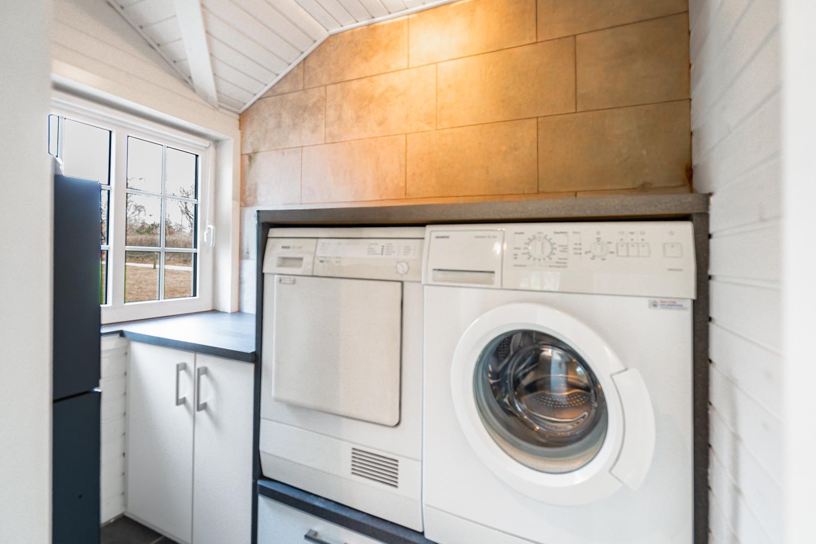 Die offene Küche ist modern ausgestattet mit Spülmaschine und bietet alles, was du für einen entspannten Ferienhausurlaub in Henne Strand brauchst. Für längere Aufenthalte stehen Waschmaschine und Trockner zur Verfügung – ideal auch für Familien.
