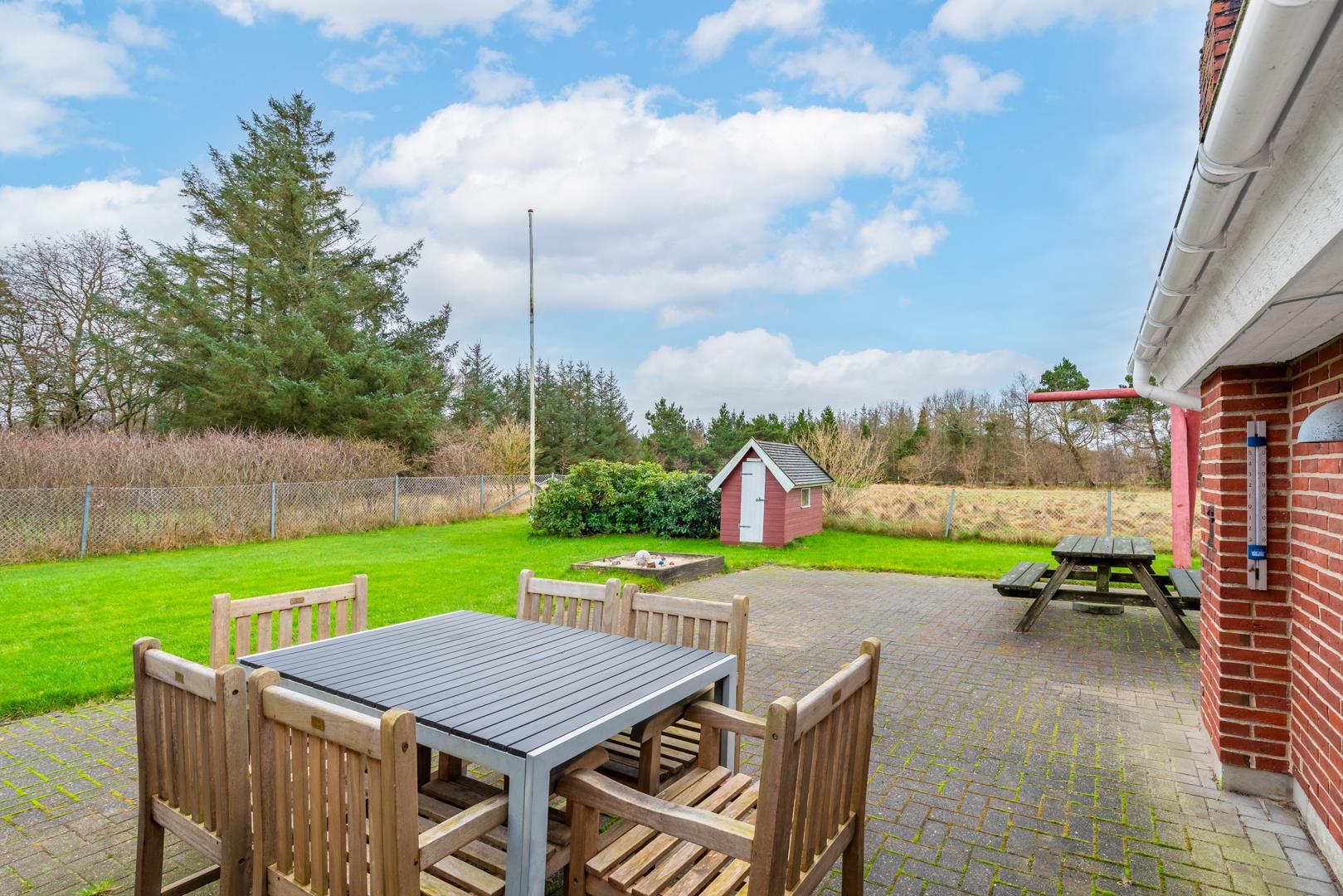 Ein großes Plus ist das eingezäunte Grundstück. Dein Hund kann sich frei bewegen, während die Kinder auf der Schaukel und im Sandkasten spielen. So wird dieses Ferienhaus schnell zum Lieblingsort für die ganze Familie.