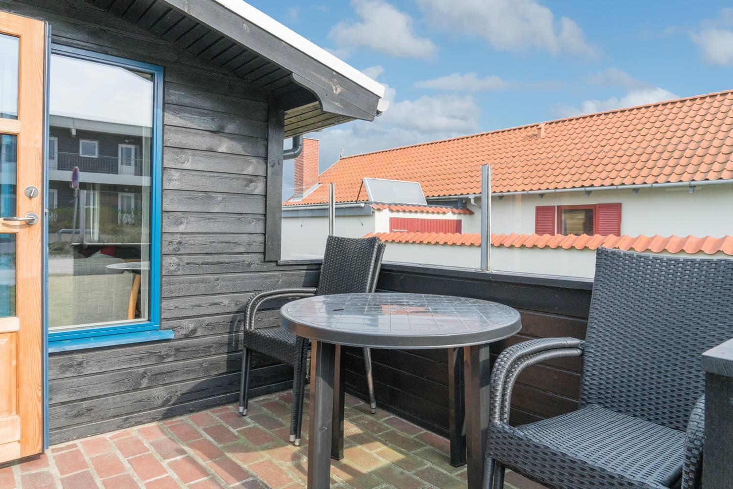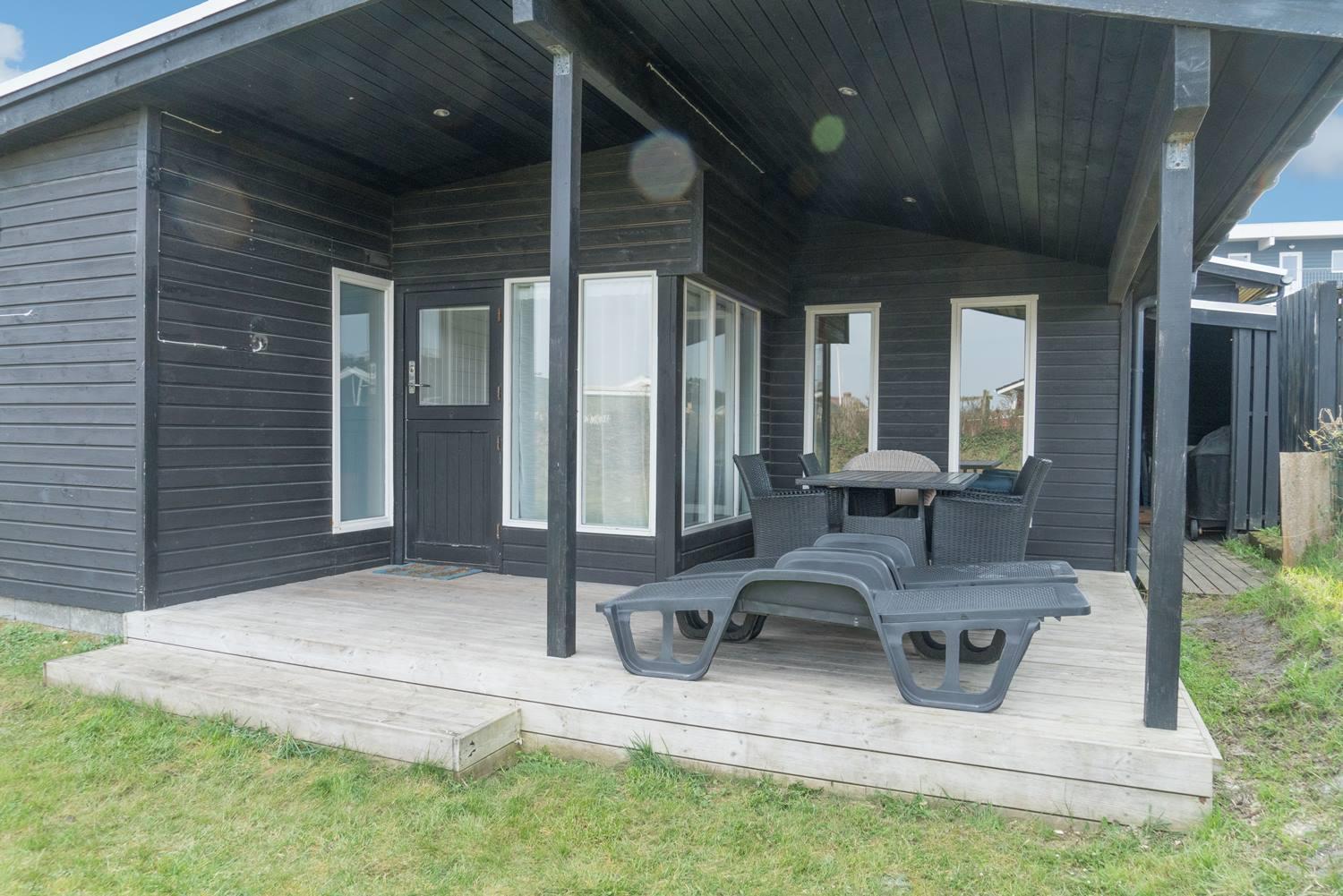 Huset byder på en lukket have og solrig terrasse, hvor du kan nyde ferien i fred og ro – perfekt til både morgenkaffe, grillhygge og afslapning i solen.