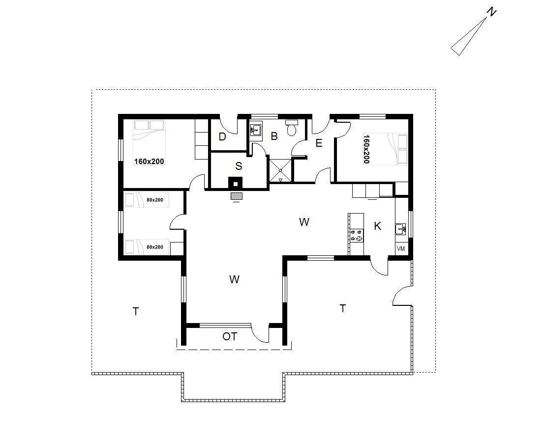 Sengestørrelse: 2 dobbeltsenge 160 x 200 cm + 2 enkeltsenge 80 x 200 cm.