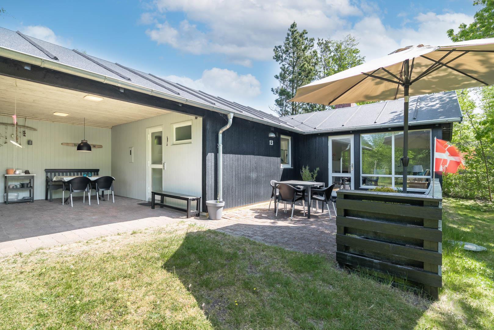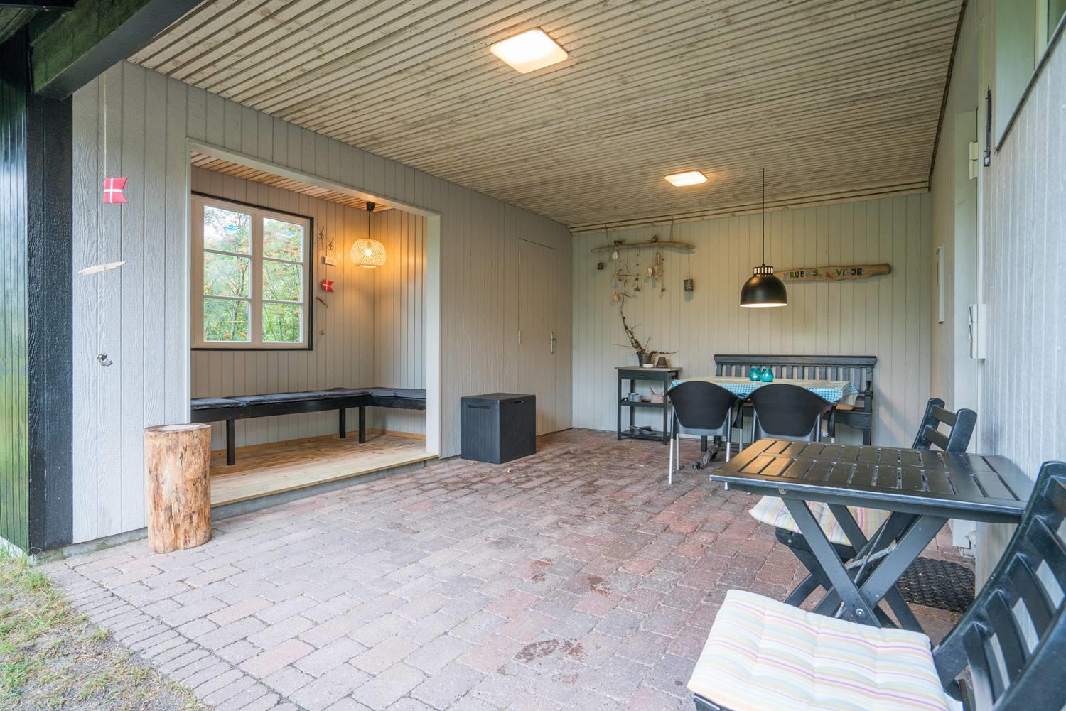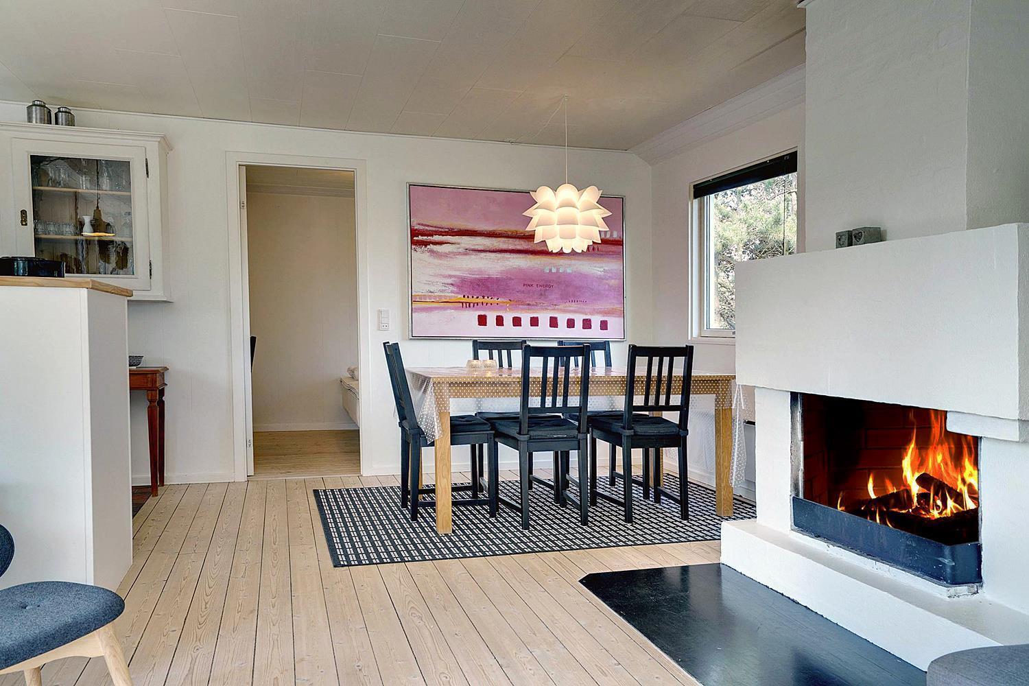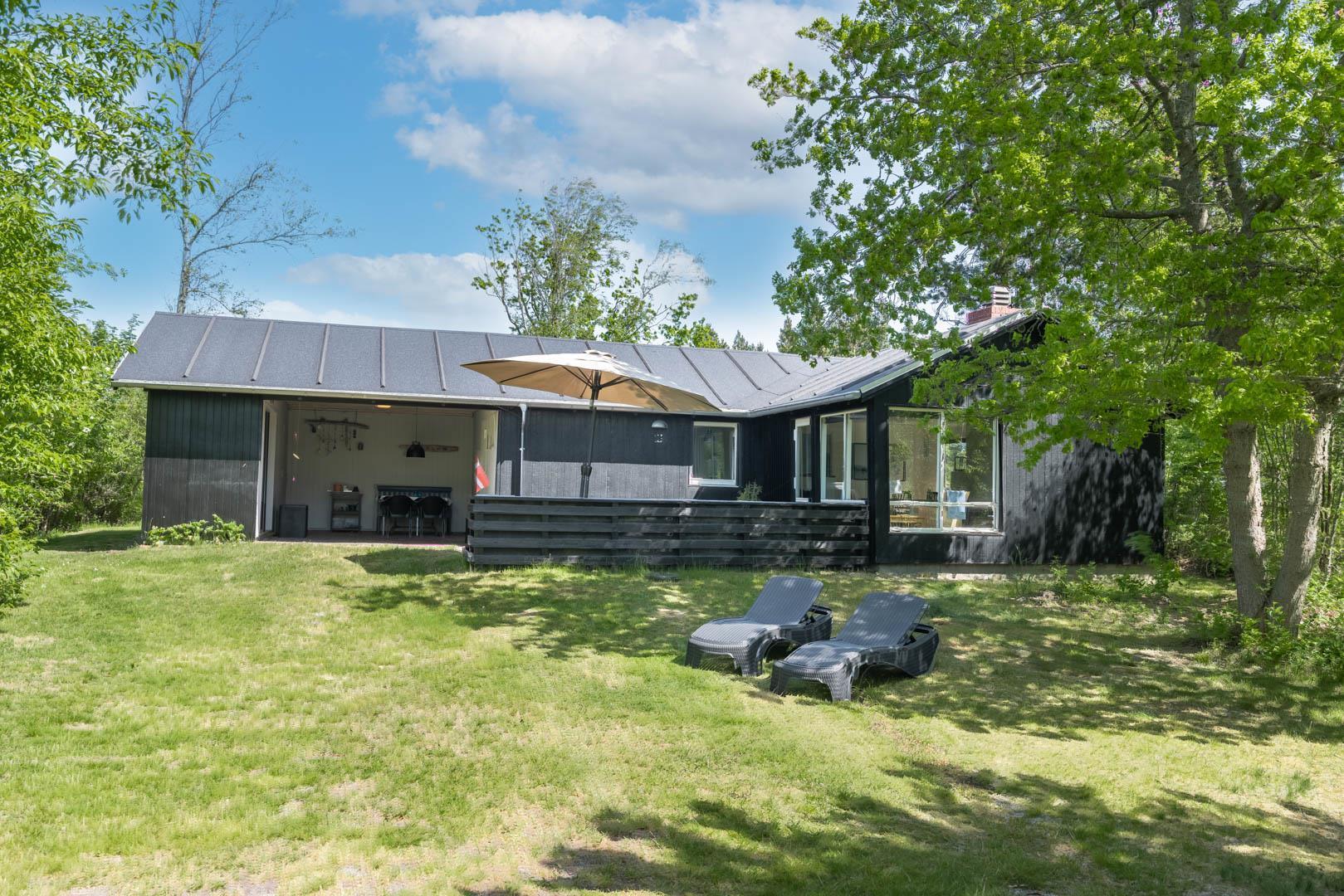 Hyggeligt og charmerende sommerhus, beliggende på en større naturgrund. På en dejlig naturgrund ligger dette charmerende og hyggelige feriehus. I huset med 3 soverum, hersker der dejlig feriehus stemning. Køkken og spiseplads er i åben forbindelse til hyggelig stue med pejs. Stort bryggers for opbevaring og med vaskemaskine og tørretumbler og udgang til udendørsbruser med varmt vand. Huset har flere terrasser, så solen kan nydes hele dagen samt hyggelige overdækkede uderum. Der er petanquebane på grunden og skur til rådighed. Energibesparende varmepumpe i huset.