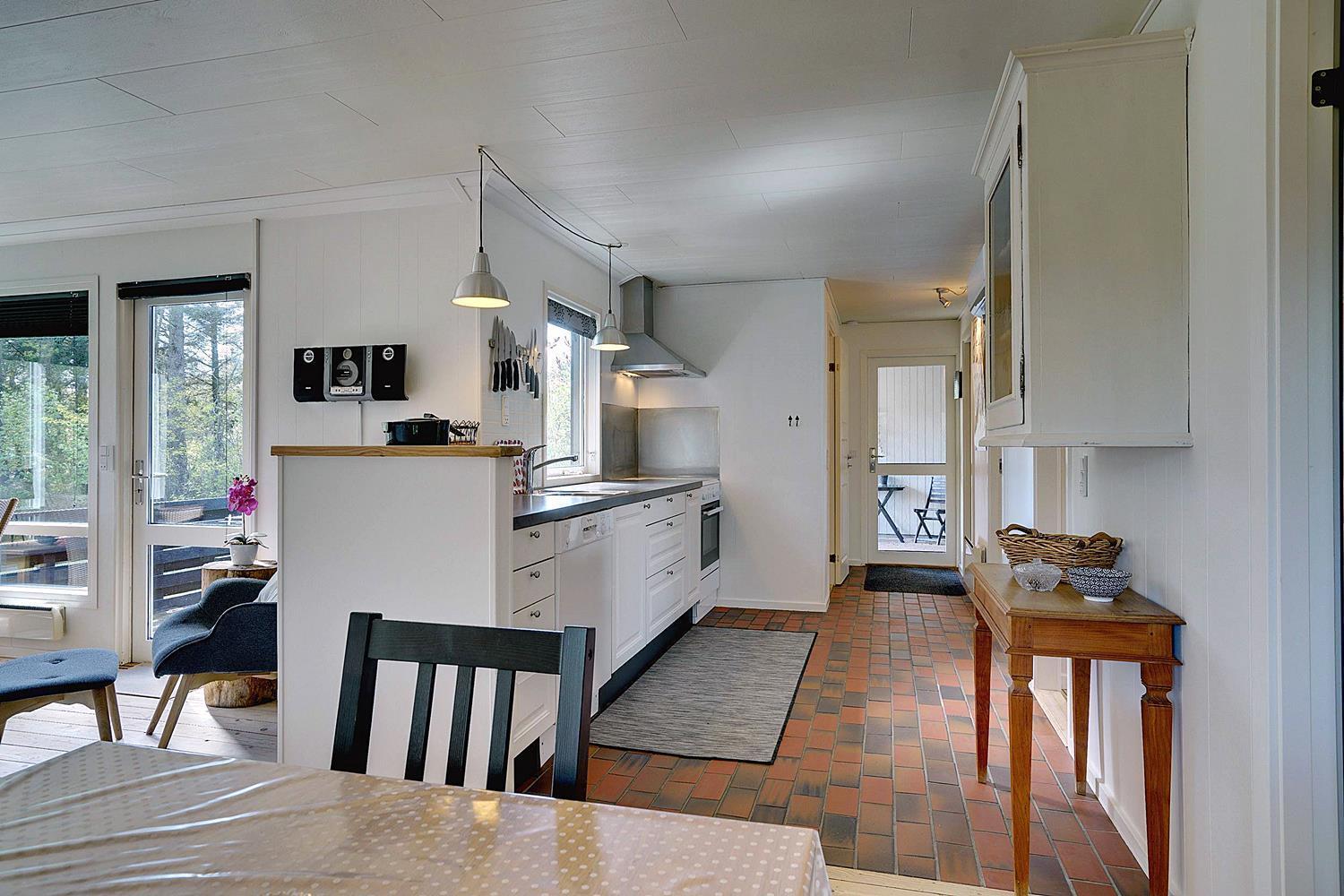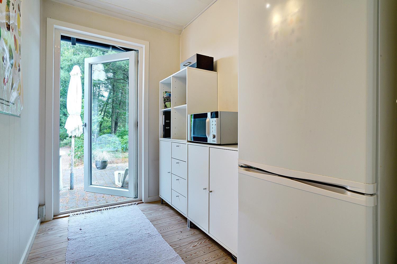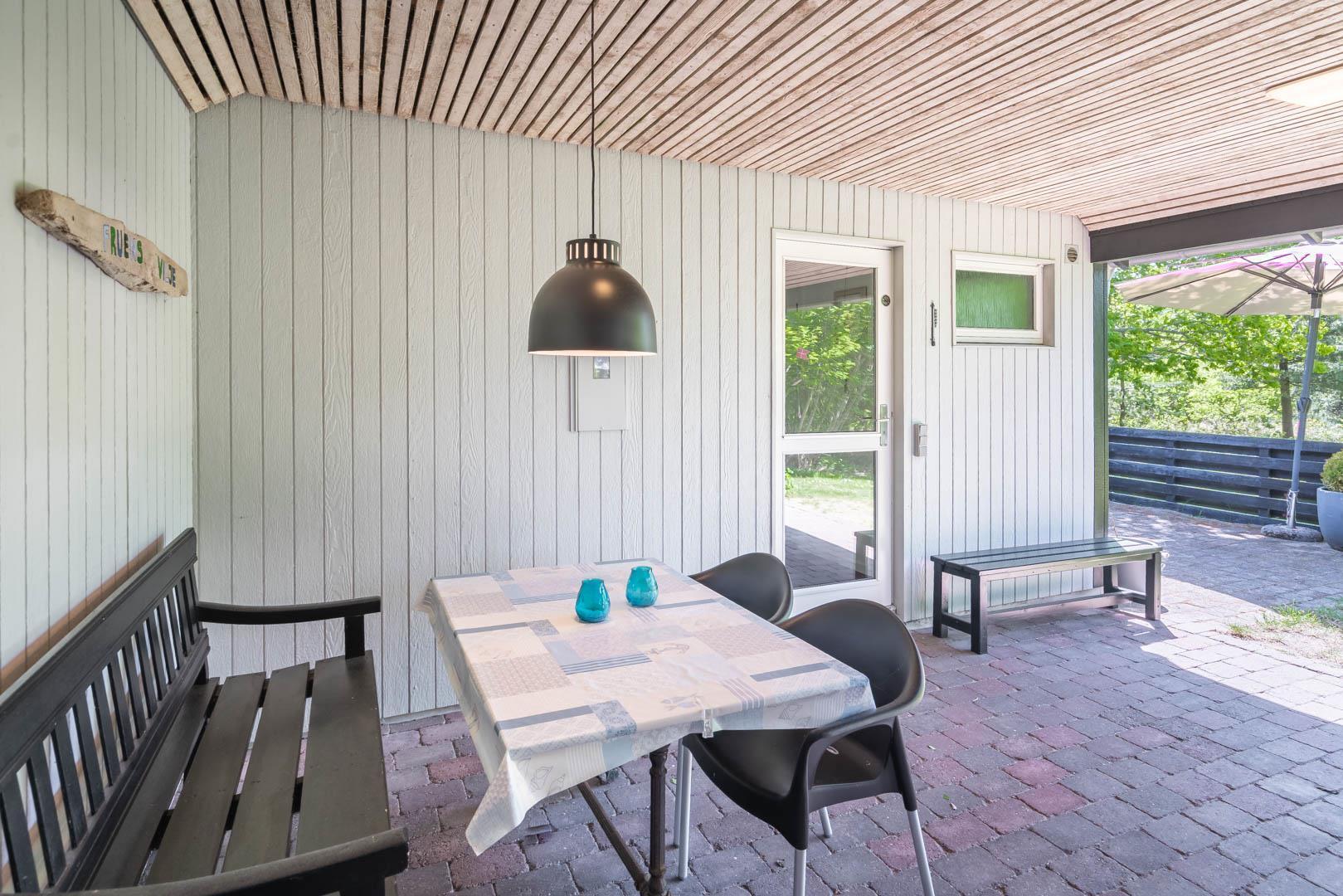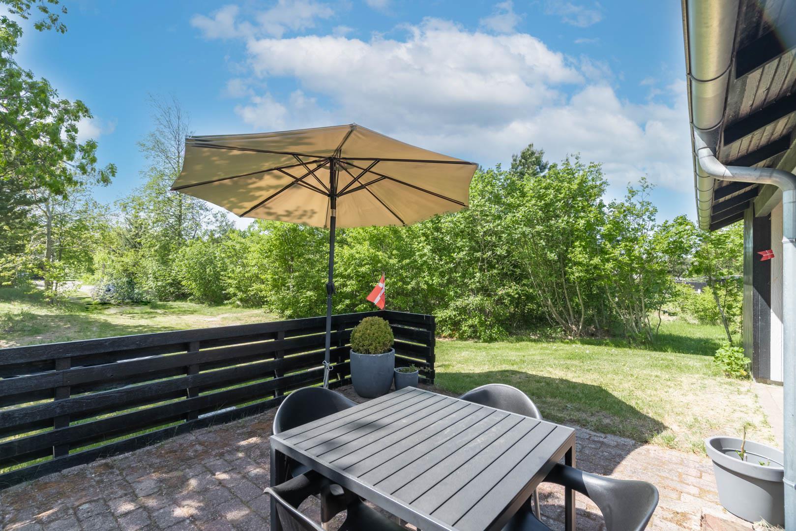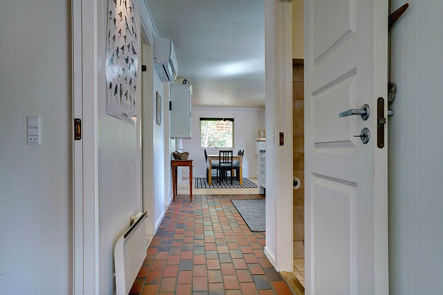 Hyggeligt og charmerende sommerhus, beliggende på en større naturgrund. På en dejlig naturgrund ligger dette charmerende og hyggelige feriehus. I huset med 3 soverum, hersker der dejlig feriehus stemning. Køkken og spiseplads er i åben forbindelse til hyggelig stue med pejs. Stort bryggers for opbevaring og med vaskemaskine og tørretumbler og udgang til udendørsbruser med varmt vand. Huset har flere terrasser, så solen kan nydes hele dagen samt hyggelige overdækkede uderum. Der er petanquebane på grunden og skur til rådighed. Energibesparende varmepumpe i huset.